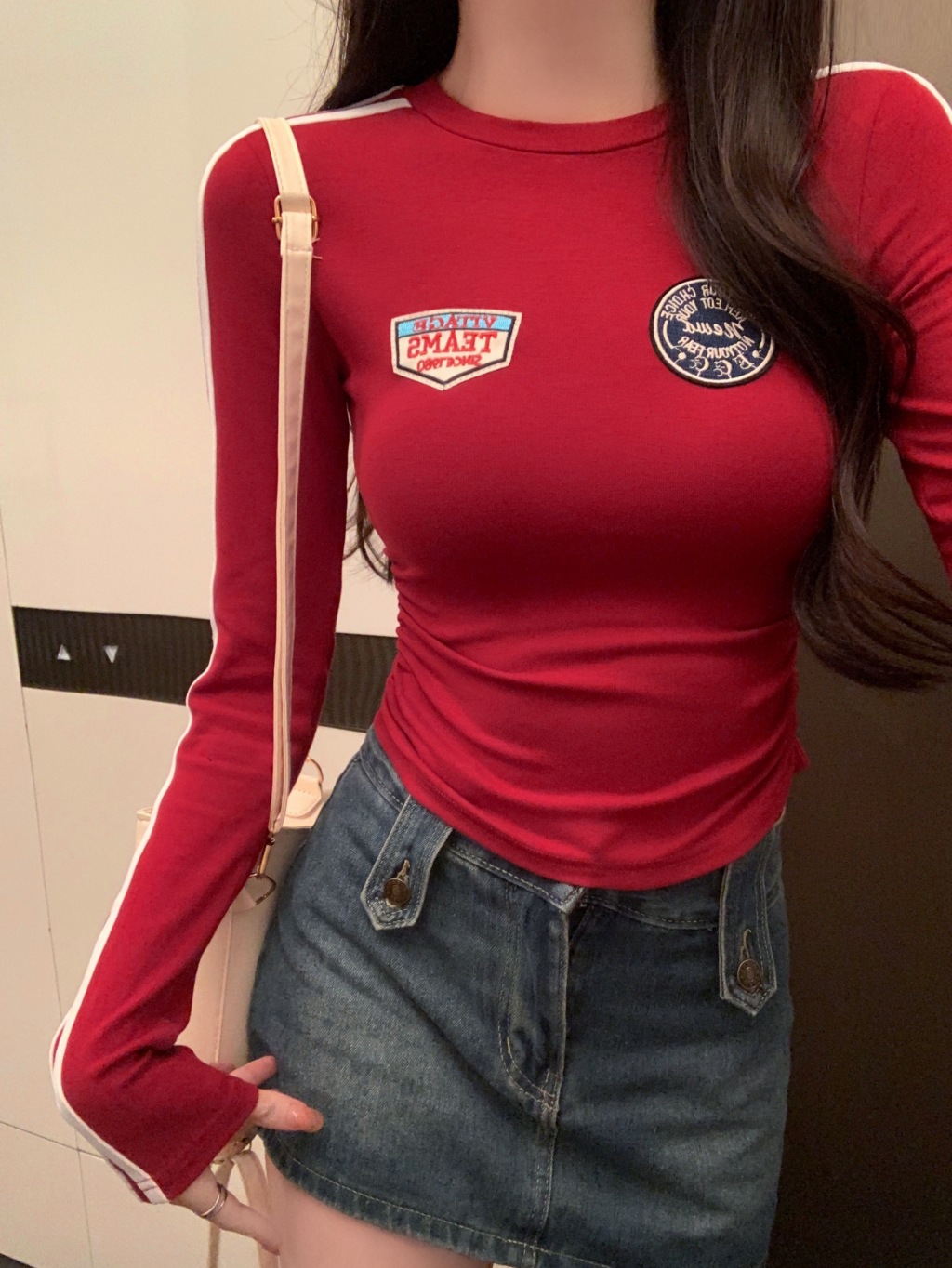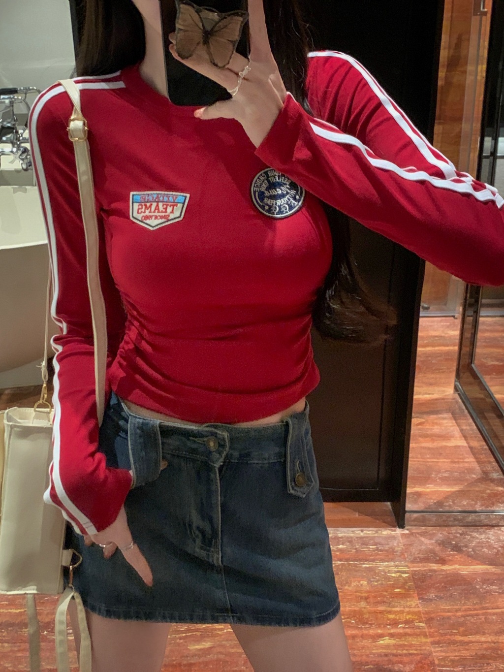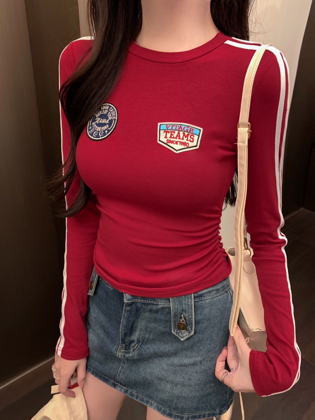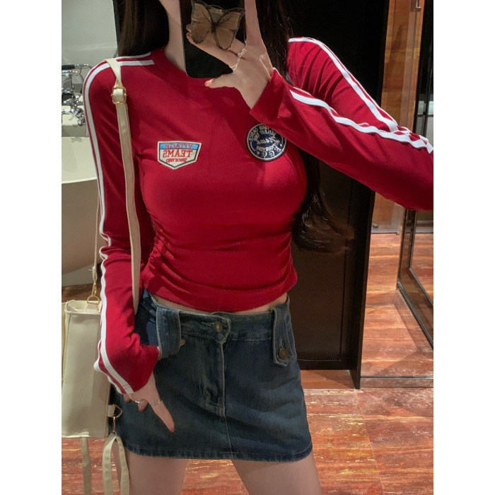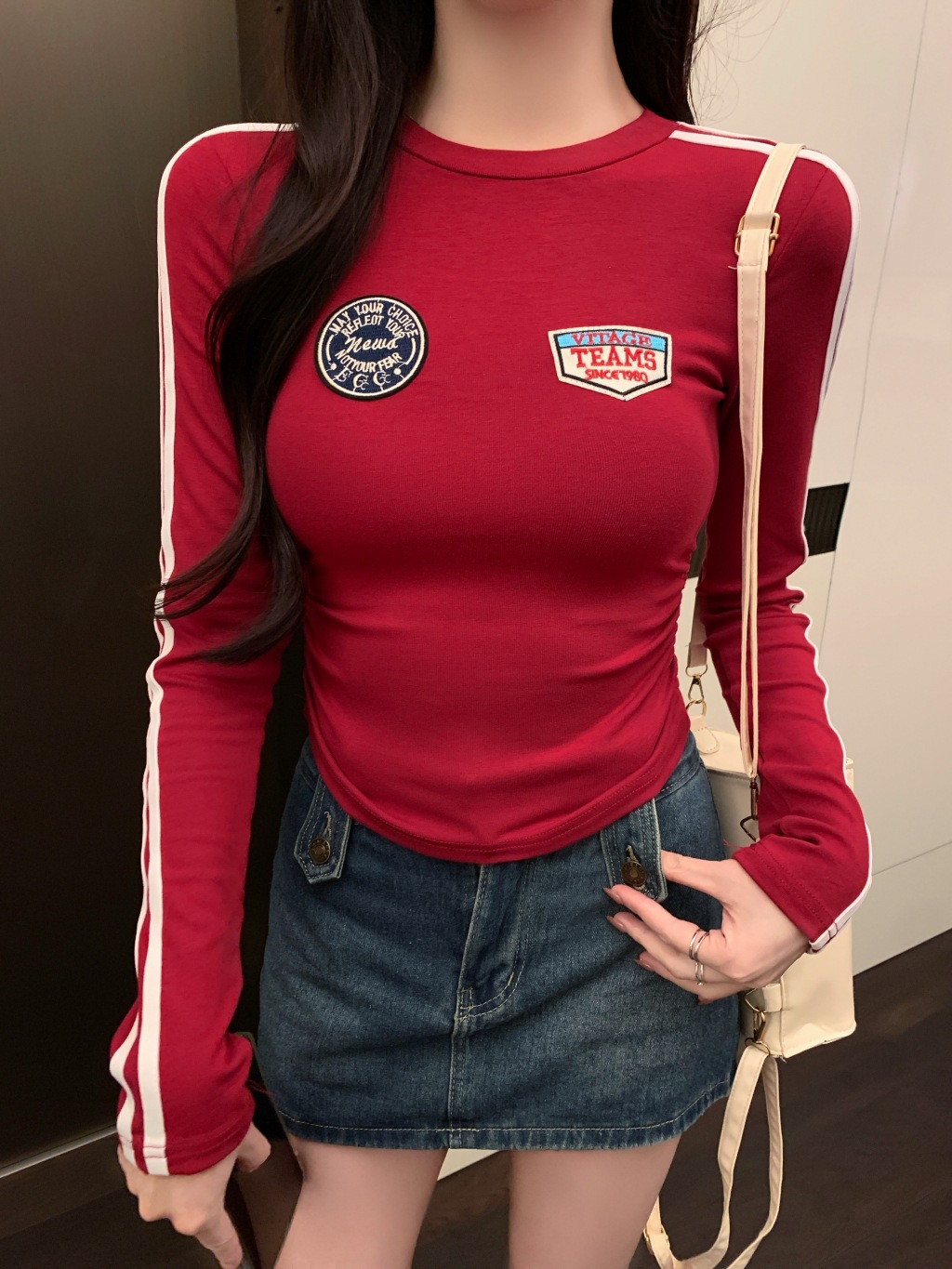 546 #实拍 40支纯棉(92棉/8氨纶) 2026秋装长袖T恤女绣花条纹上