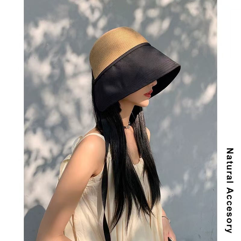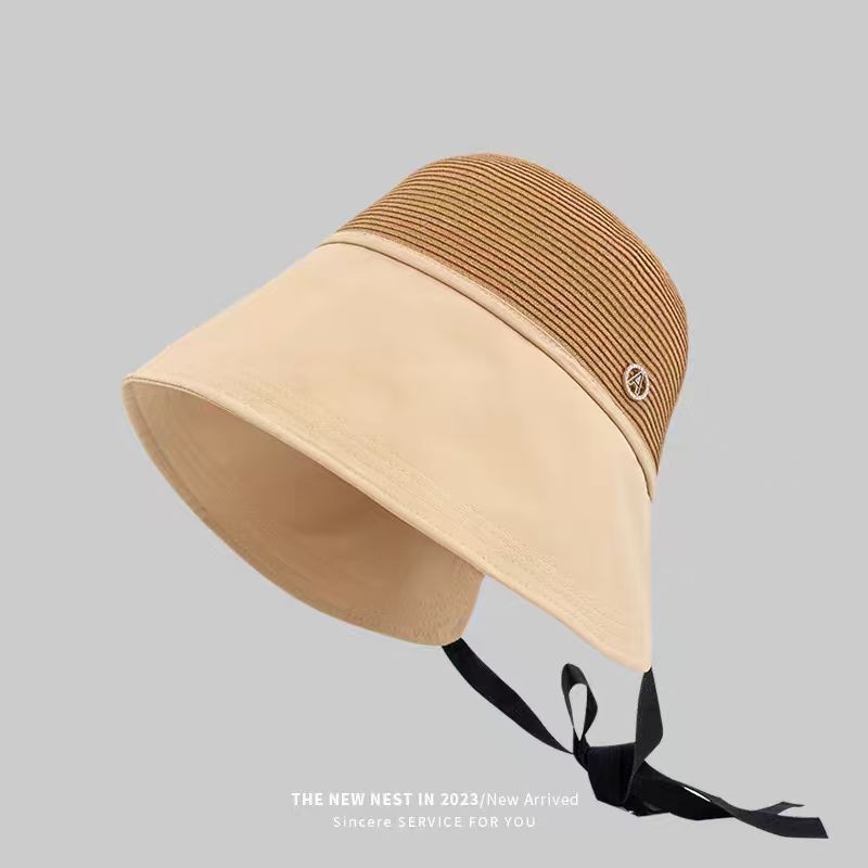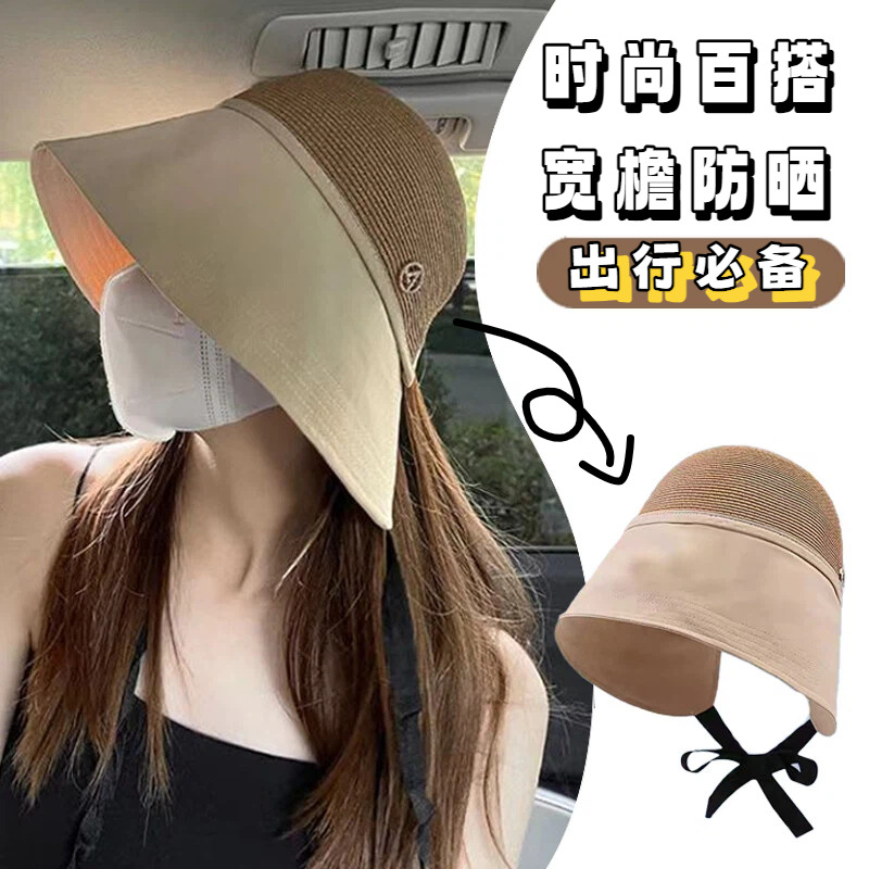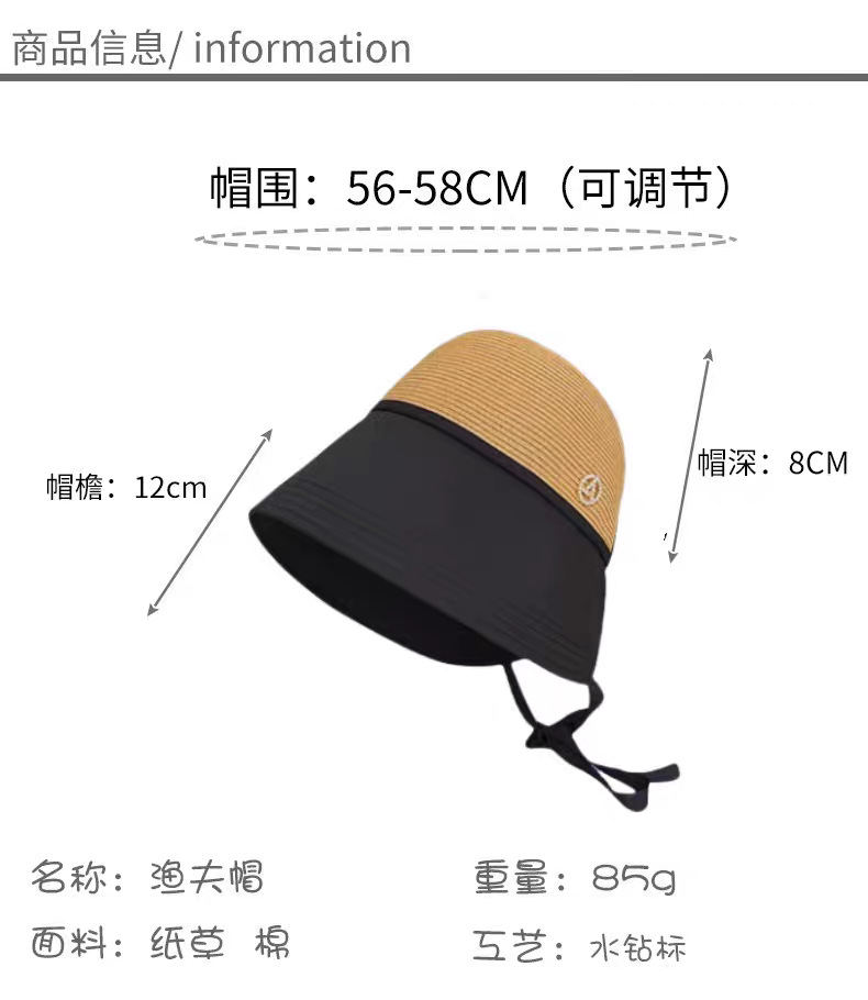 新款时尚显脸小大檐水桶帽子女夏季遮脸防晒帽渔夫帽出游遮阳草帽