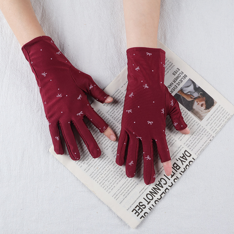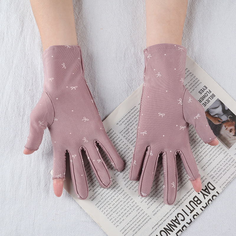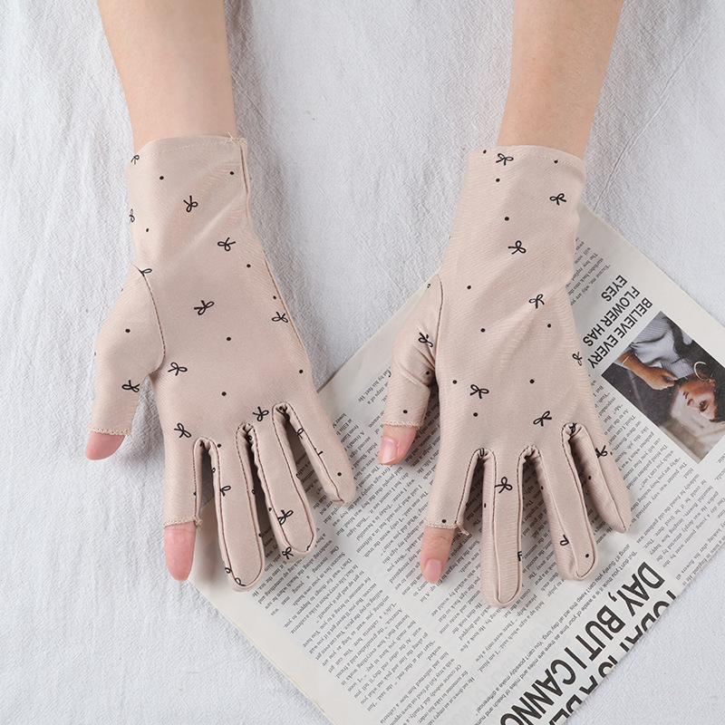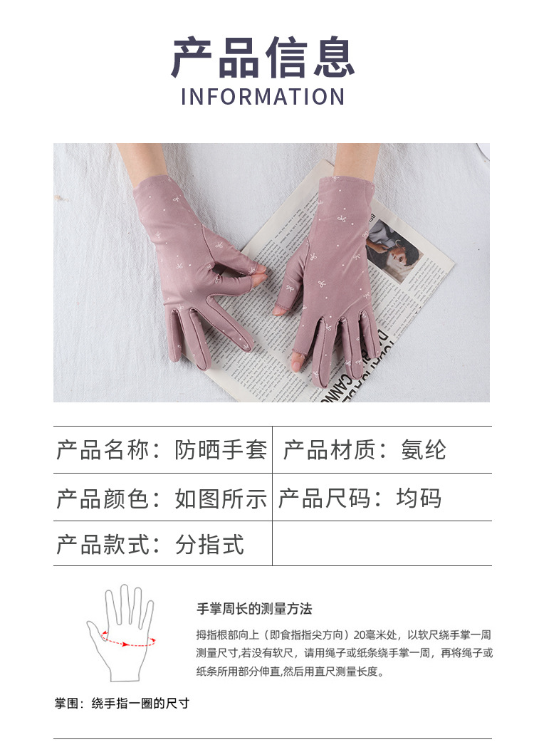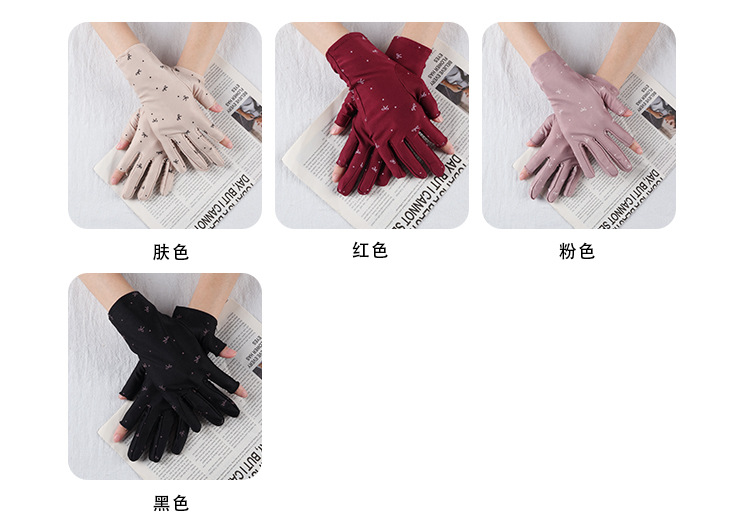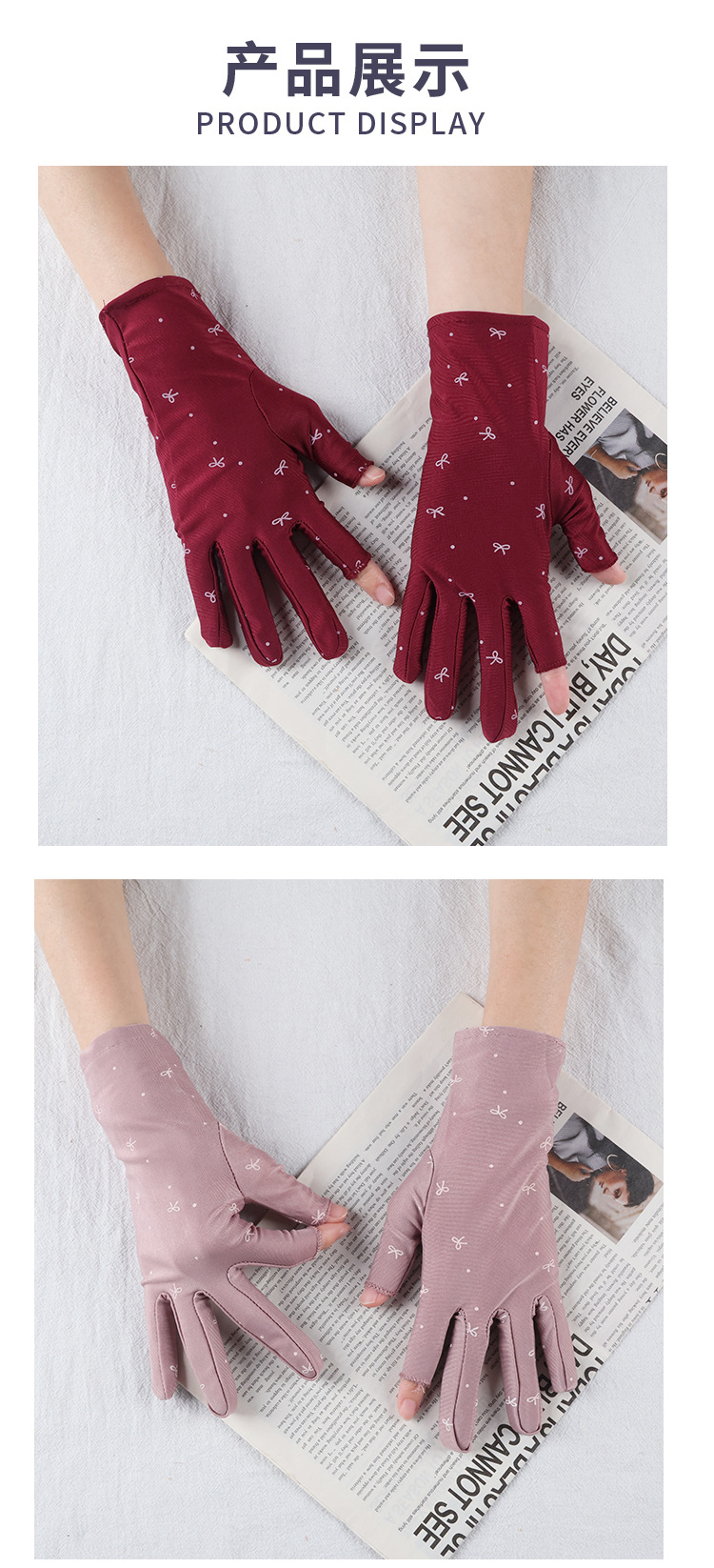 防晒女薄款漏两指手套采茶春秋骑行开车透气触屏冰丝凉感手套批发