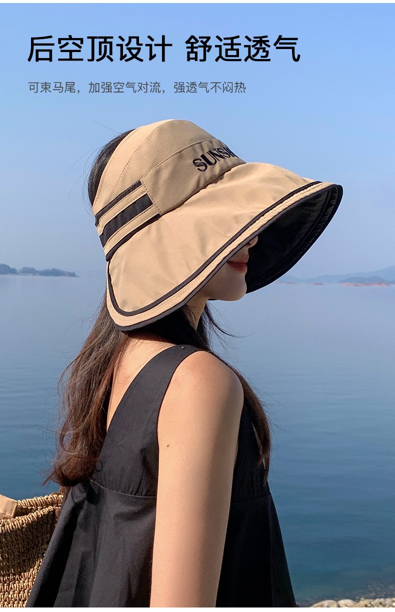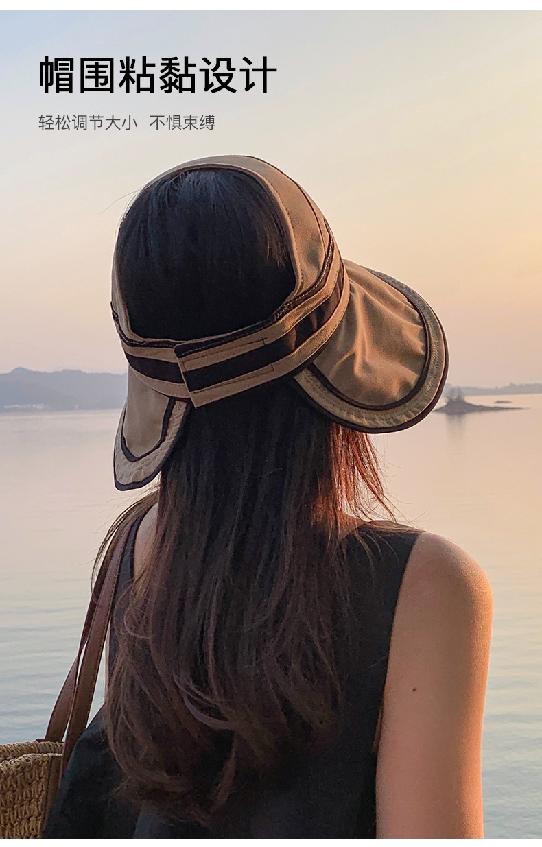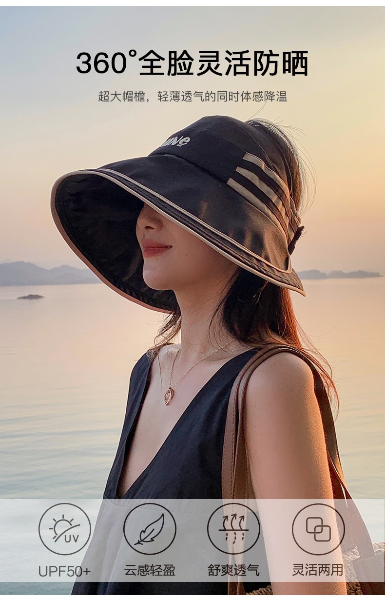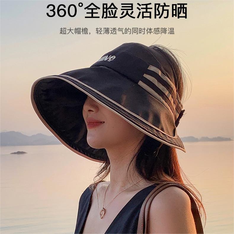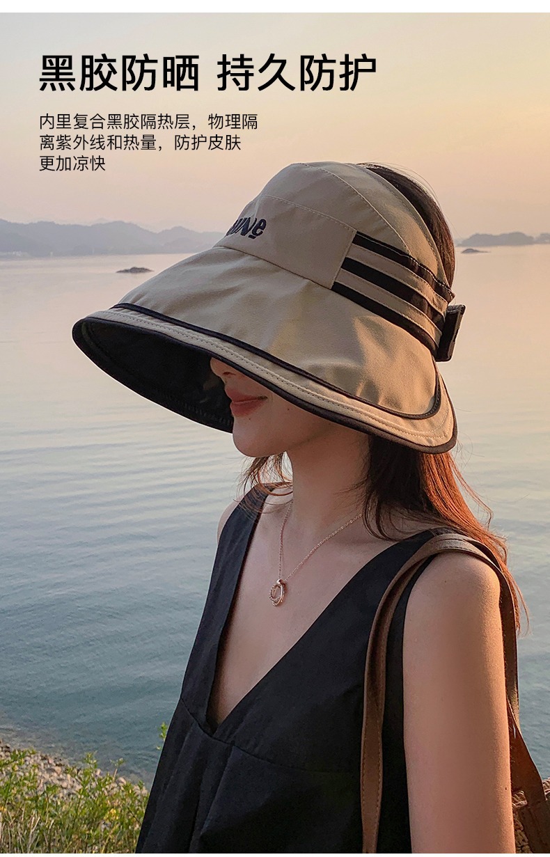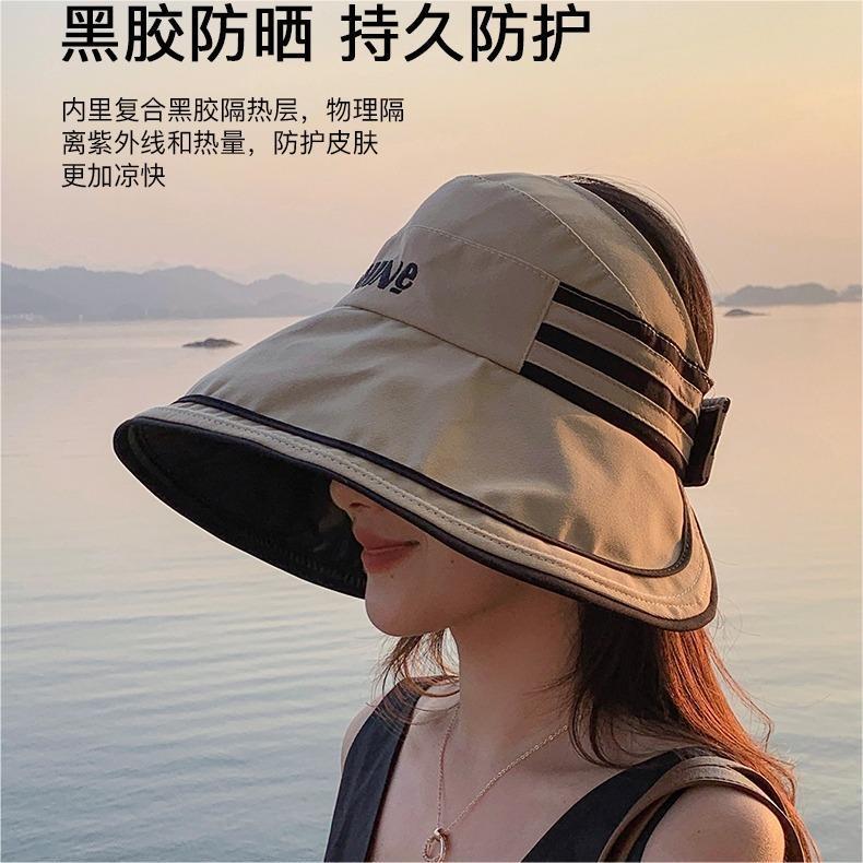 夏季防晒帽女遮阳帽防紫外线百搭户外遮脸黑胶大帽沿空顶太阳帽子