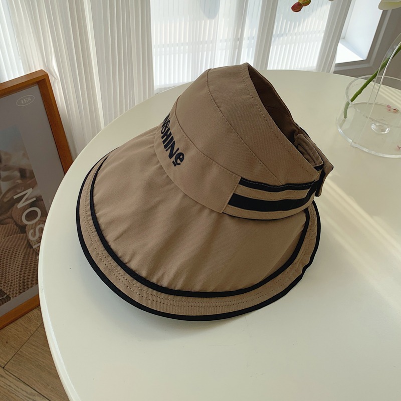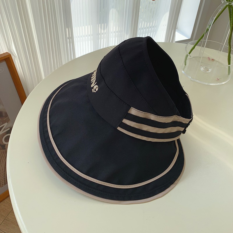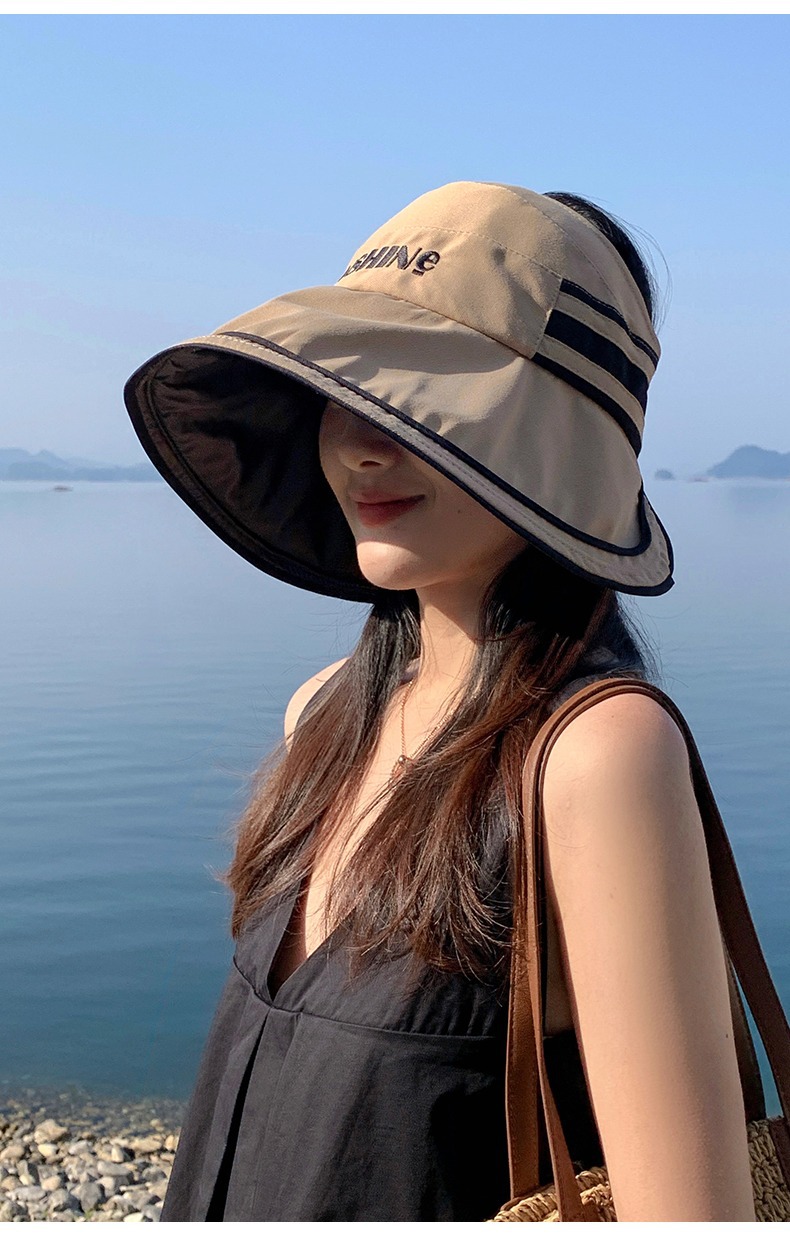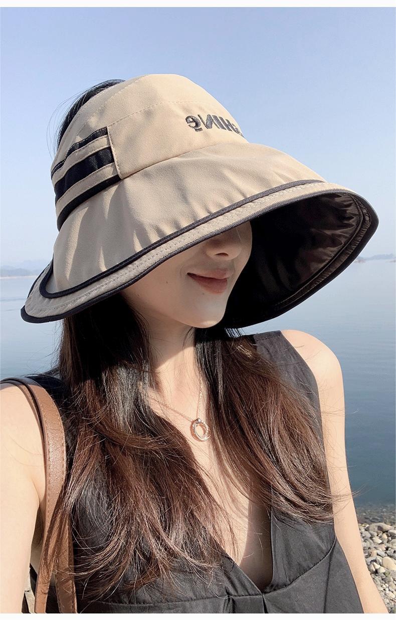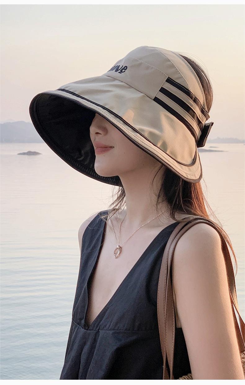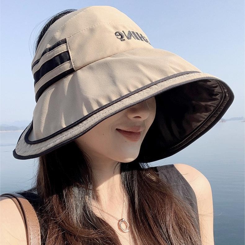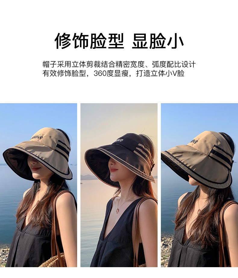 夏季防晒帽女遮阳帽防紫外线百搭户外遮脸黑胶大帽沿空顶太阳帽子