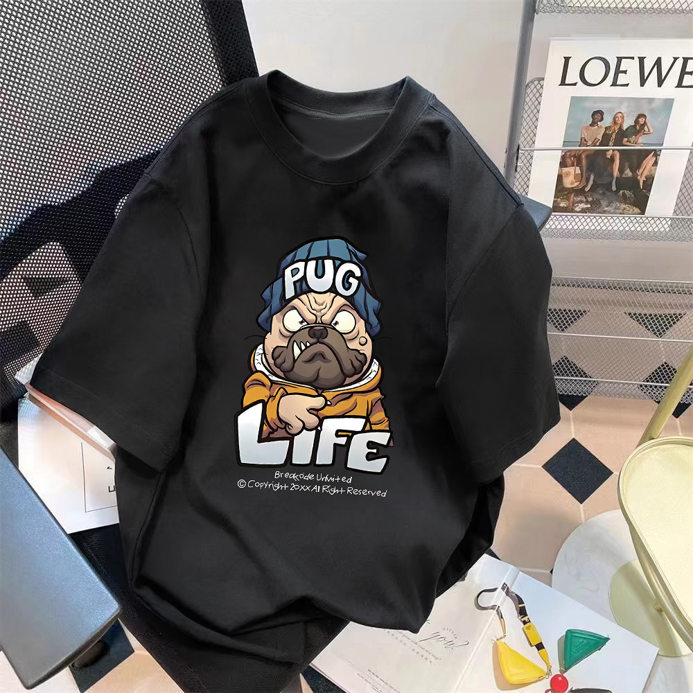 厂家批发潮流复古字母印花图案上衣宽松五分袖T恤简约百搭上衣