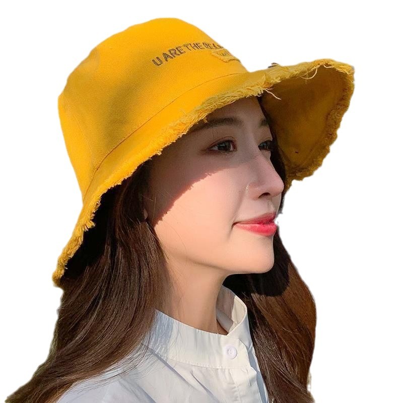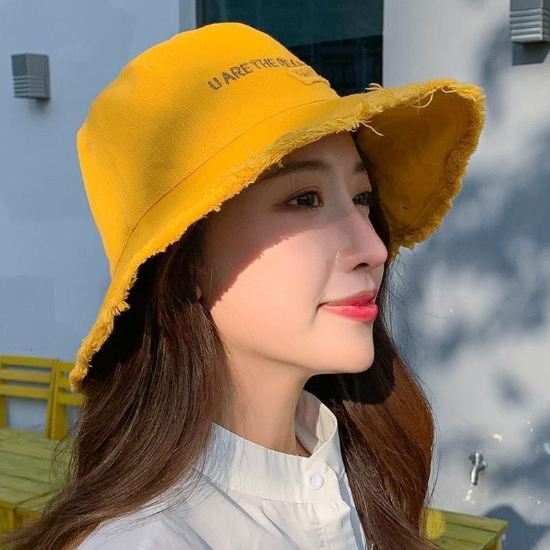 帽子女韩版夏季渔夫帽休闲时尚毛边做旧防晒太阳帽防紫外线遮阳帽