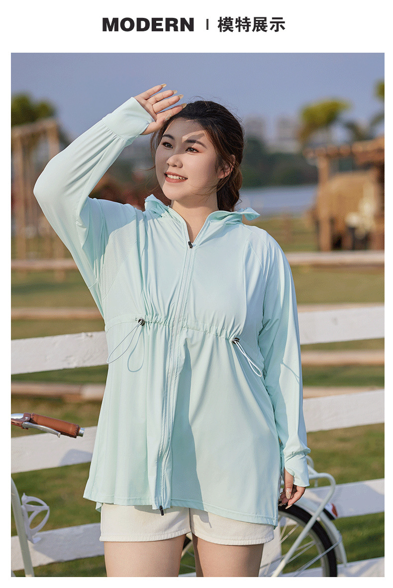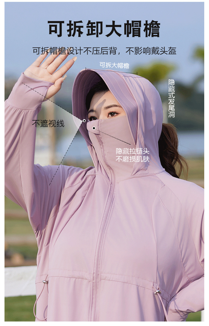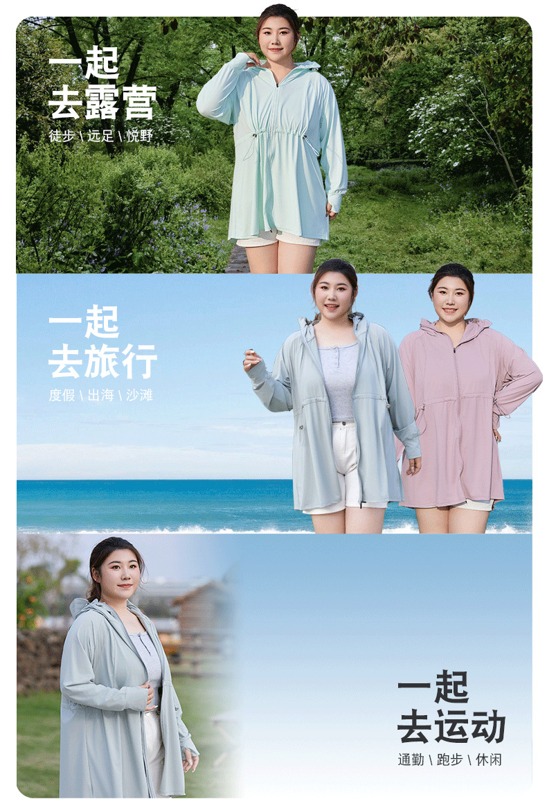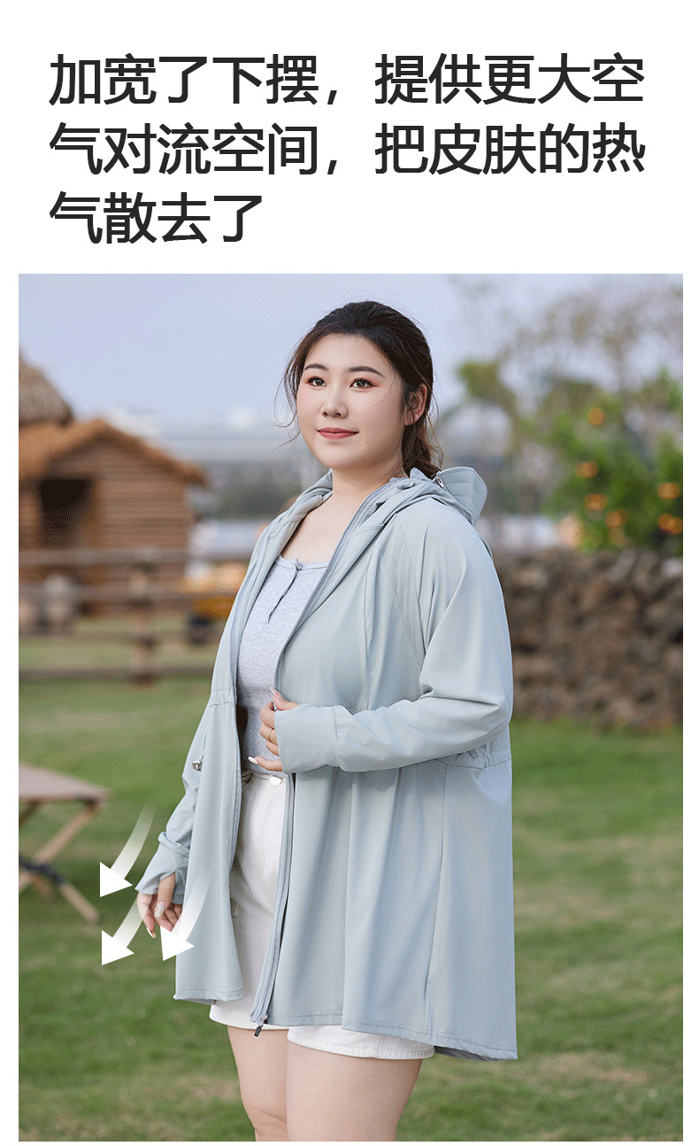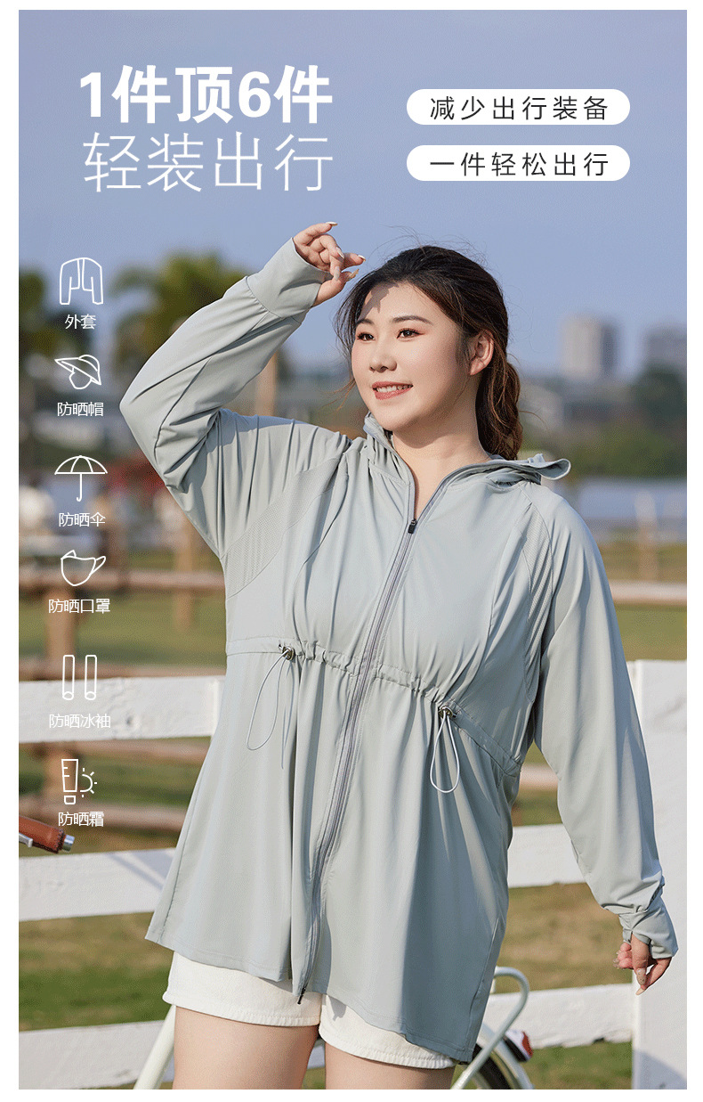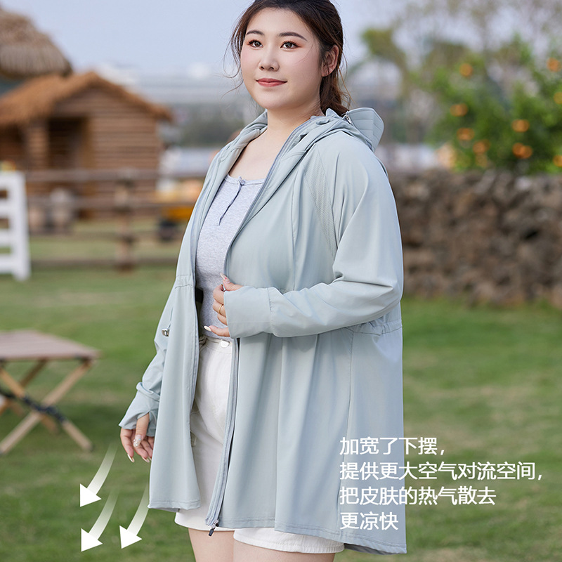 大码冰丝凉感户外防晒衣女夏季薄款皮肤衣防紫外线运动风衣防晒服
