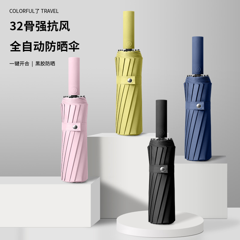 加大号黑胶24骨折叠雨伞全自动女防晒遮阳伞防风晴雨两用学生男士