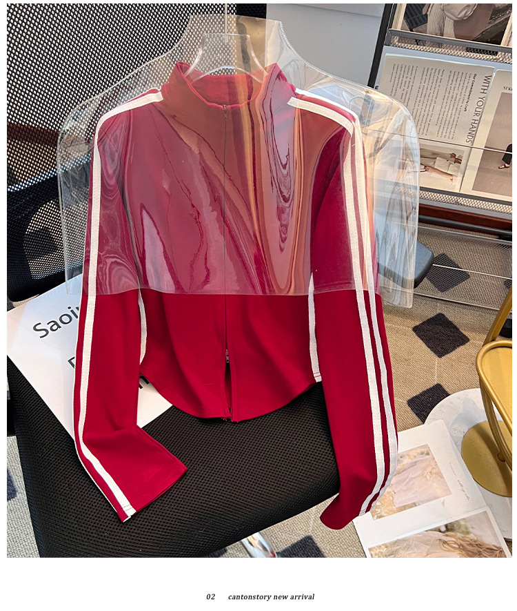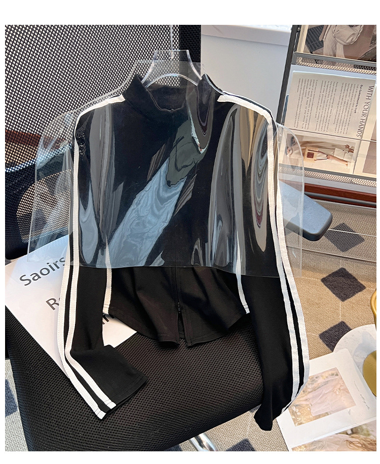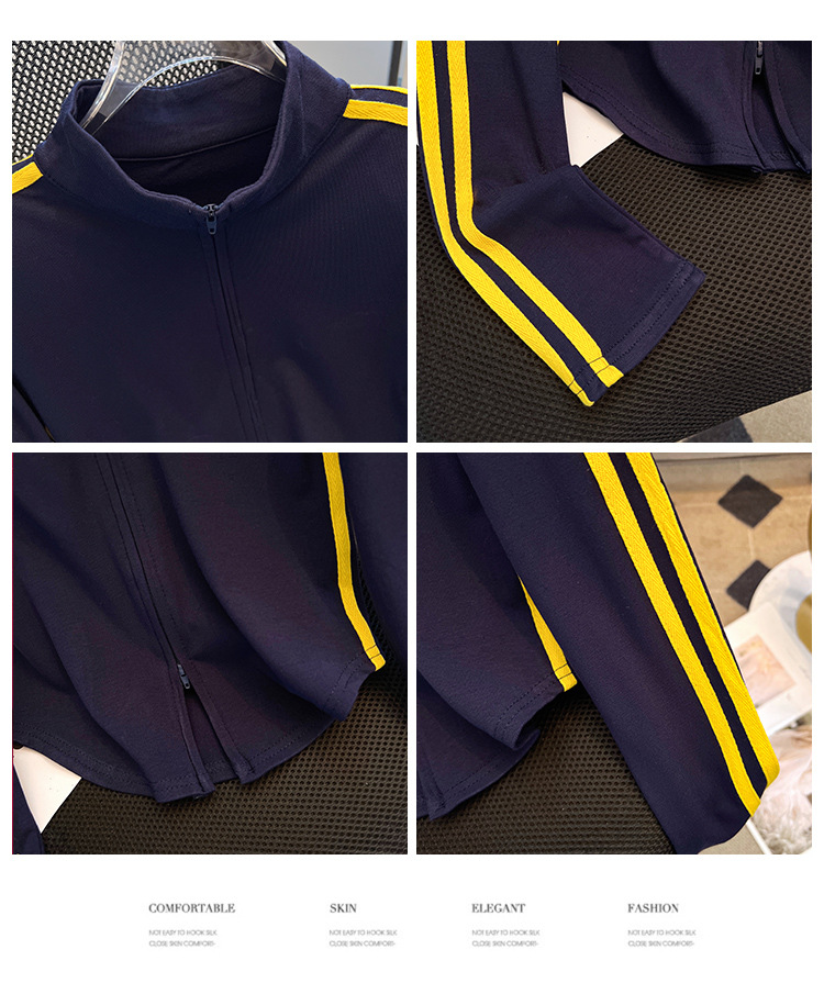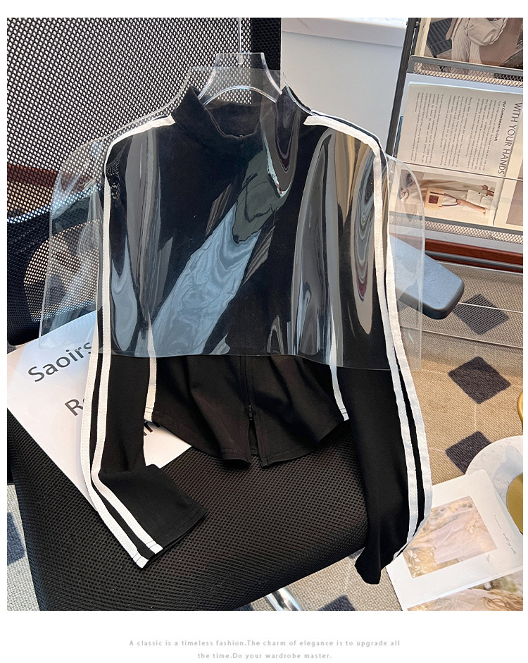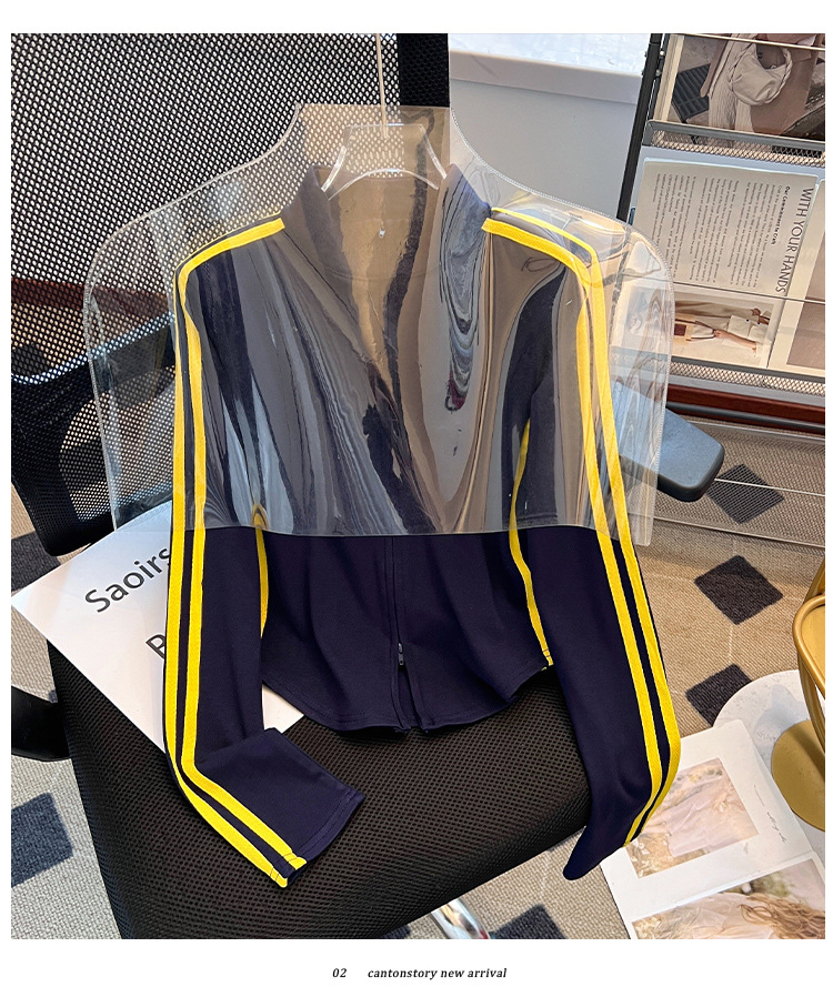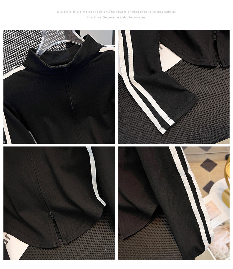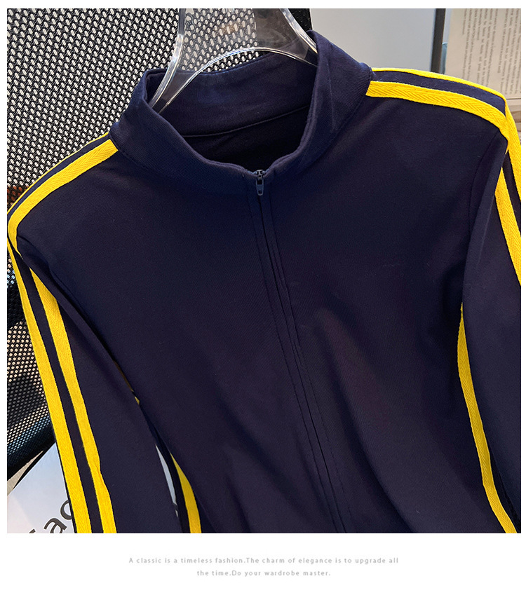 跨境美式复古杠条立领拉链长袖T恤女秋冬短款磨毛修身打底衫代发