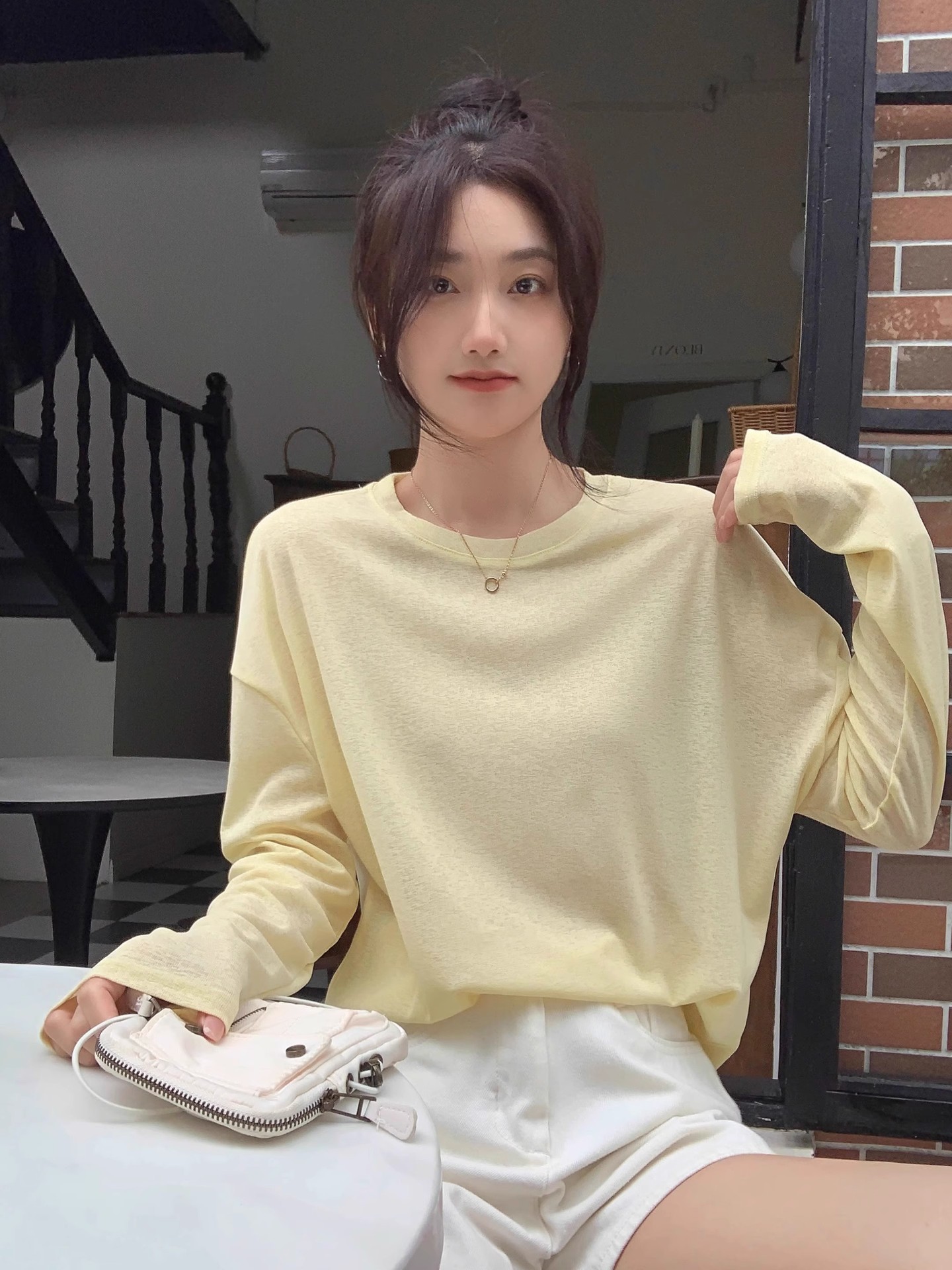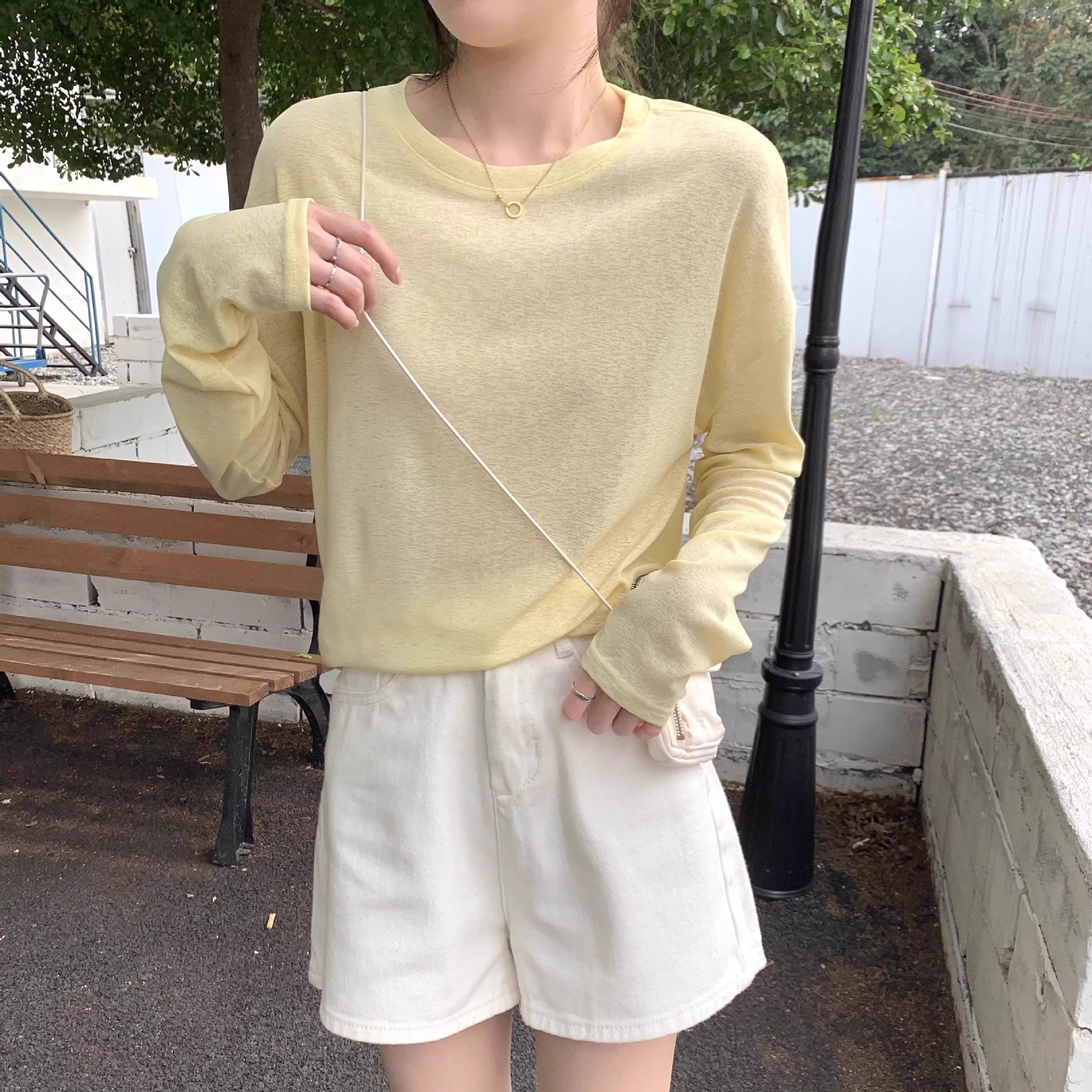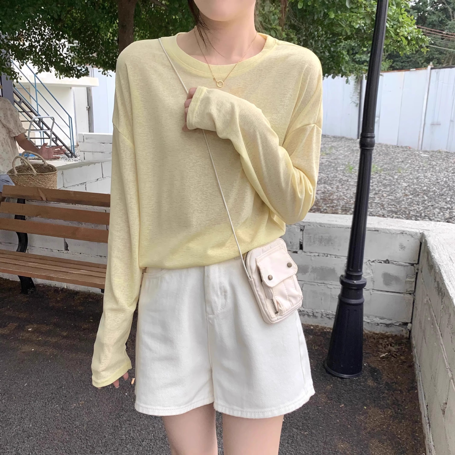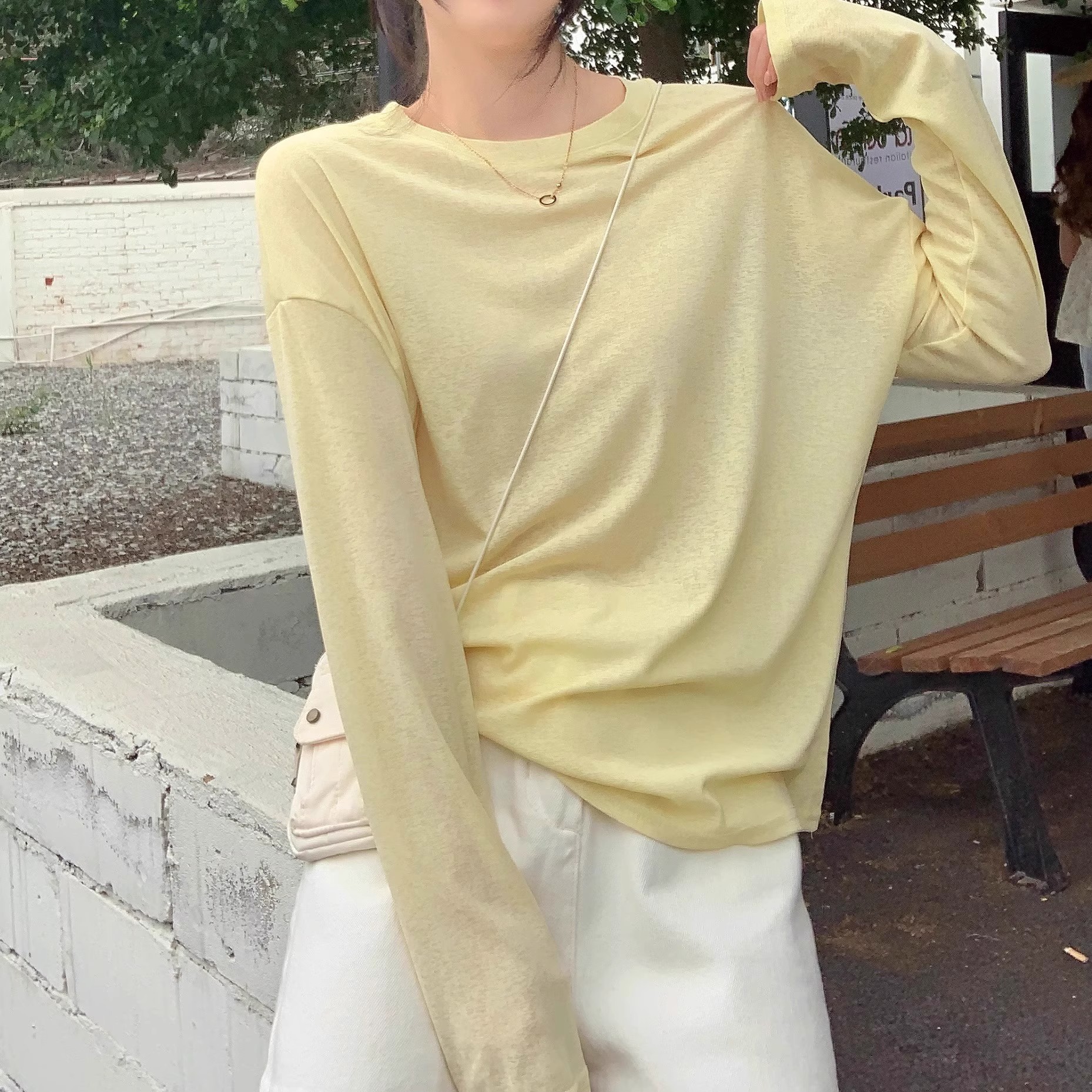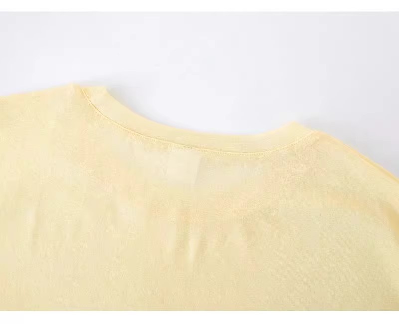 薄款防晒长袖T恤女春夏简约宽松圆领套头罩衫黄色上衣防晒罩衫