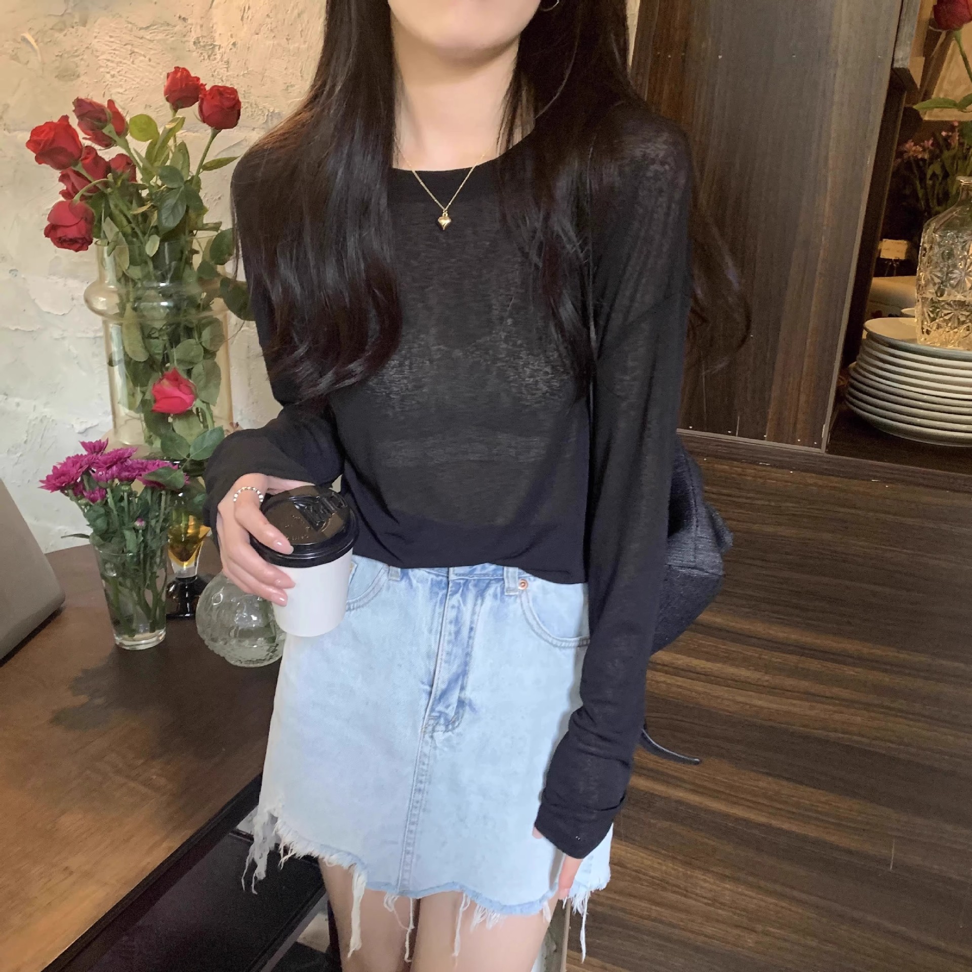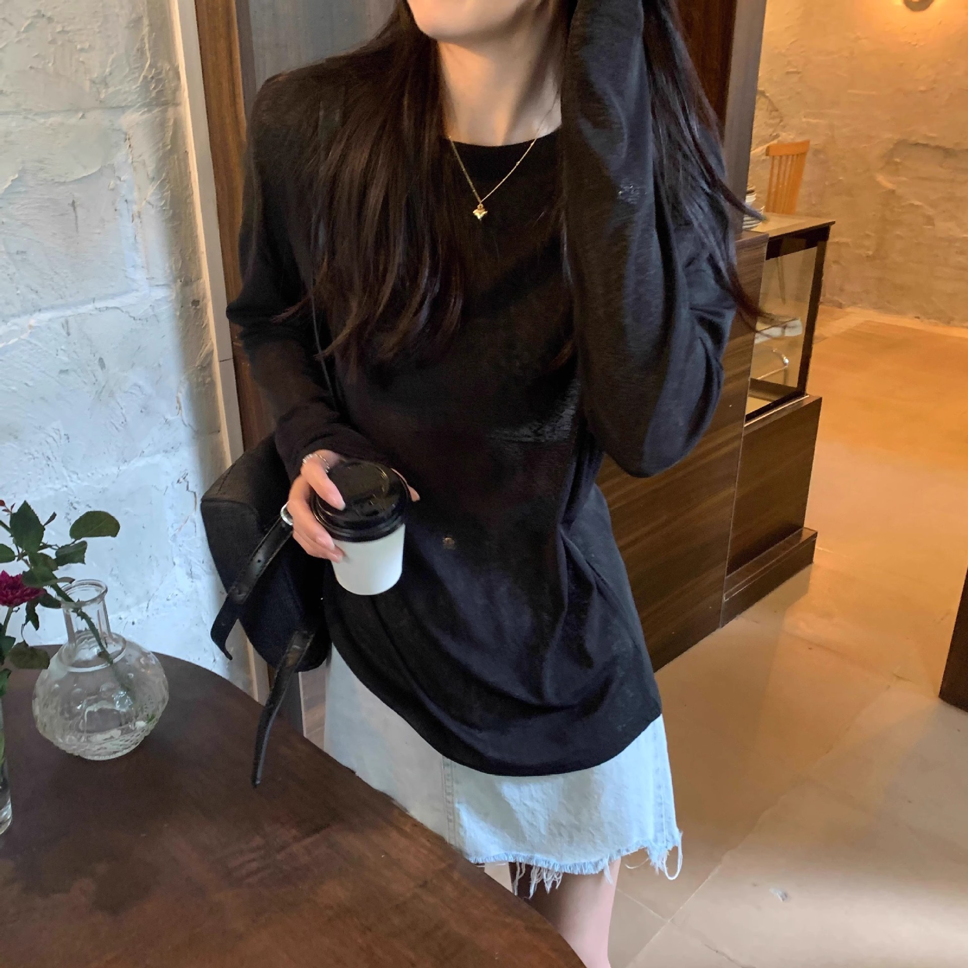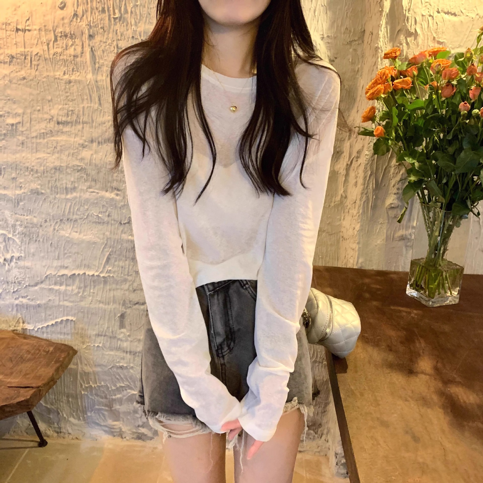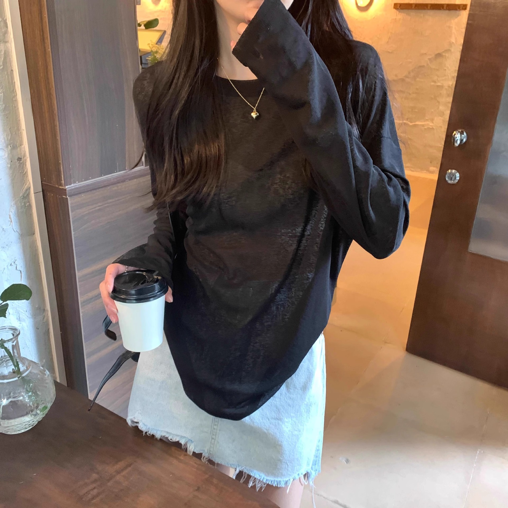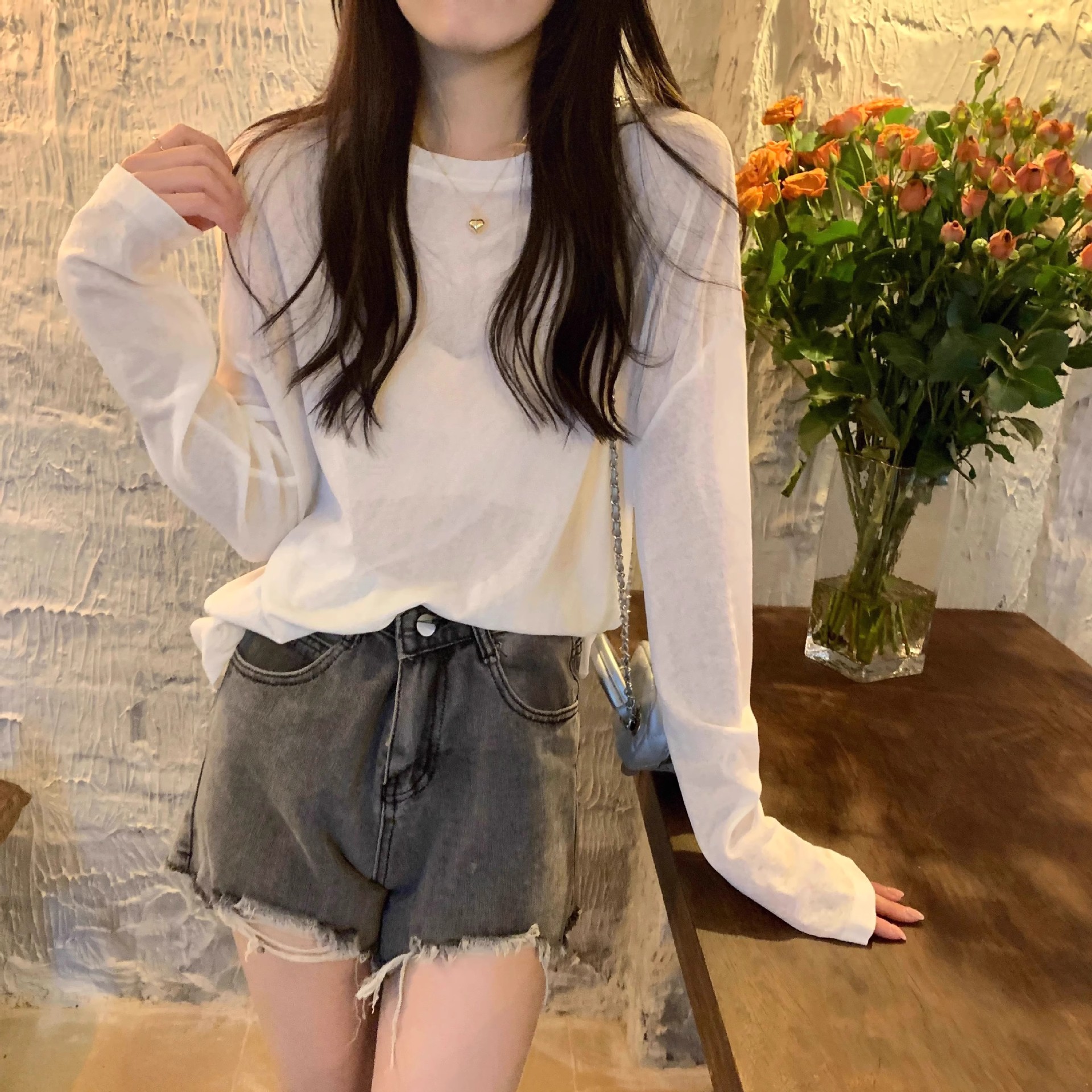 薄款防晒长袖T恤女春夏简约宽松圆领套头罩衫黄色上衣防晒罩衫