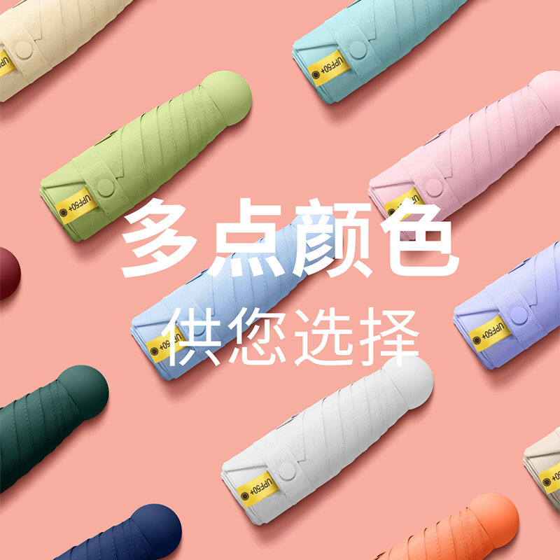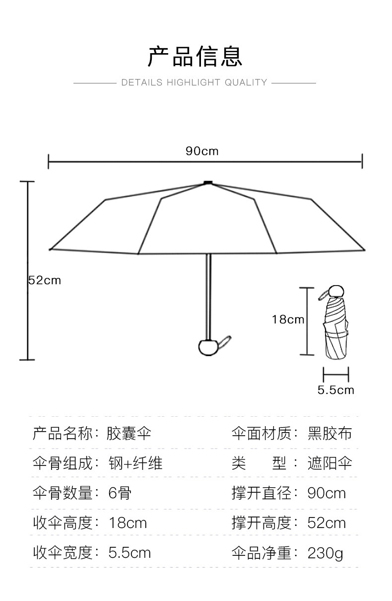 新款便携五折伞遮阳黑胶防晒防紫外线太阳伞口袋胶囊伞现货批发