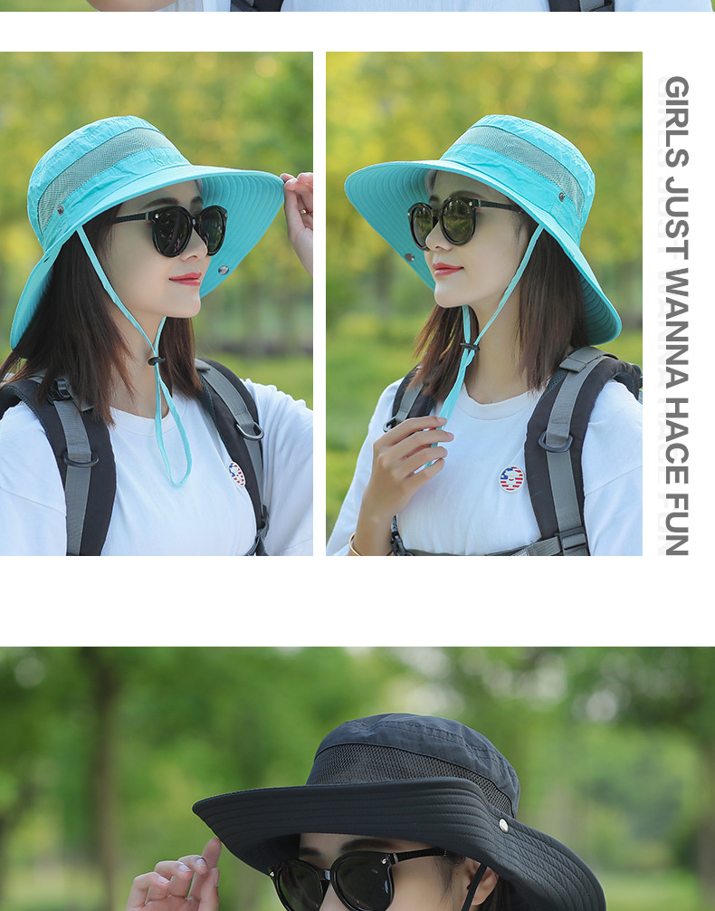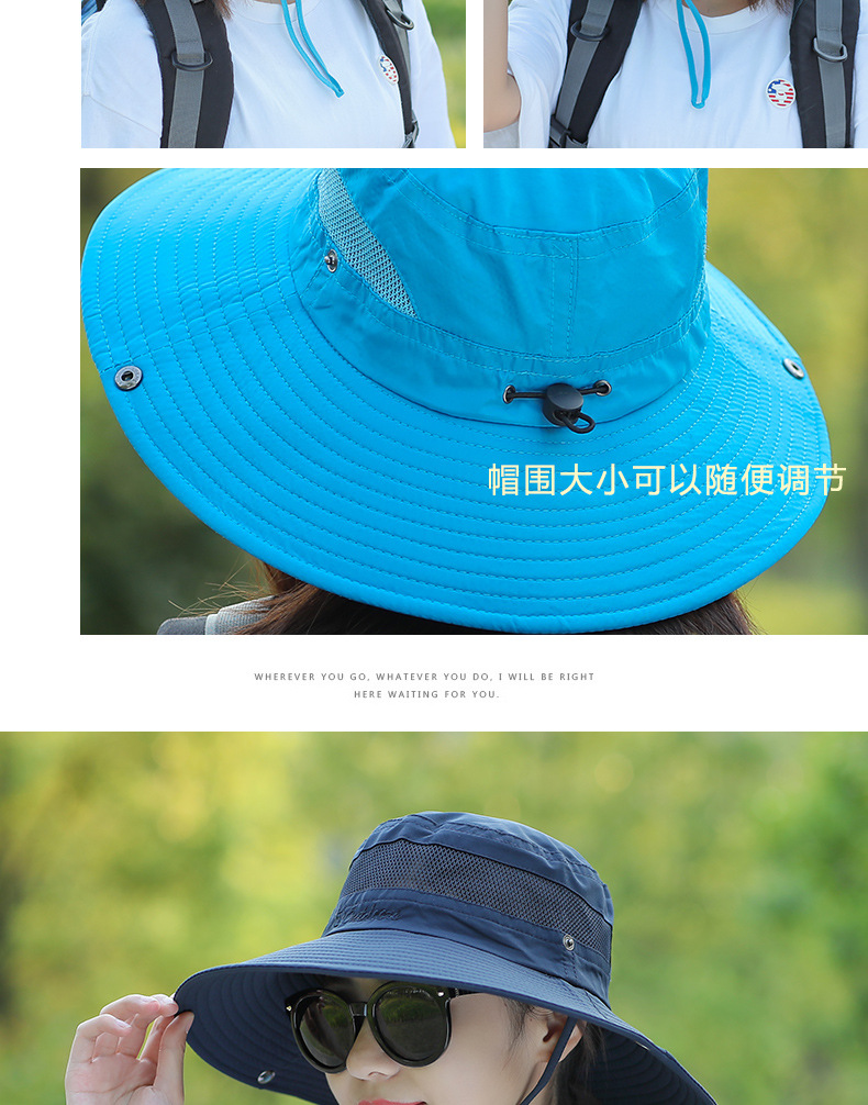 遮阳帽子渔夫帽女可折叠太阳帽夏男防晒帽骑车旅游登山帽大帽檐