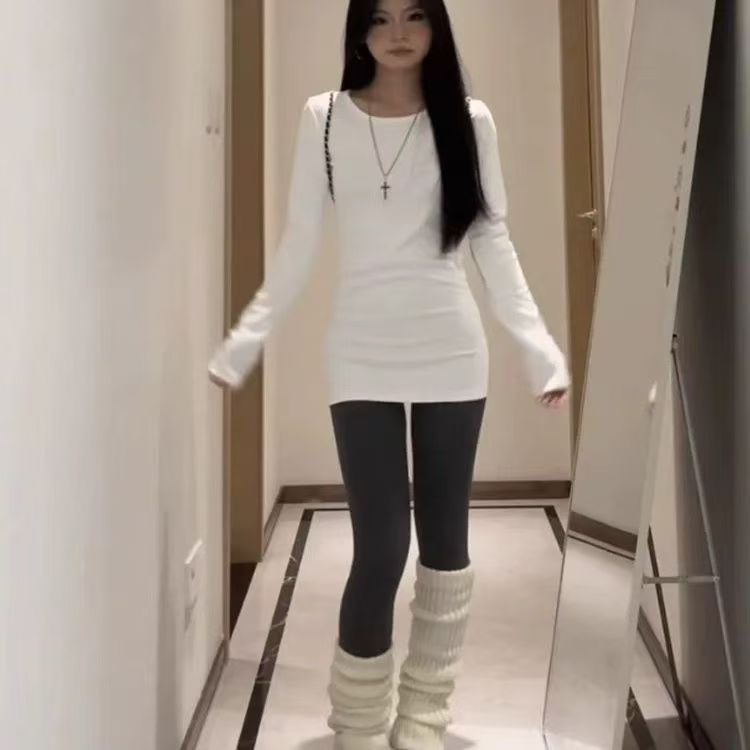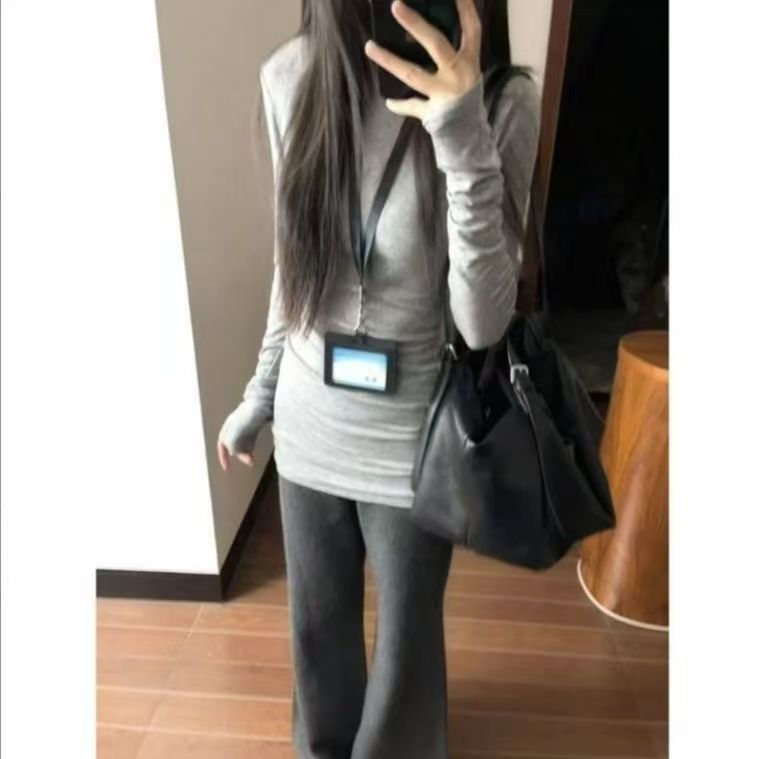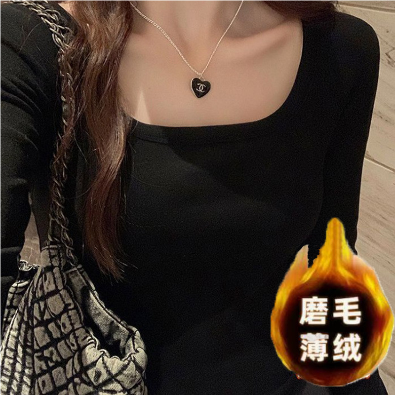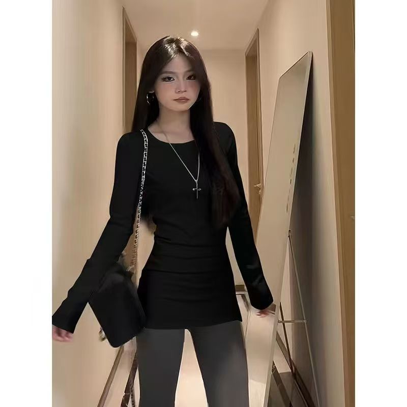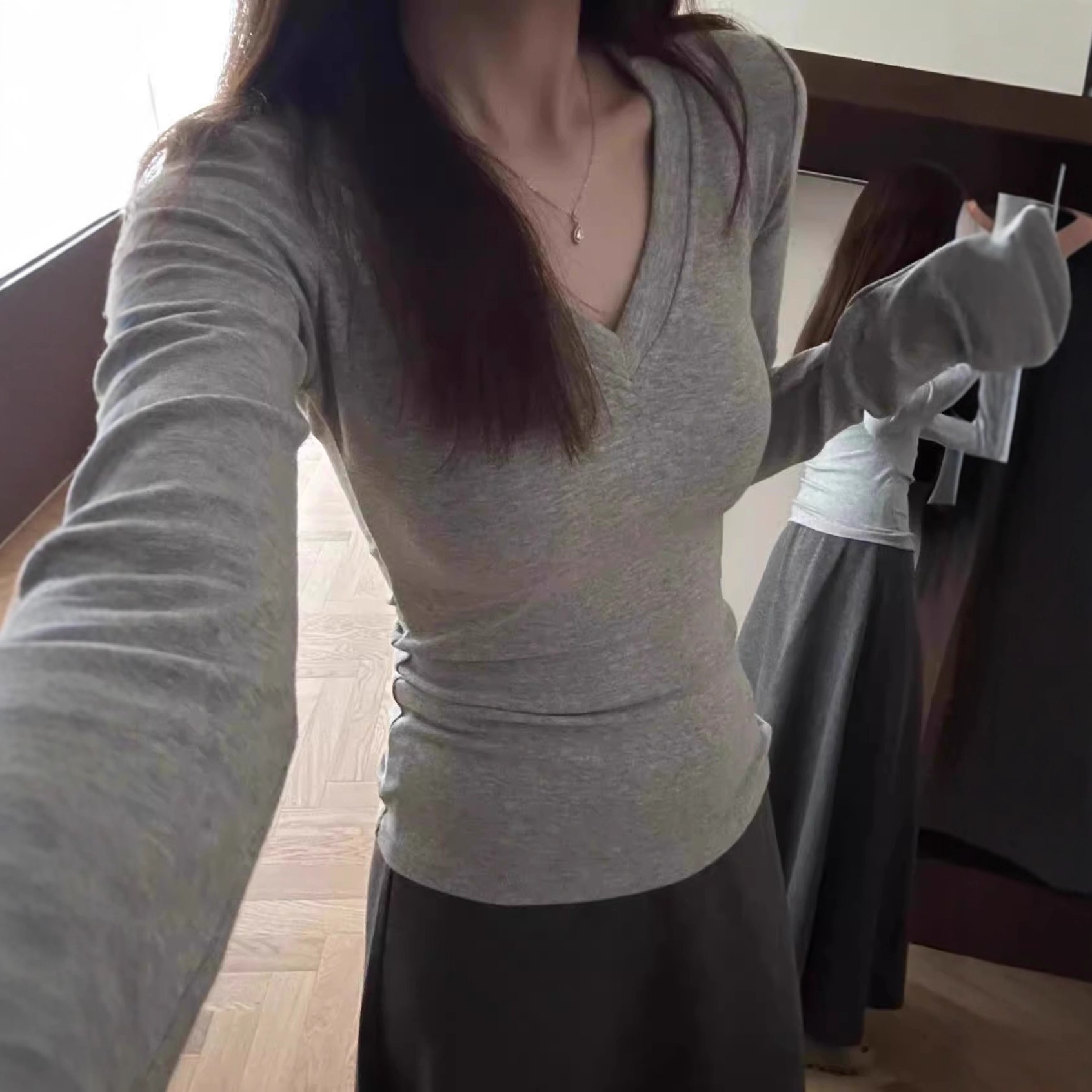 2025秋冬新款德绒V领正肩长袖t恤女内搭打底衫修身基础款辣妹上衣