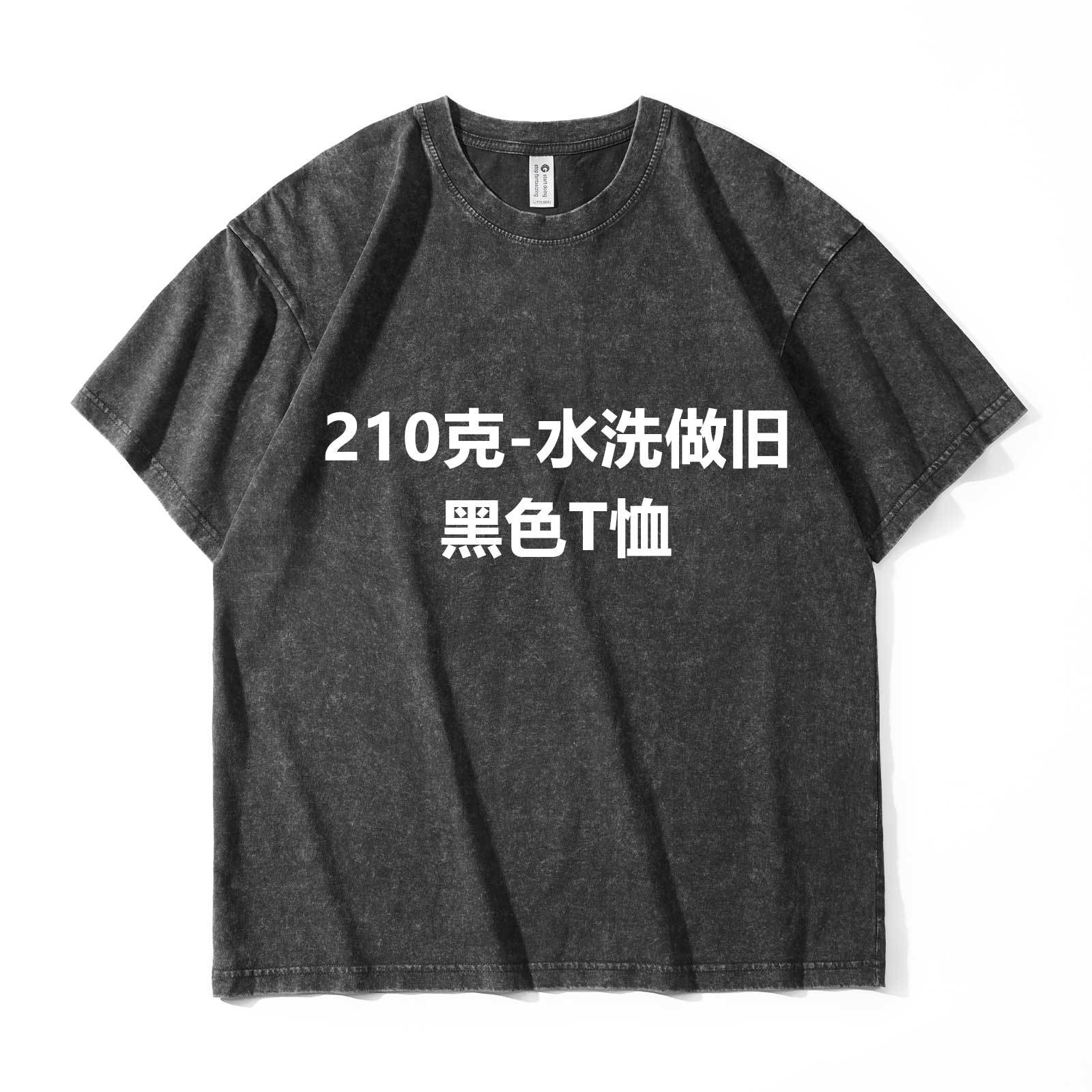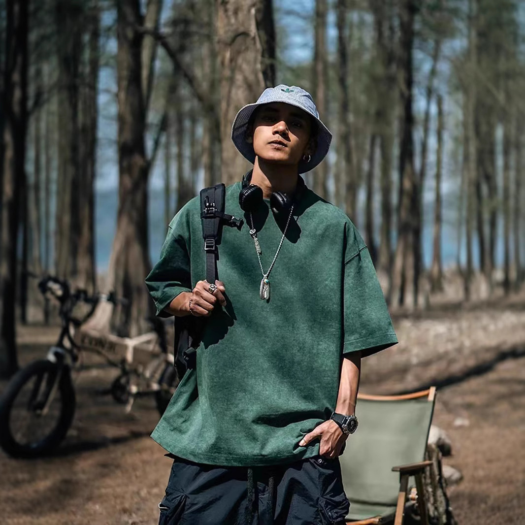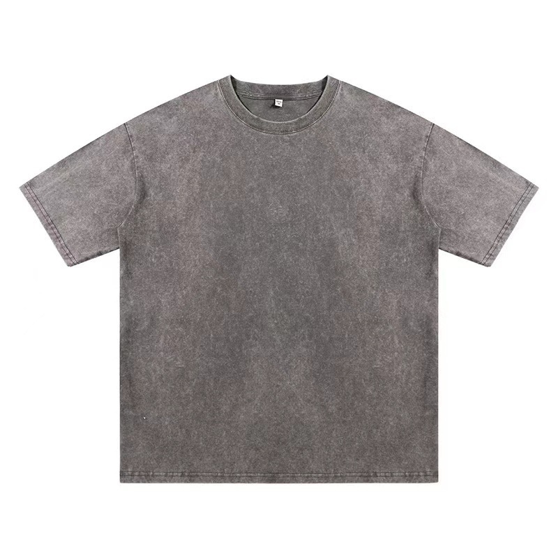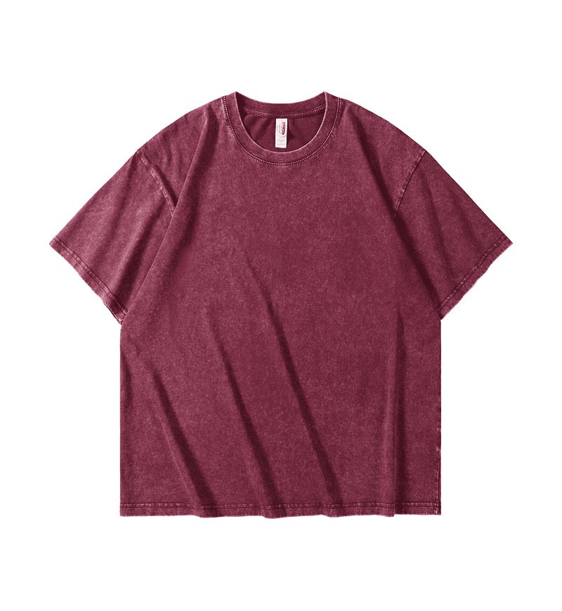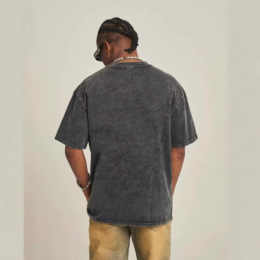欧美跨境230g重磅水洗做旧短袖T恤男百搭纯色宽松圆领潮牌上衣ins