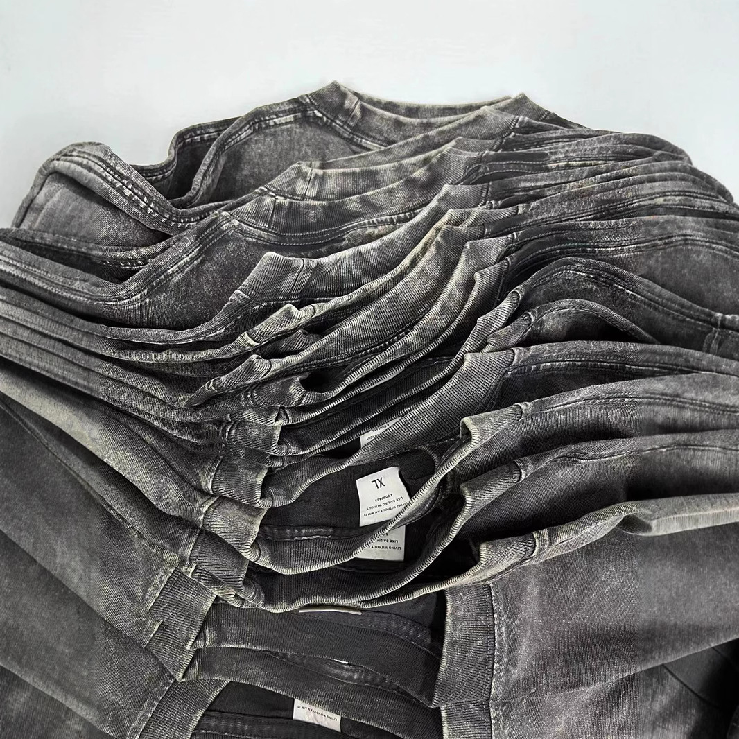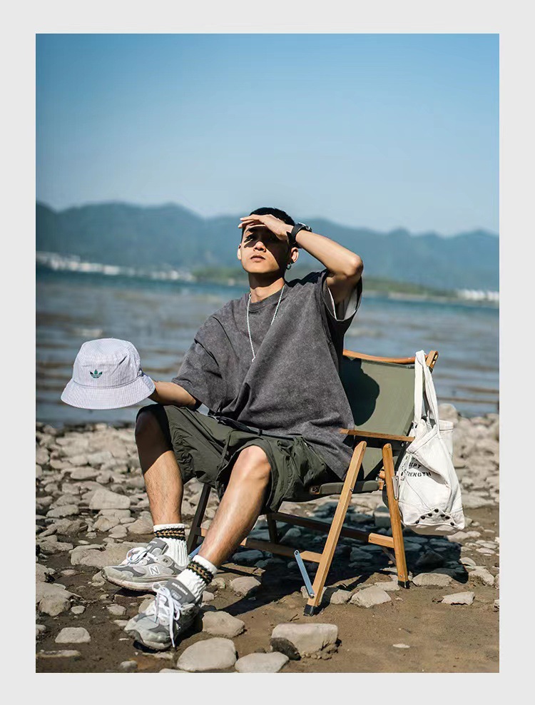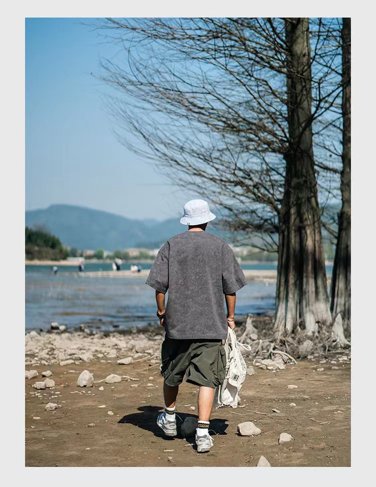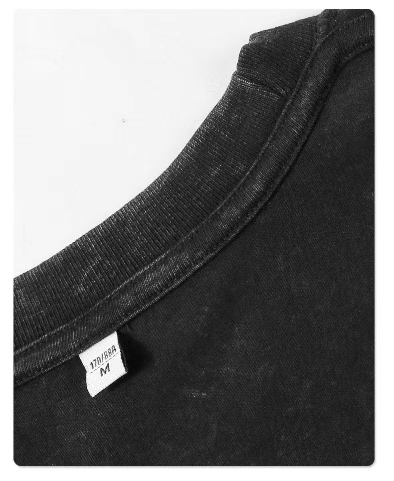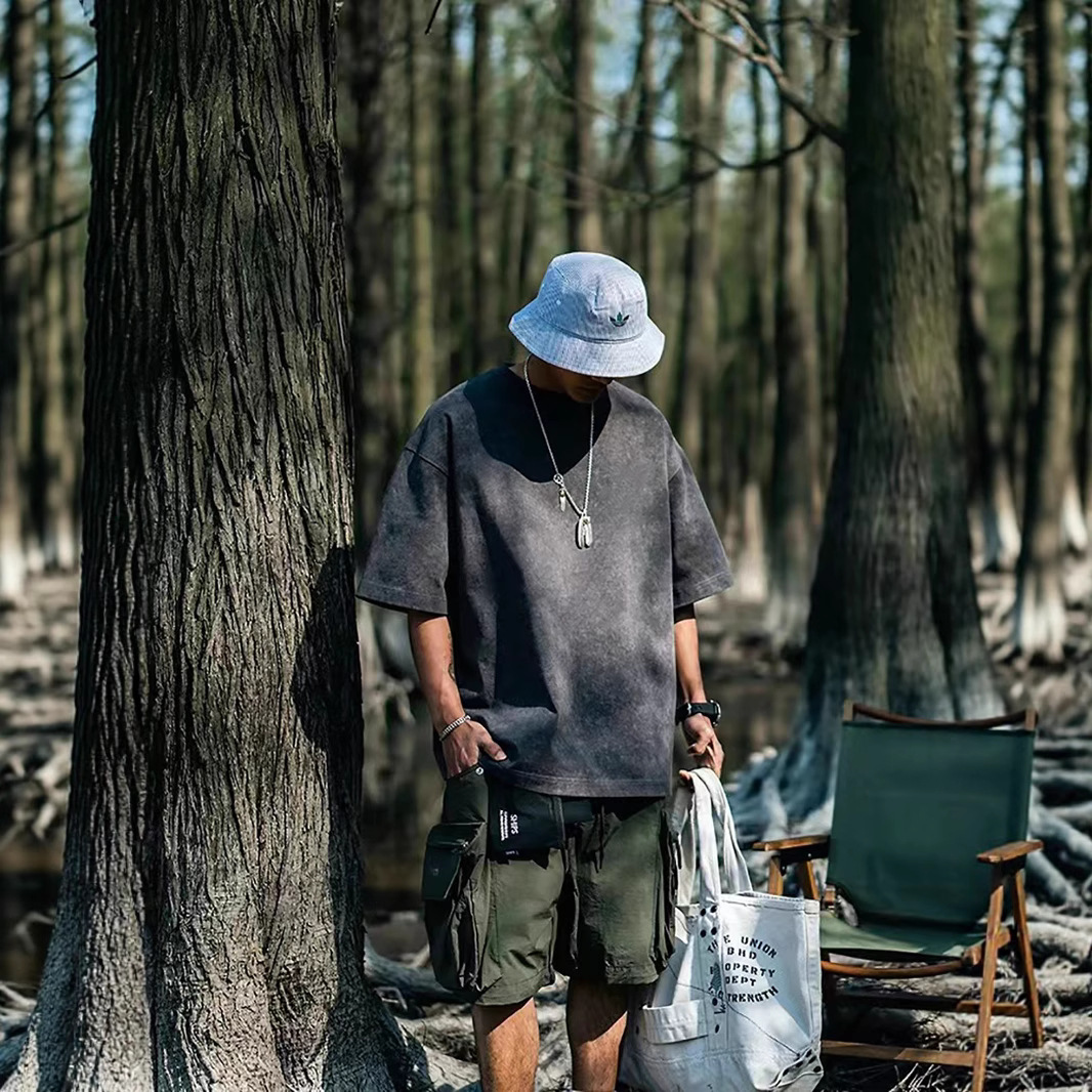 欧美跨境230g重磅水洗做旧短袖T恤男百搭纯色宽松圆领潮牌上衣ins