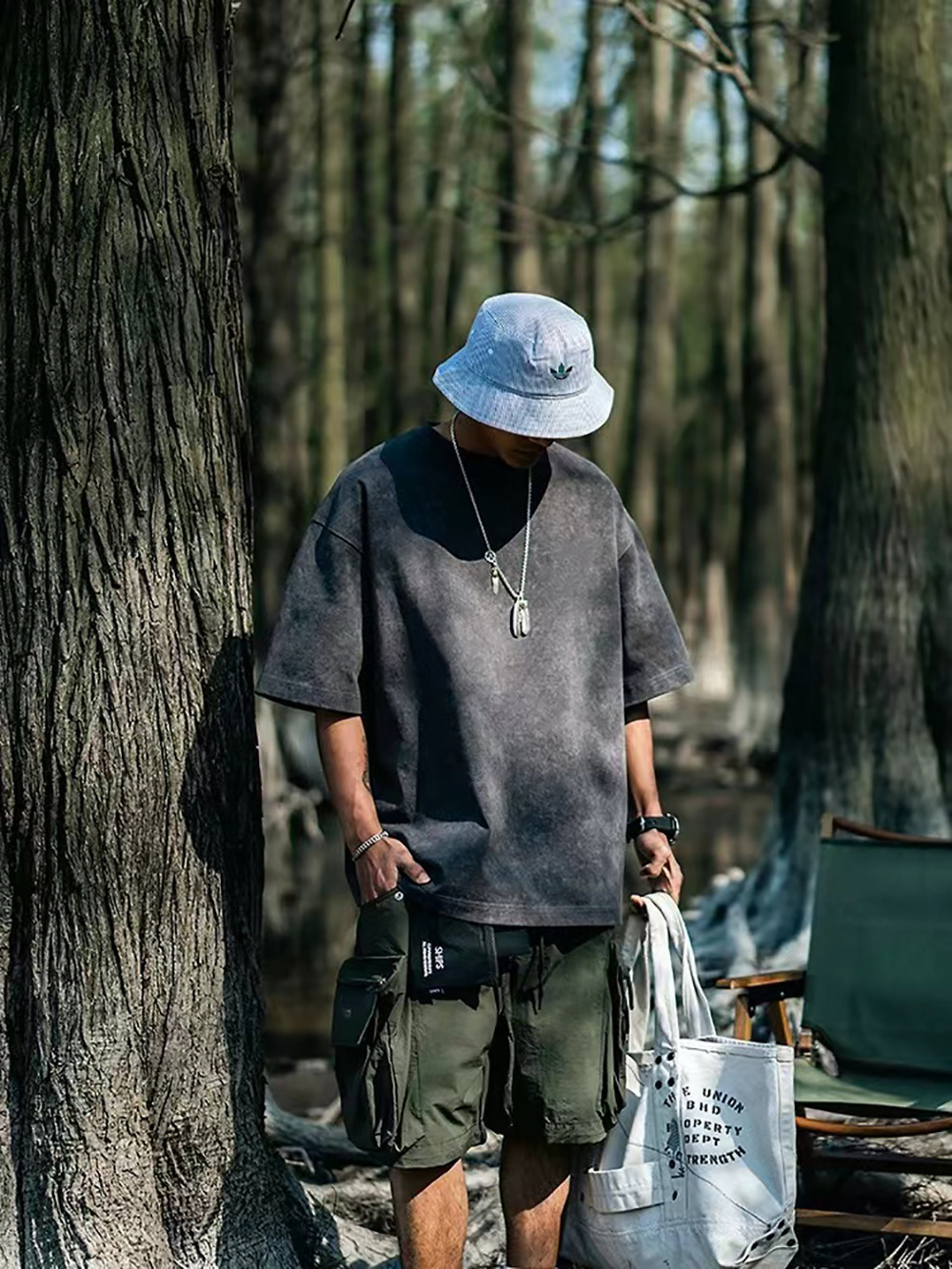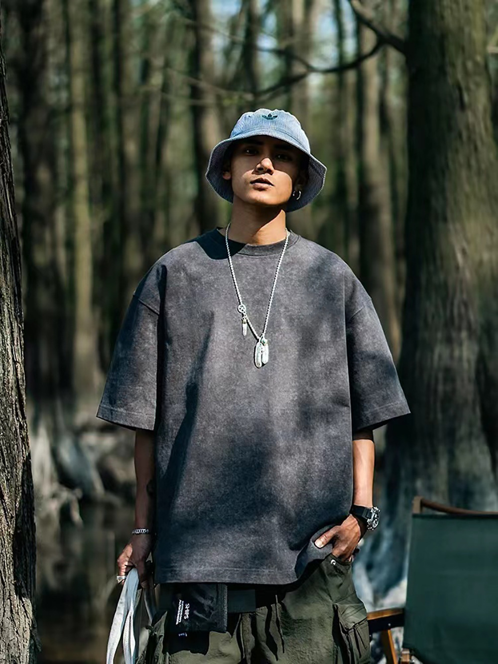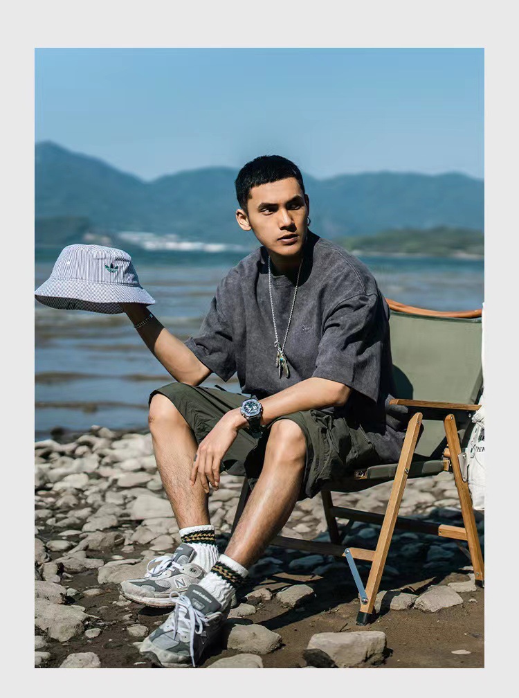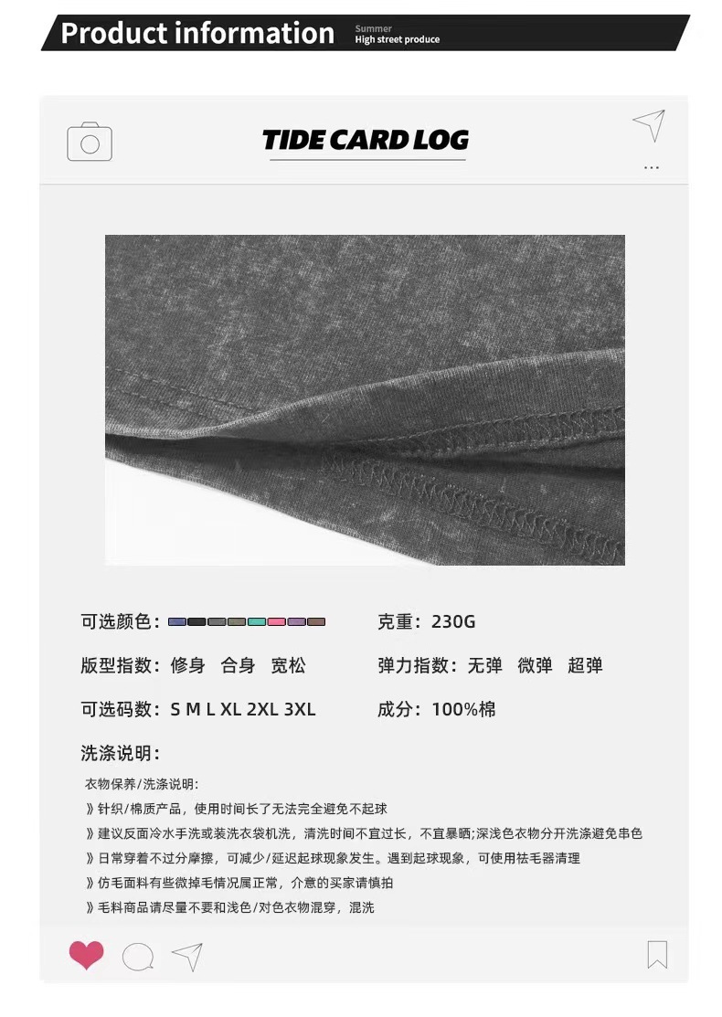 欧美跨境230g重磅水洗做旧短袖T恤男百搭纯色宽松圆领潮牌上衣ins