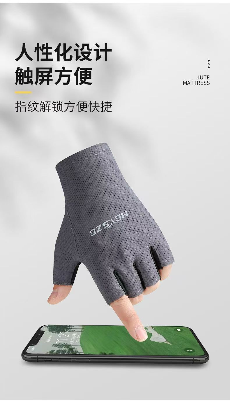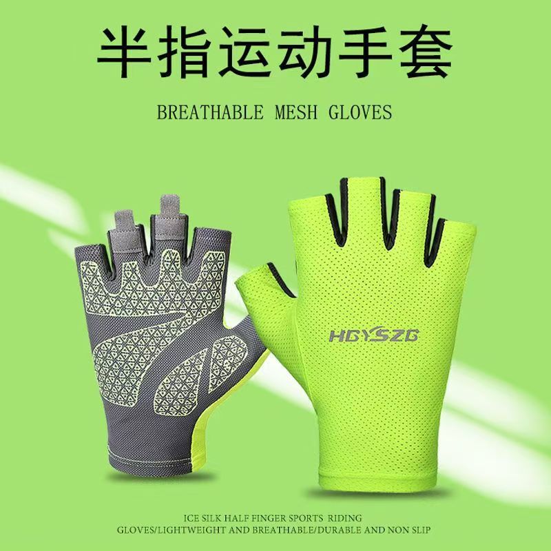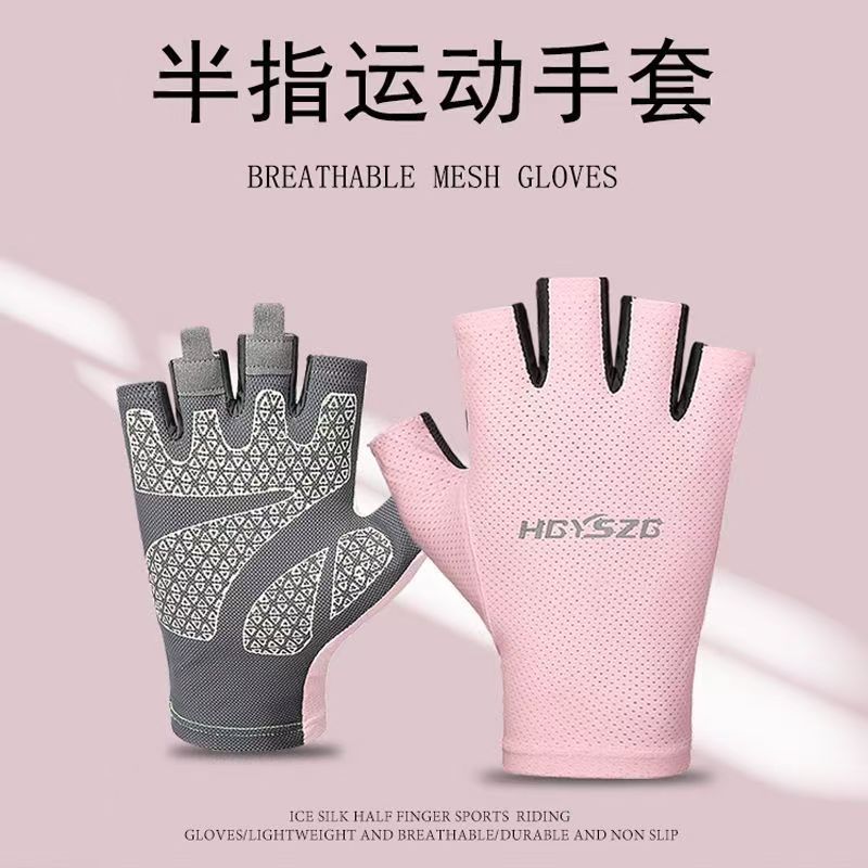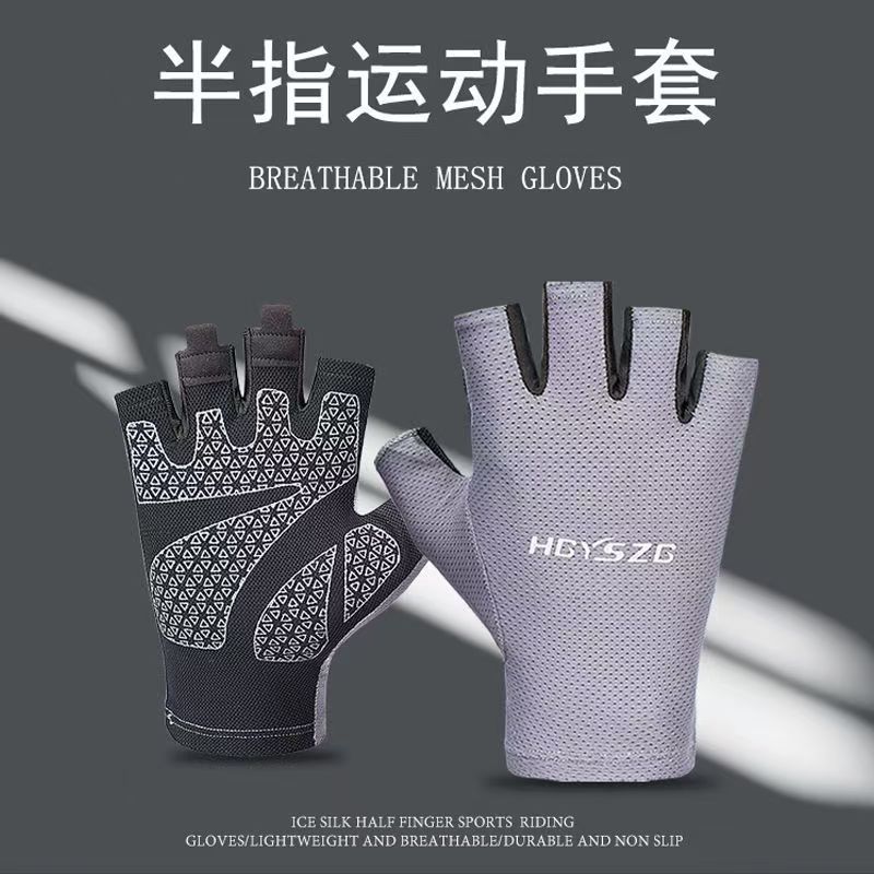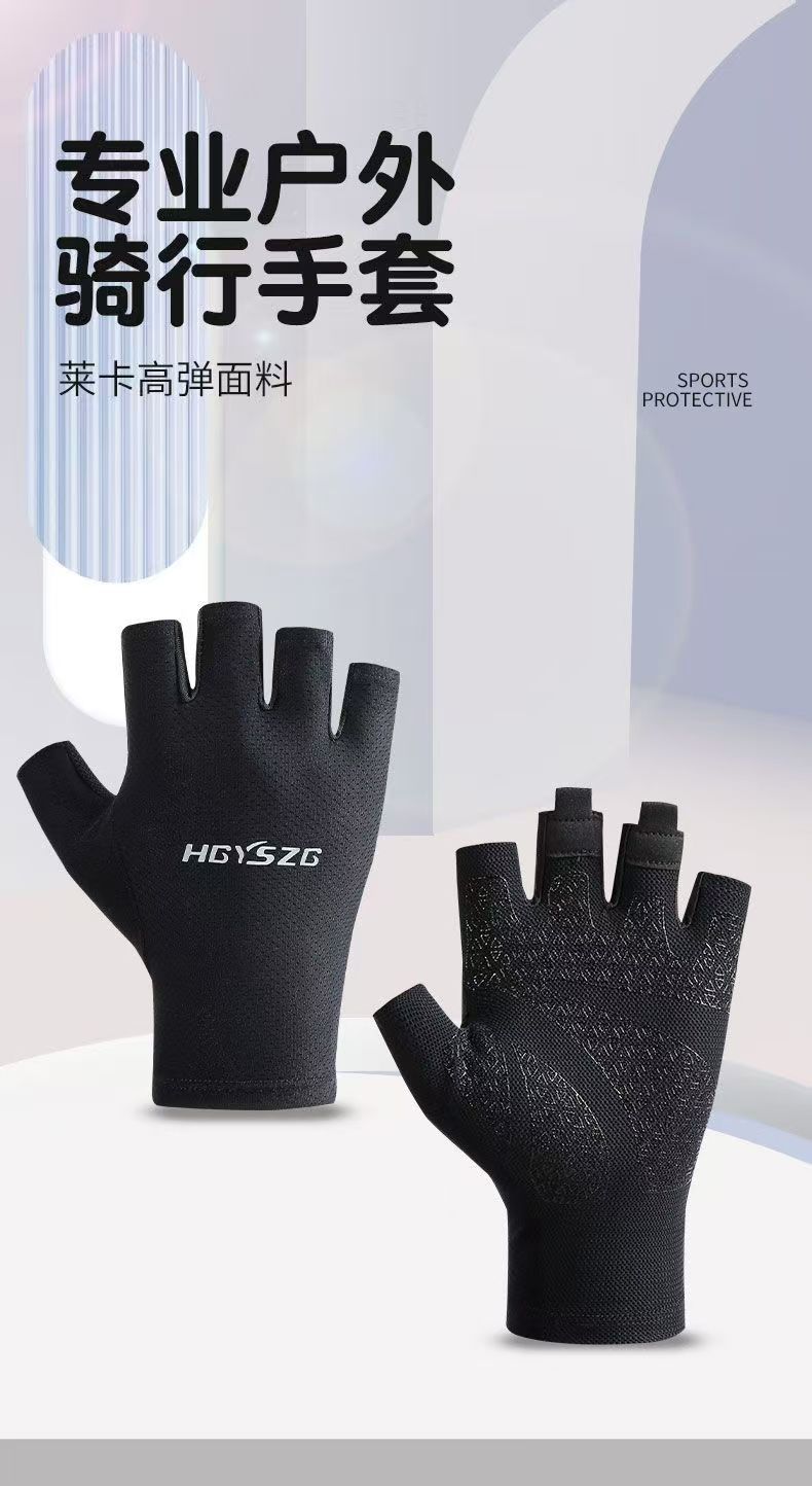 冰丝超薄防晒骑行运动健身半指手套男女夏季钓鱼器械防滑登山触屏