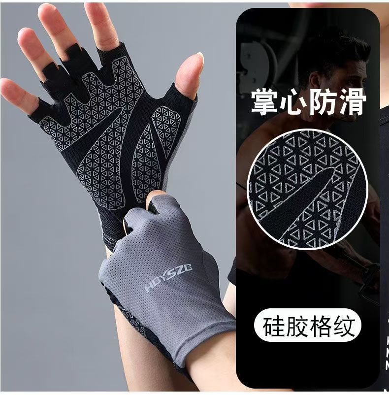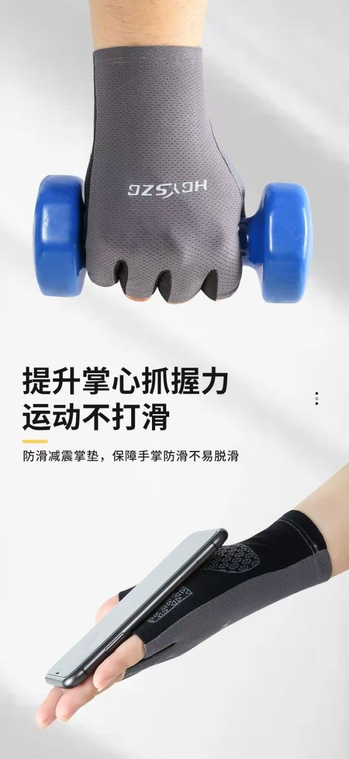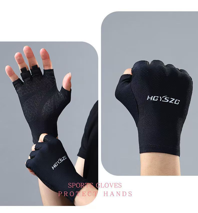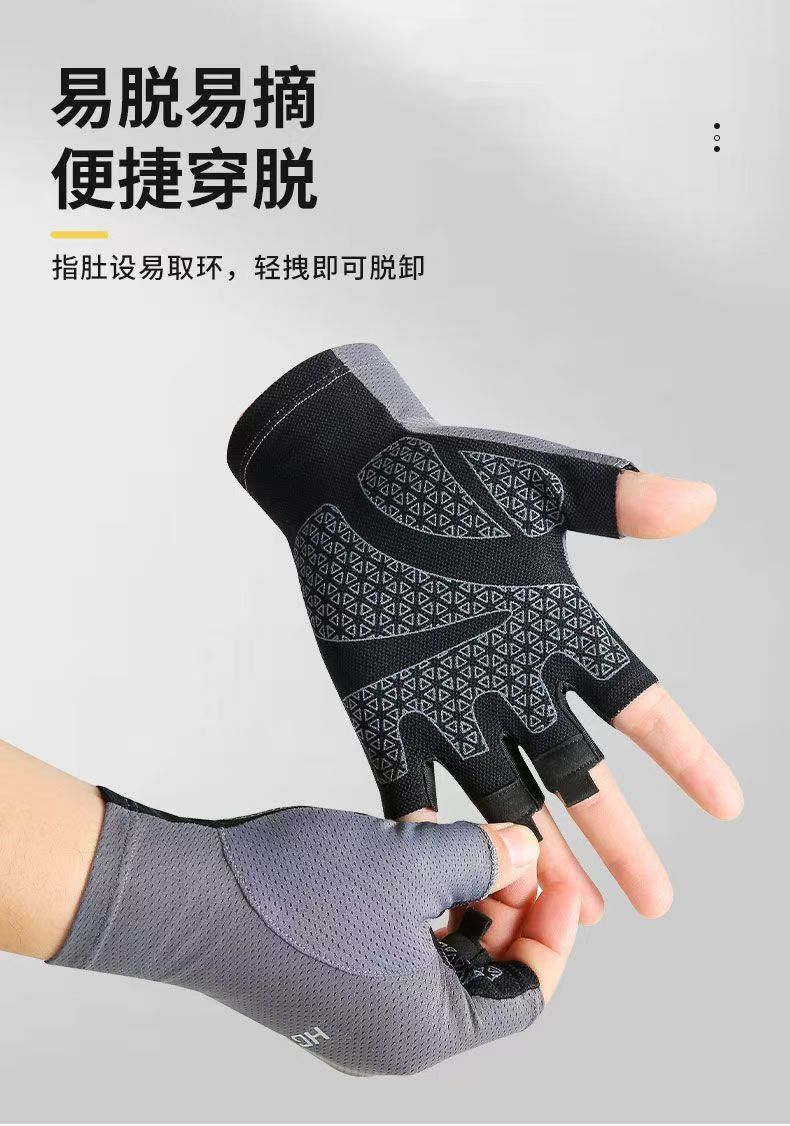 冰丝超薄防晒骑行运动健身半指手套男女夏季钓鱼器械防滑登山触屏