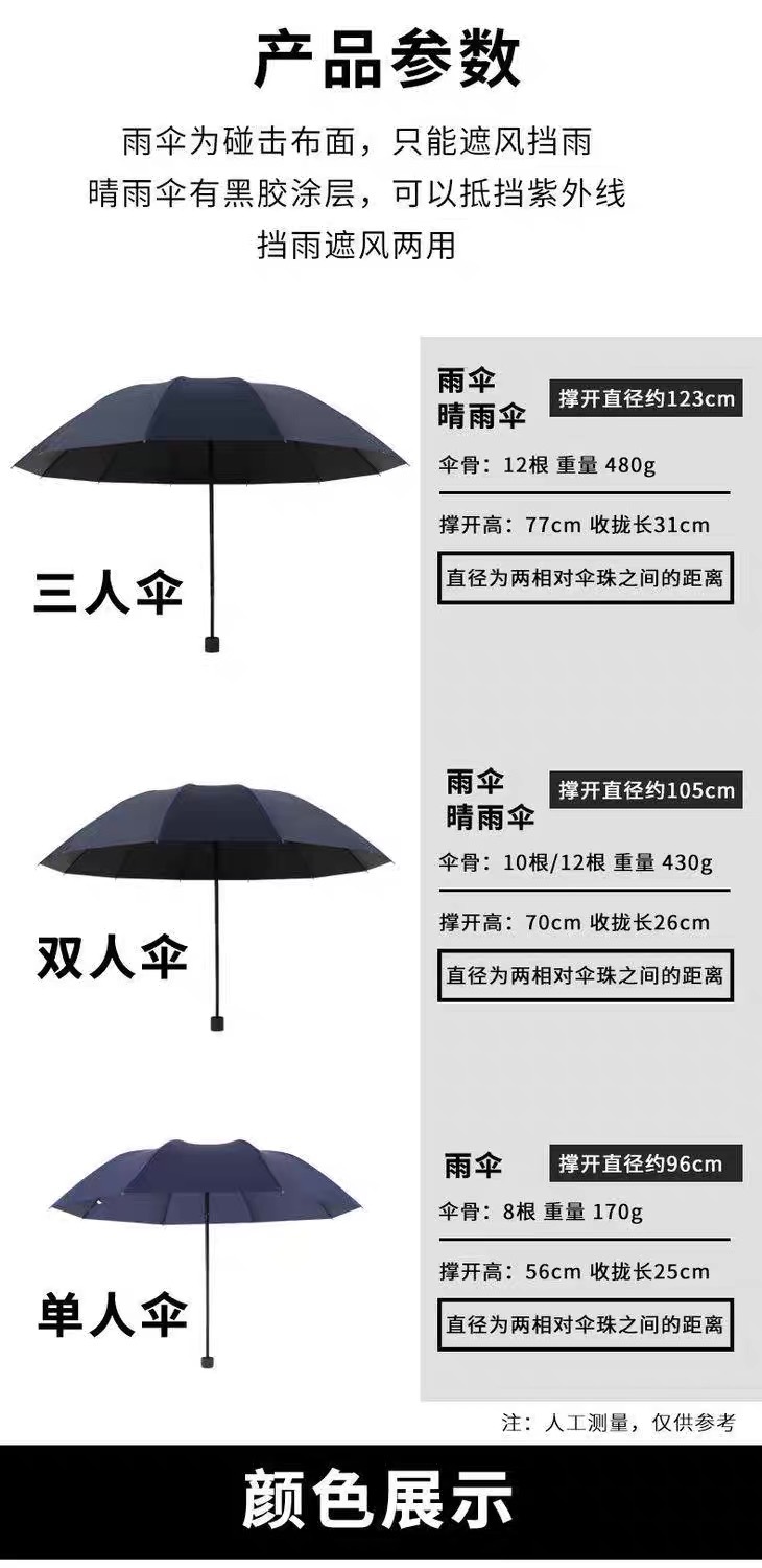 手动12骨超大号加固折叠雨伞结实耐用晴雨两用伞遮阳伞防晒太阳伞