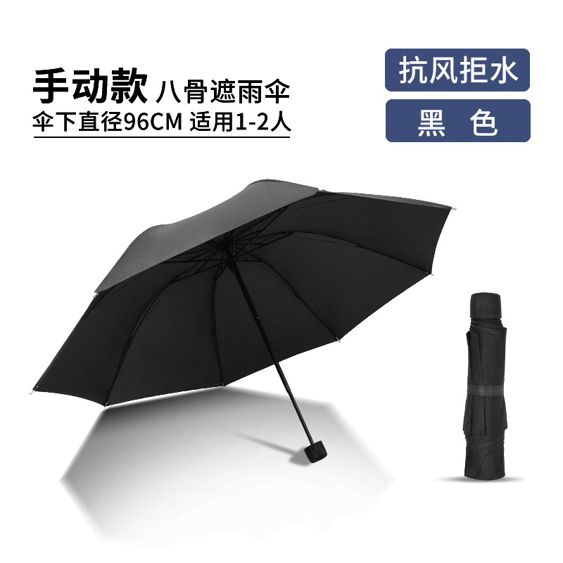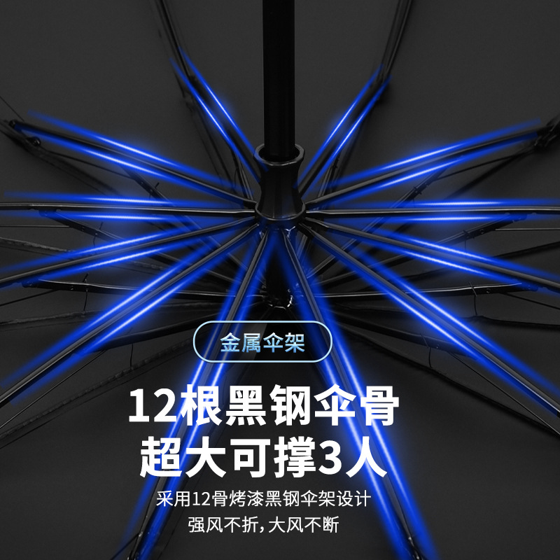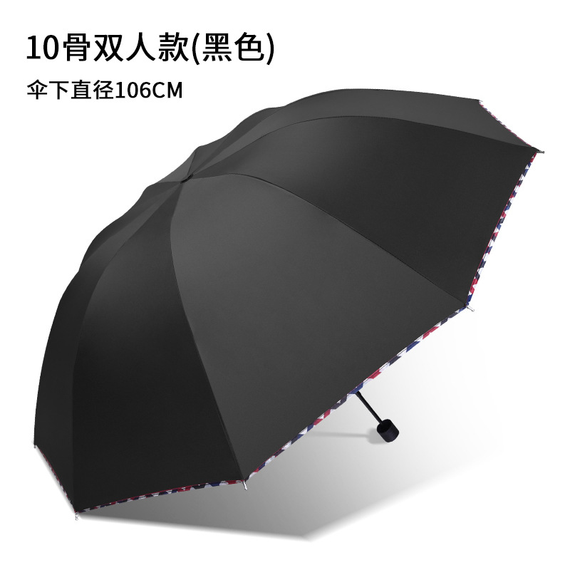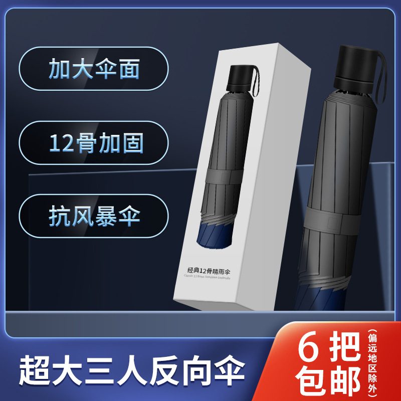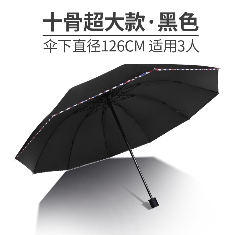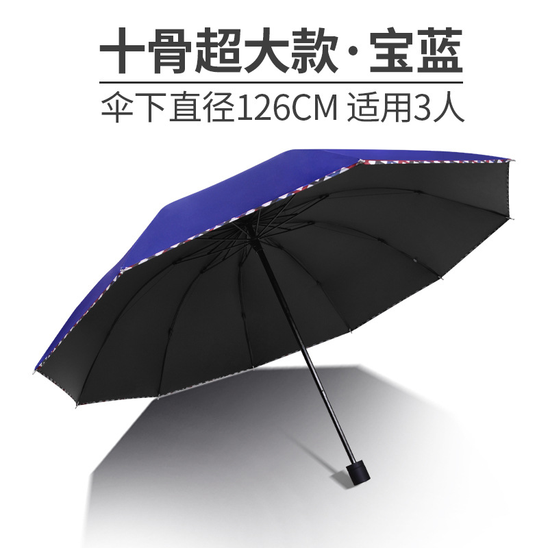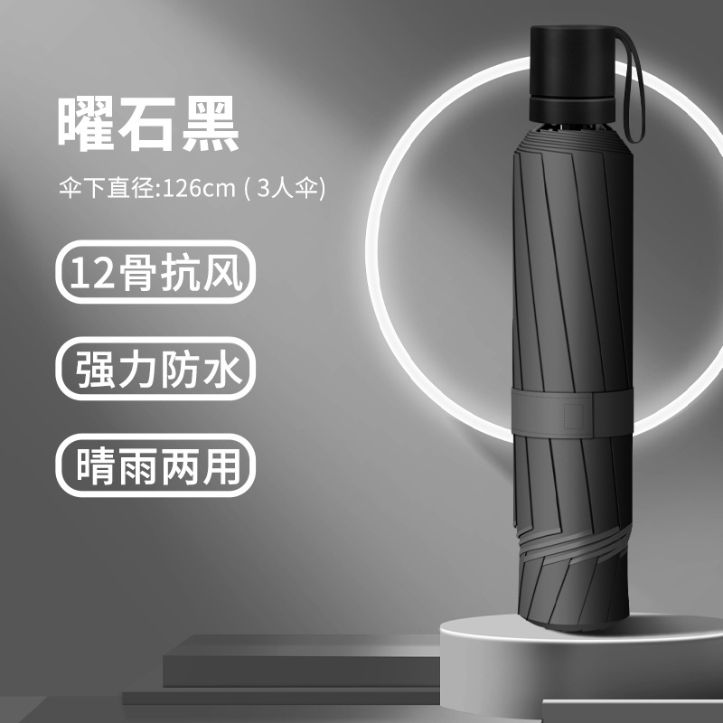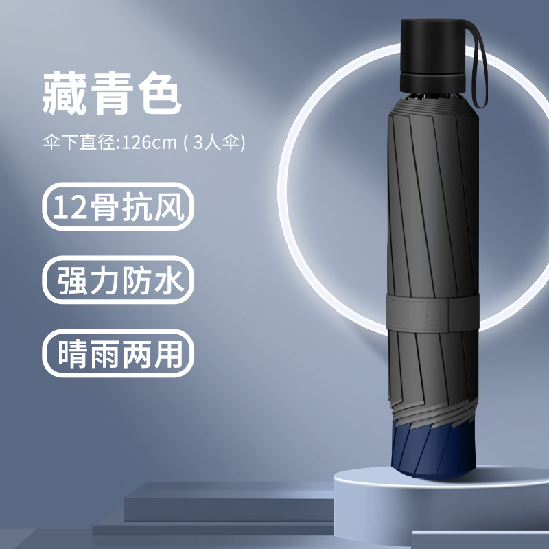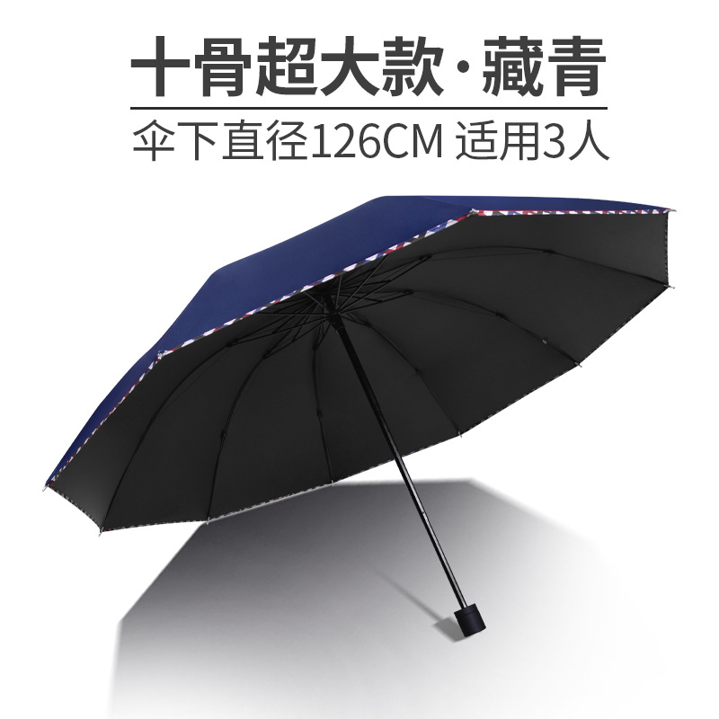 12骨超大折叠男士商务晴雨伞三折黑胶防晒太阳伞批发广告雨伞定制