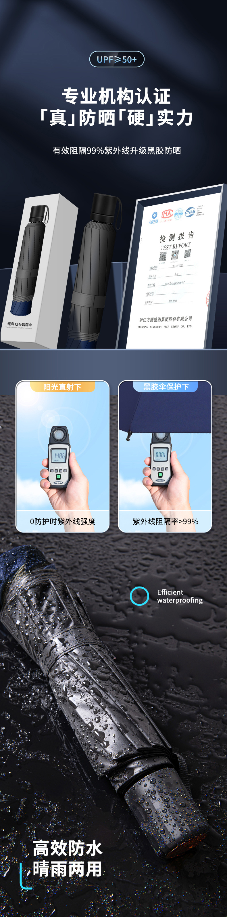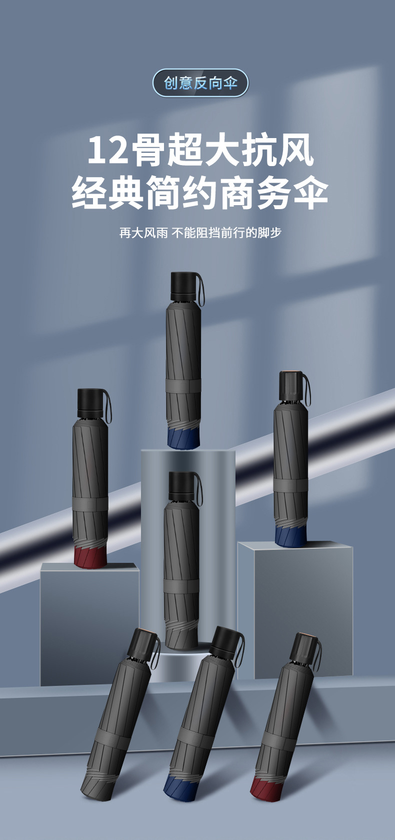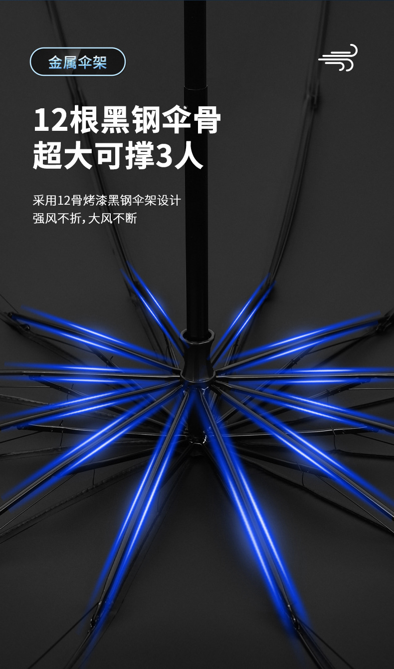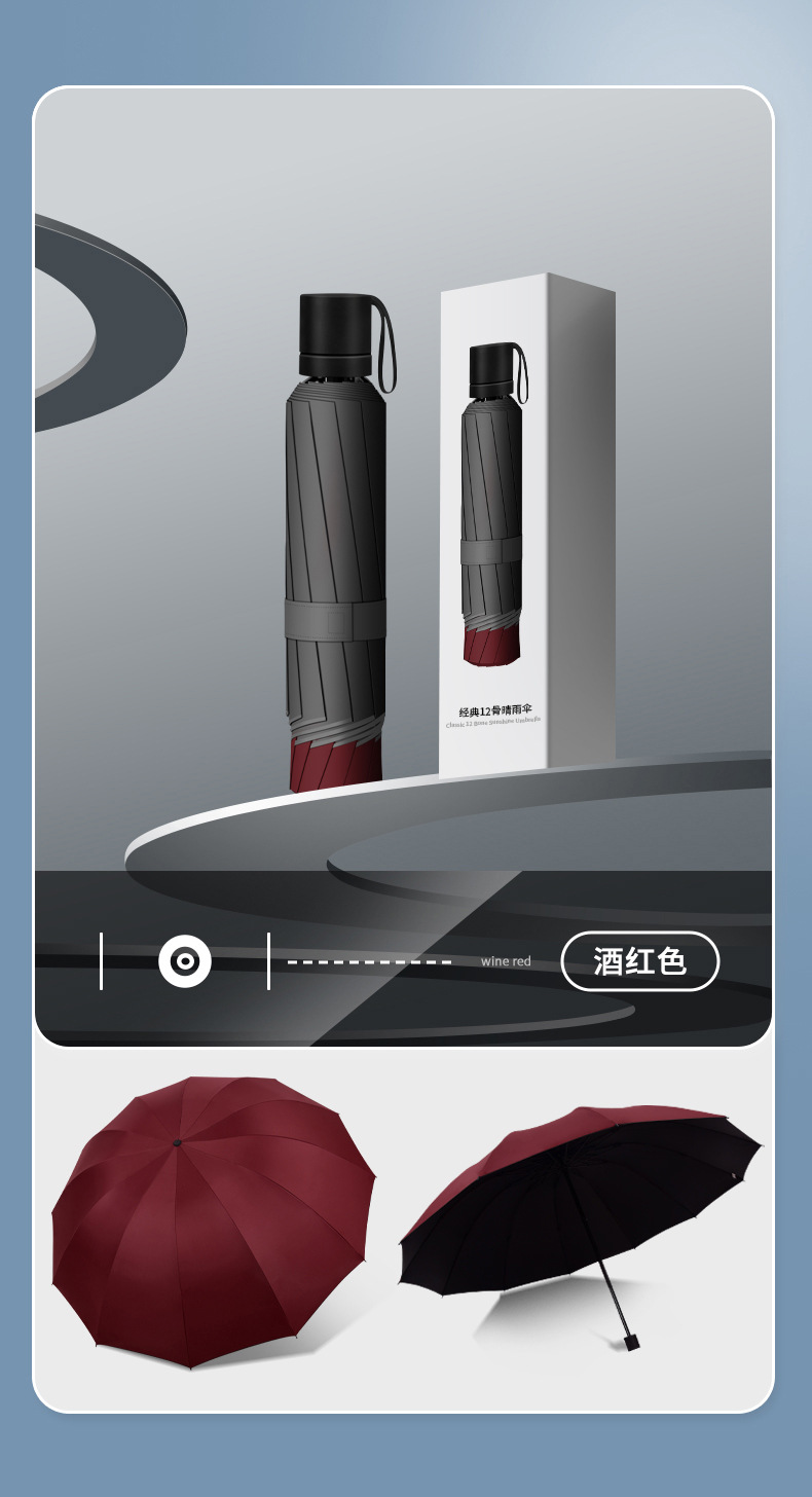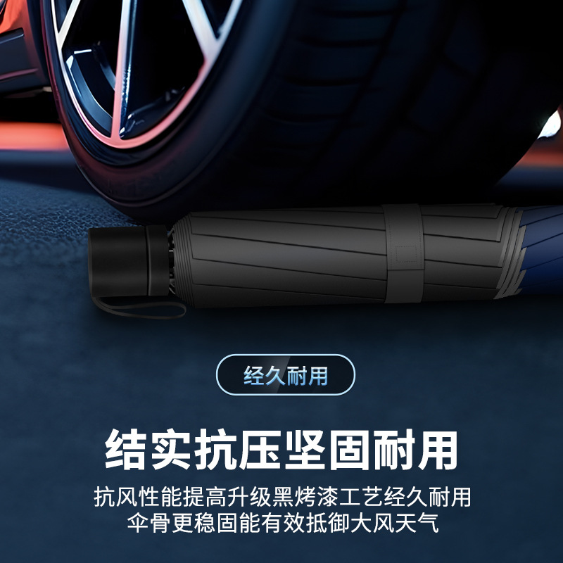 12骨超大折叠男士商务晴雨伞三折黑胶防晒太阳伞批发广告雨伞定制