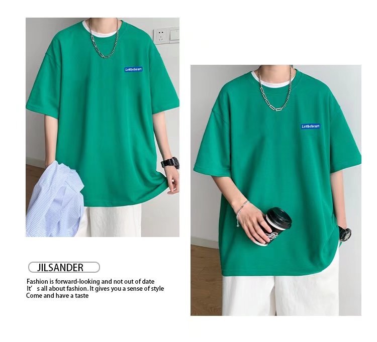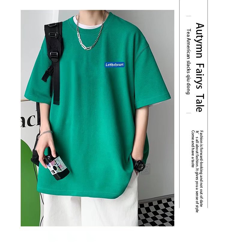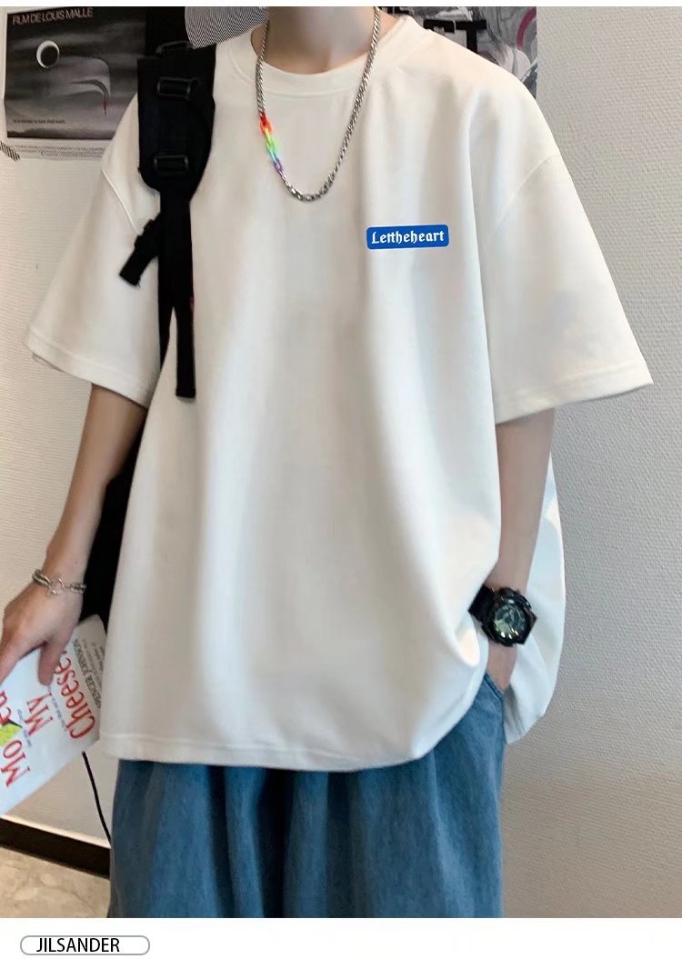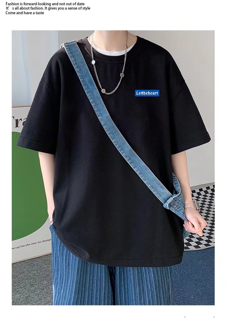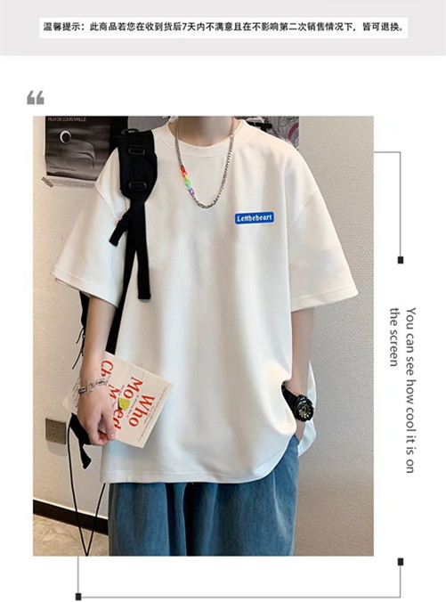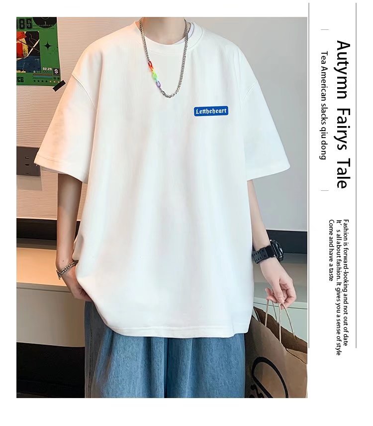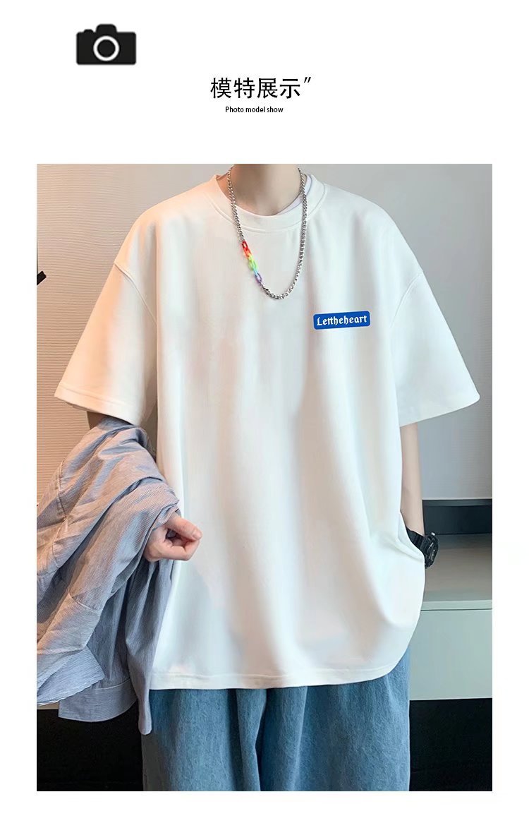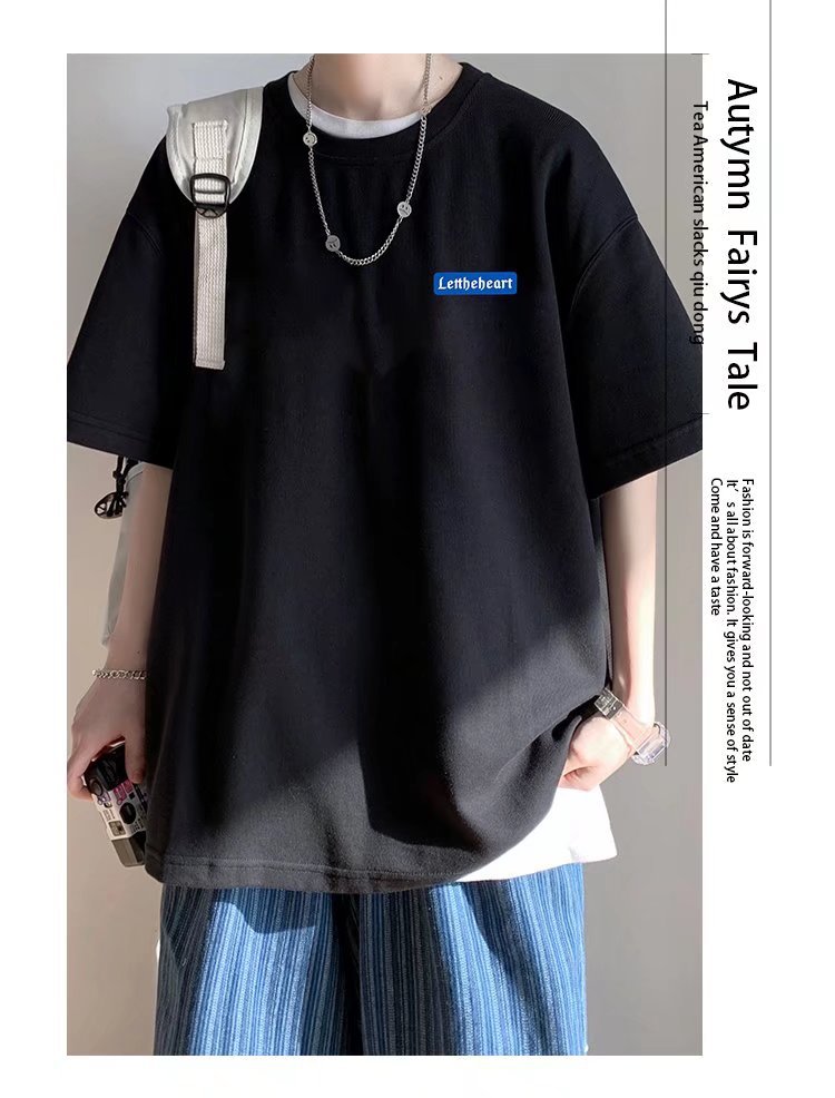 2024夏季短袖T恤港风简约学生宽松半袖体恤韩版潮流休闲上衣百搭