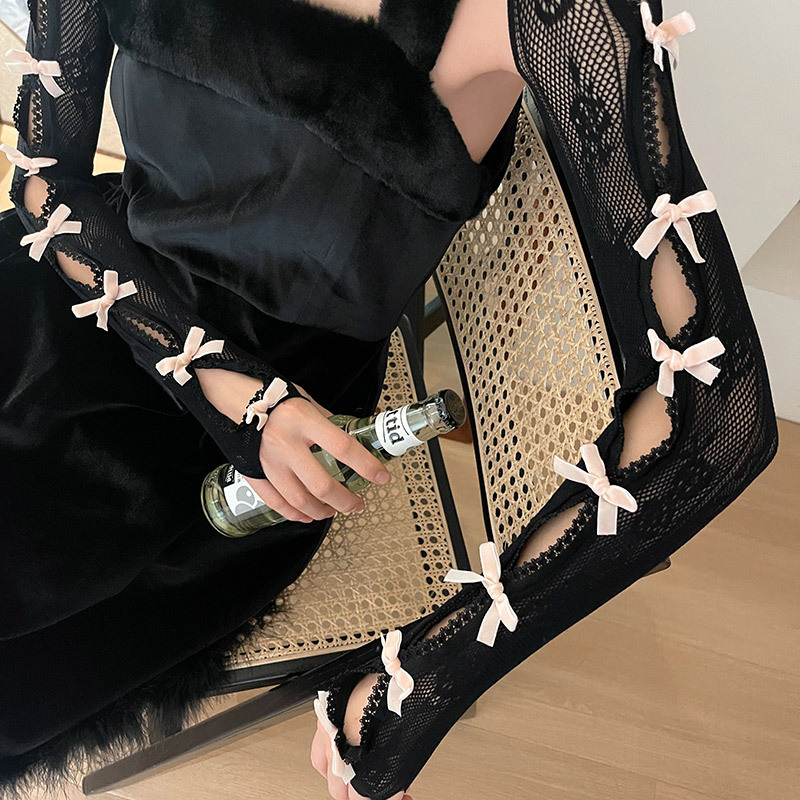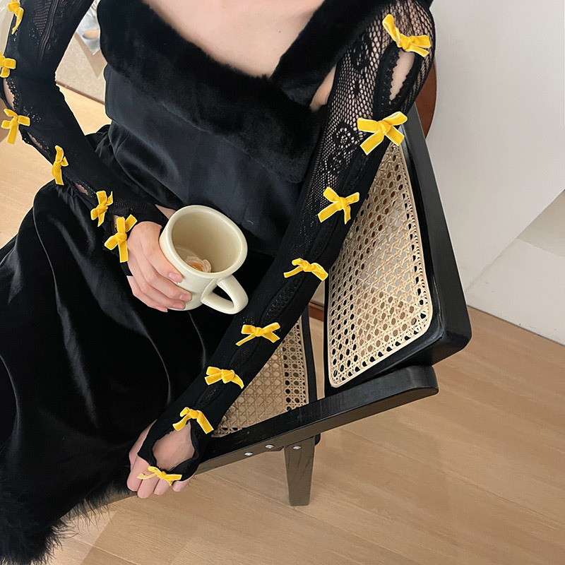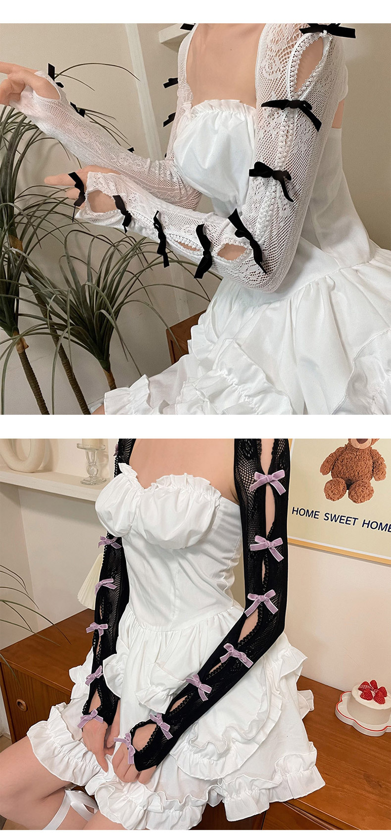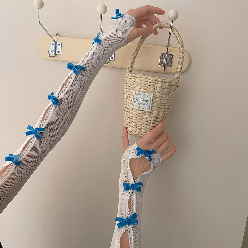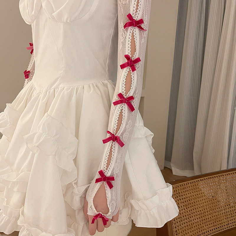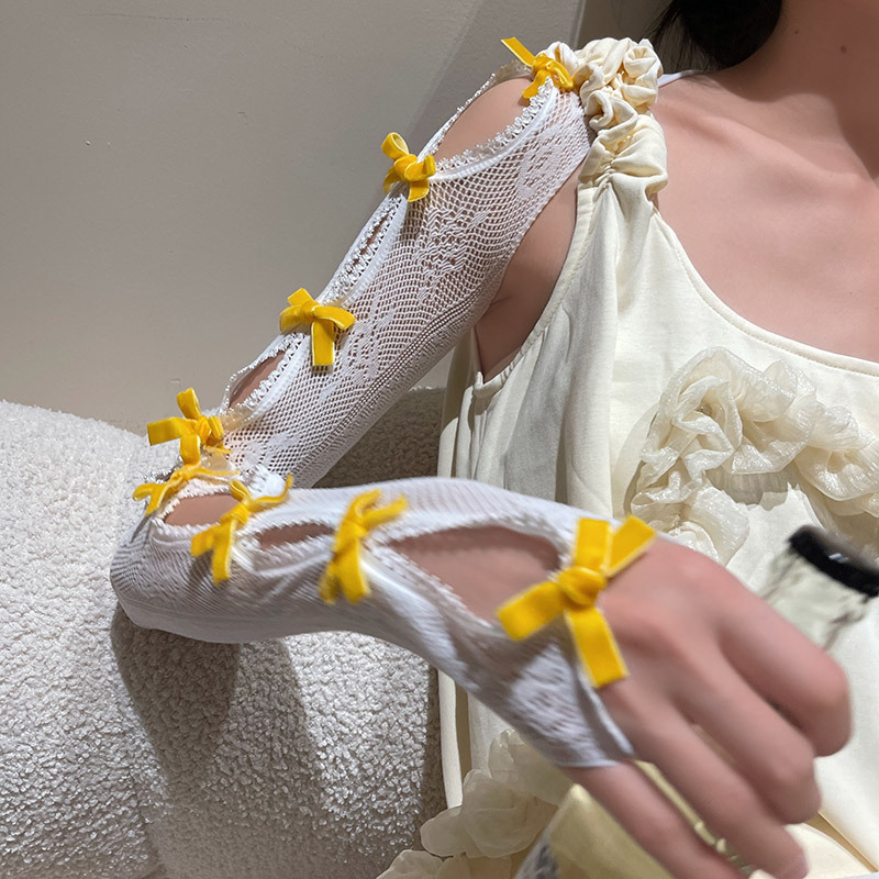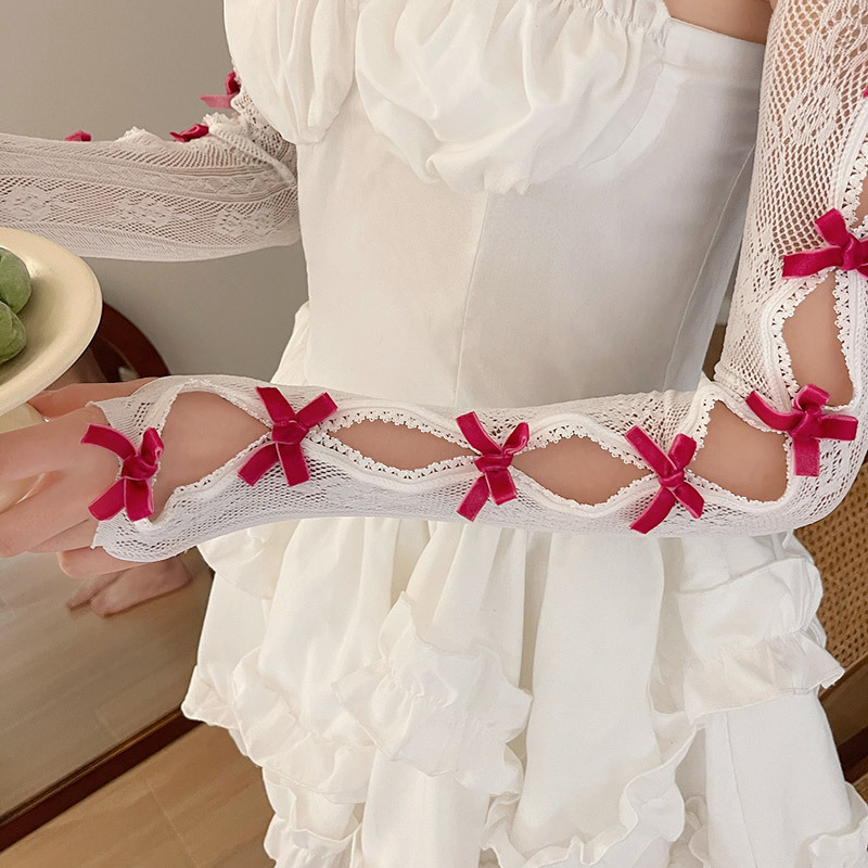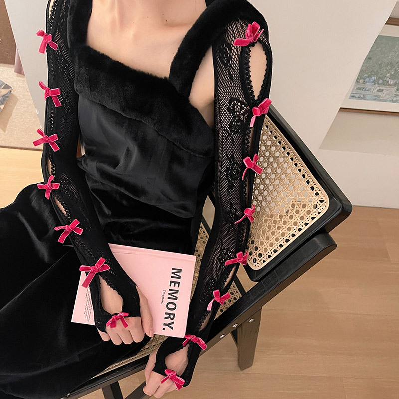 小红书同款植绒蝴蝶结蕾丝披肩手袖y2k千禧年辣妹防晒遮瑕手套女