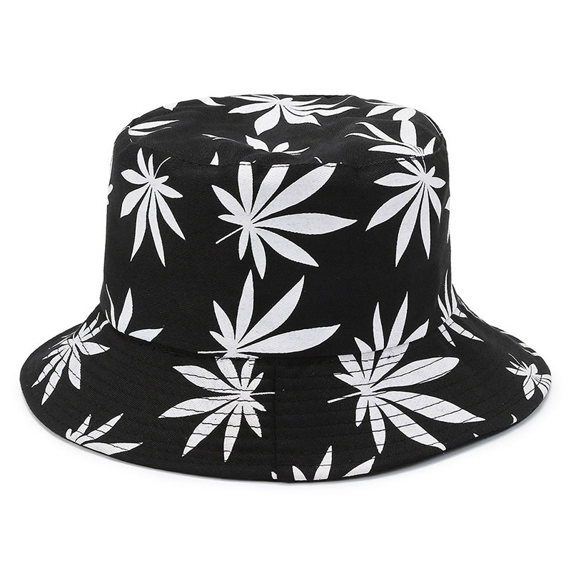 批发新款韩版双面百搭出行遮阳帽男女时尚印花盆帽跨境枫叶渔夫帽