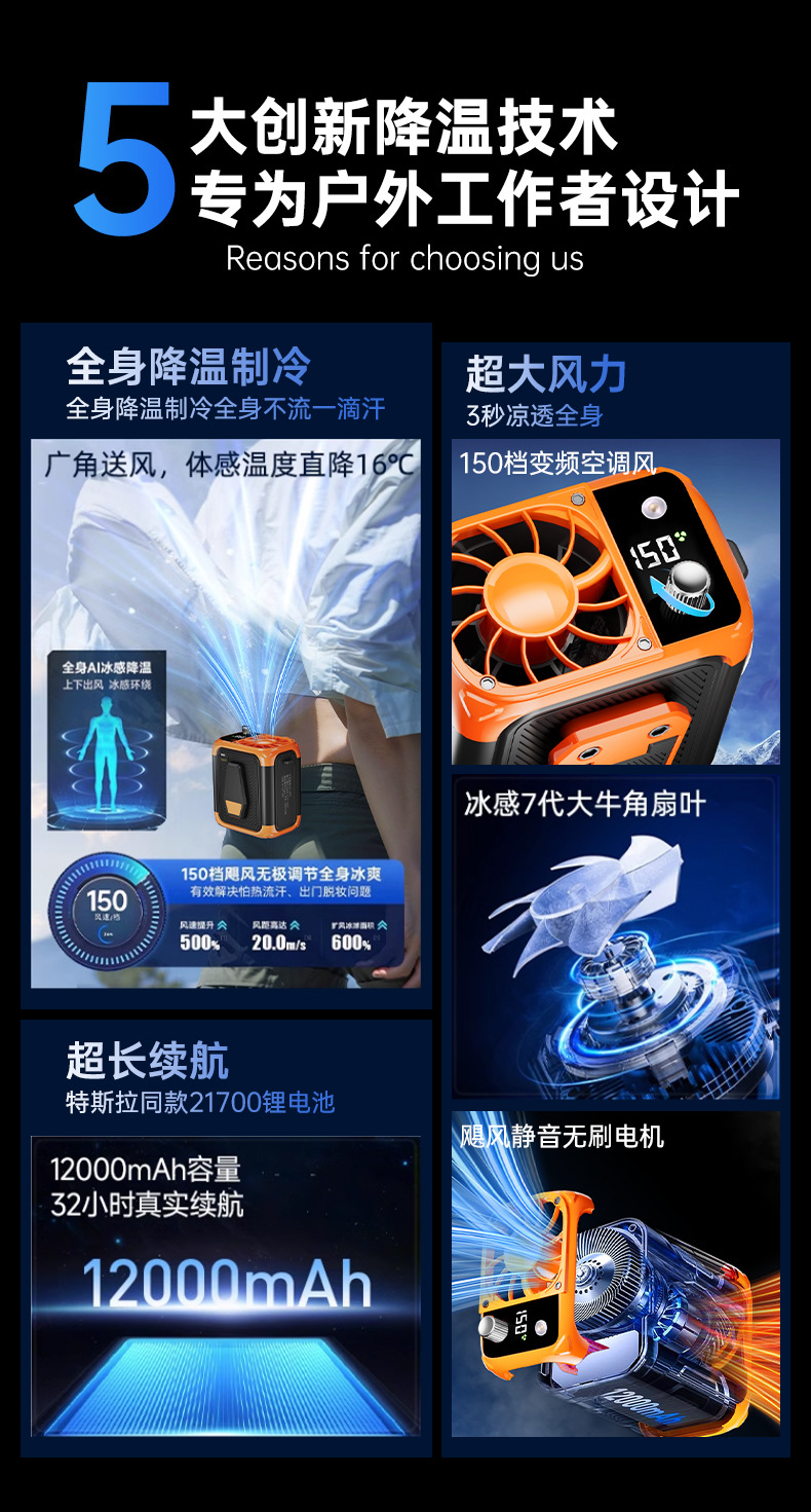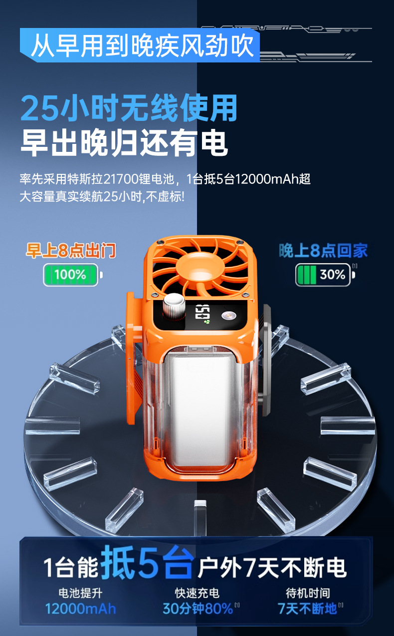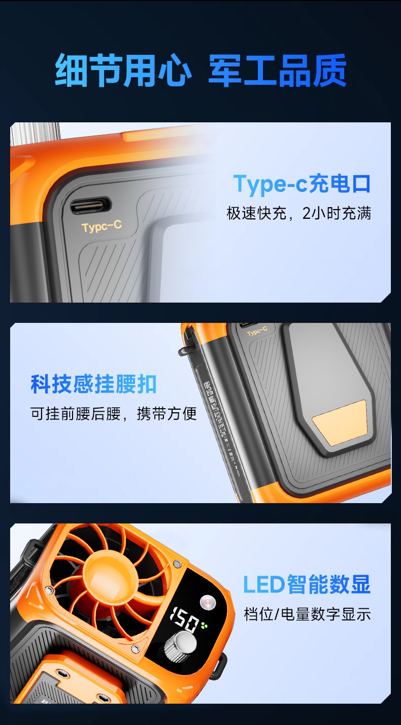 跨境新款 2025新款高速挂腰风扇USB随身便携式夹腰间户外工地充电