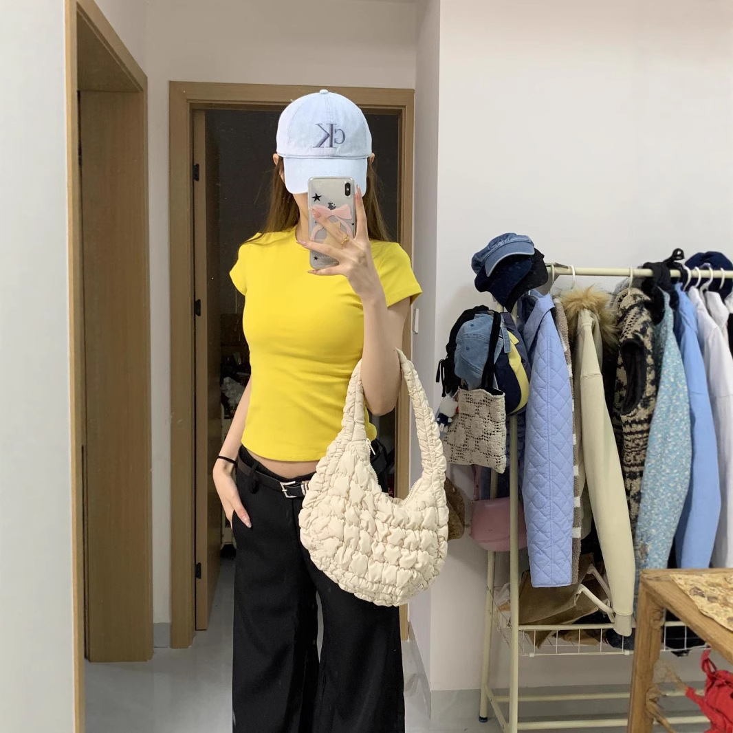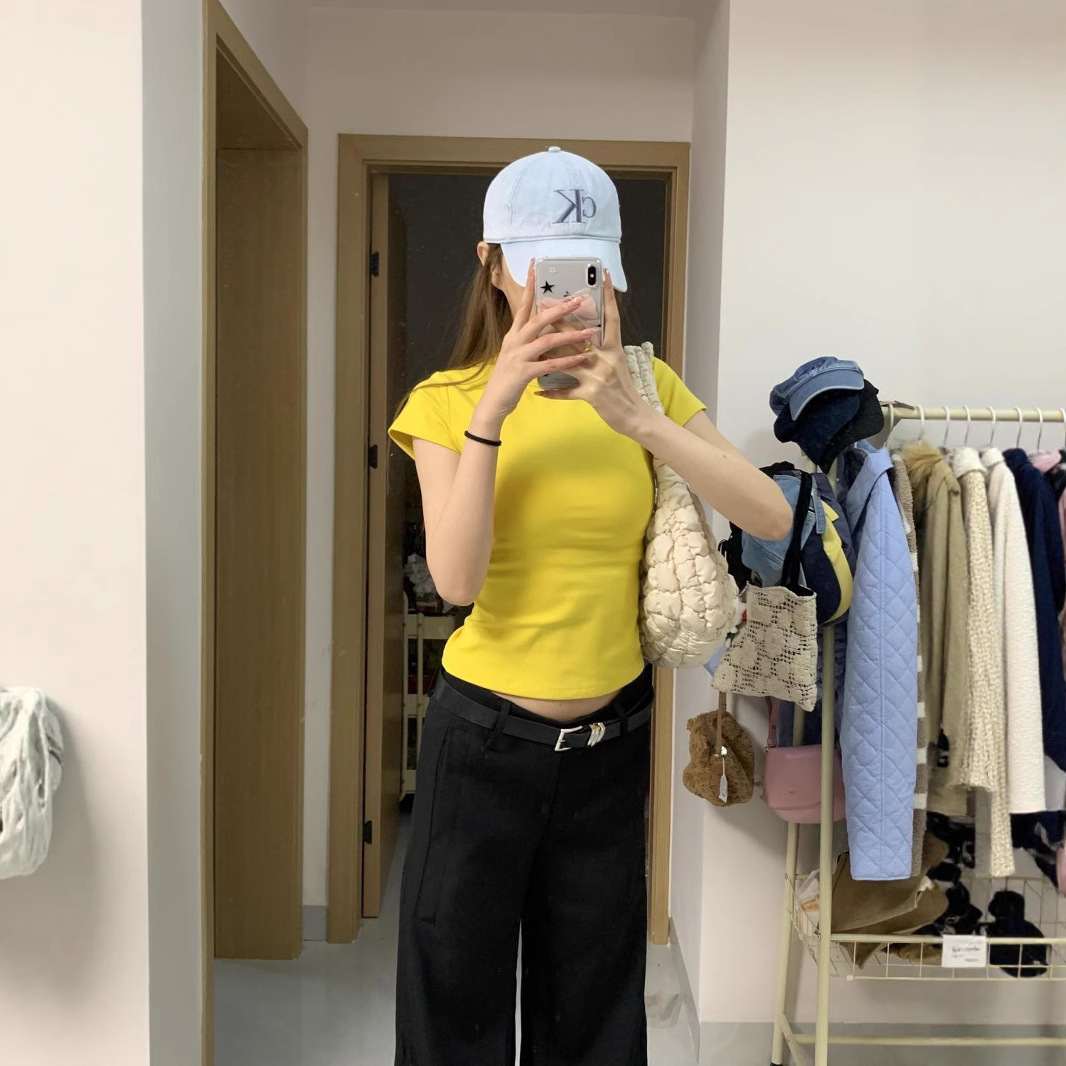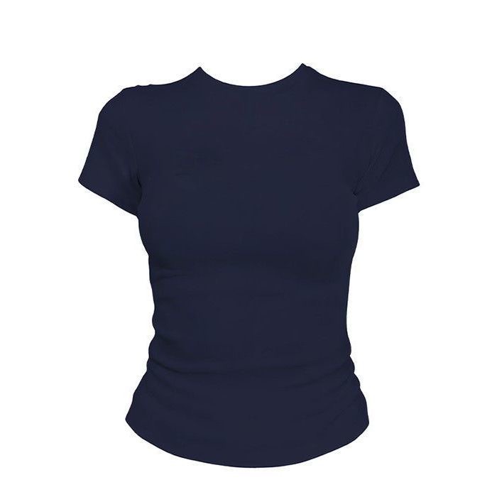 夏季短袖正肩t恤女夏季新款修身紧身圆领纯色内搭显瘦体恤上衣服