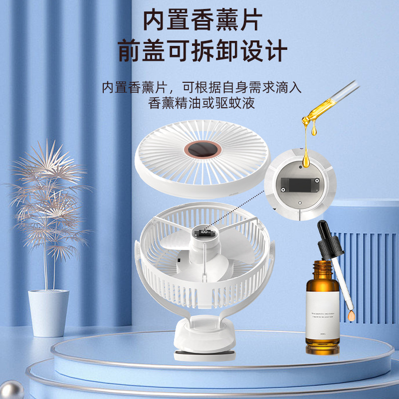 USB充电8寸夹子风扇大容量大风力带七彩氛围灯壳料越南泰国东南亚