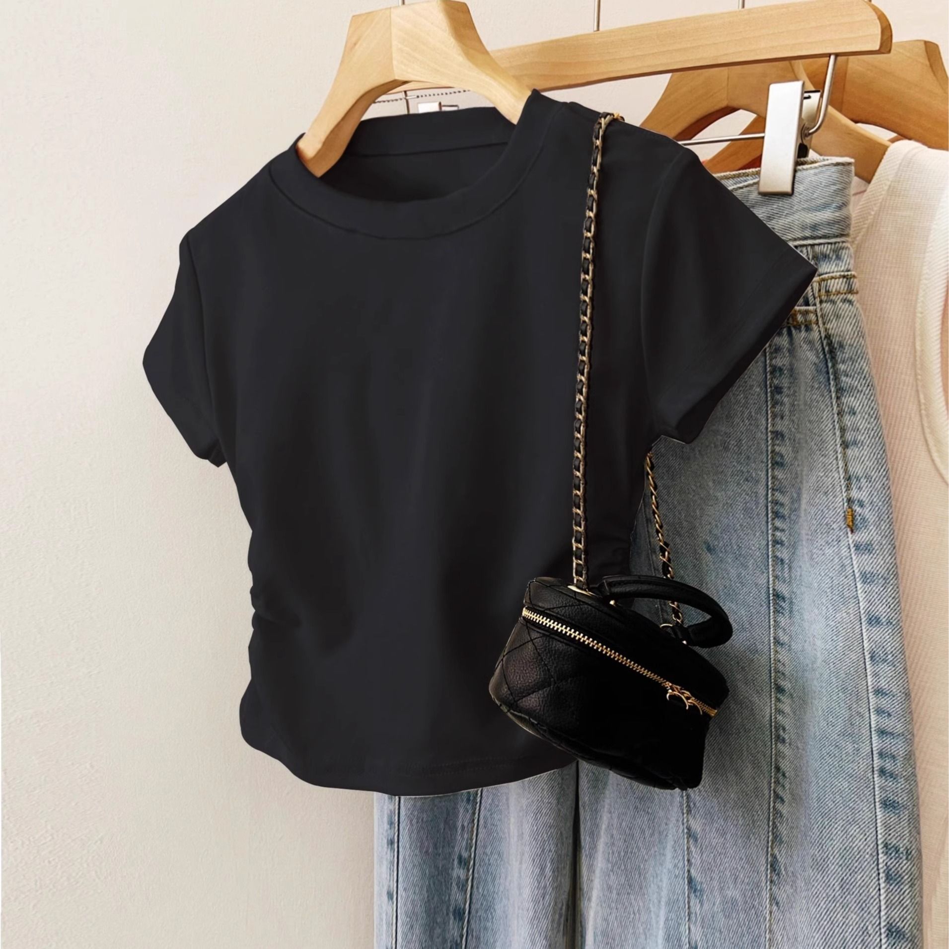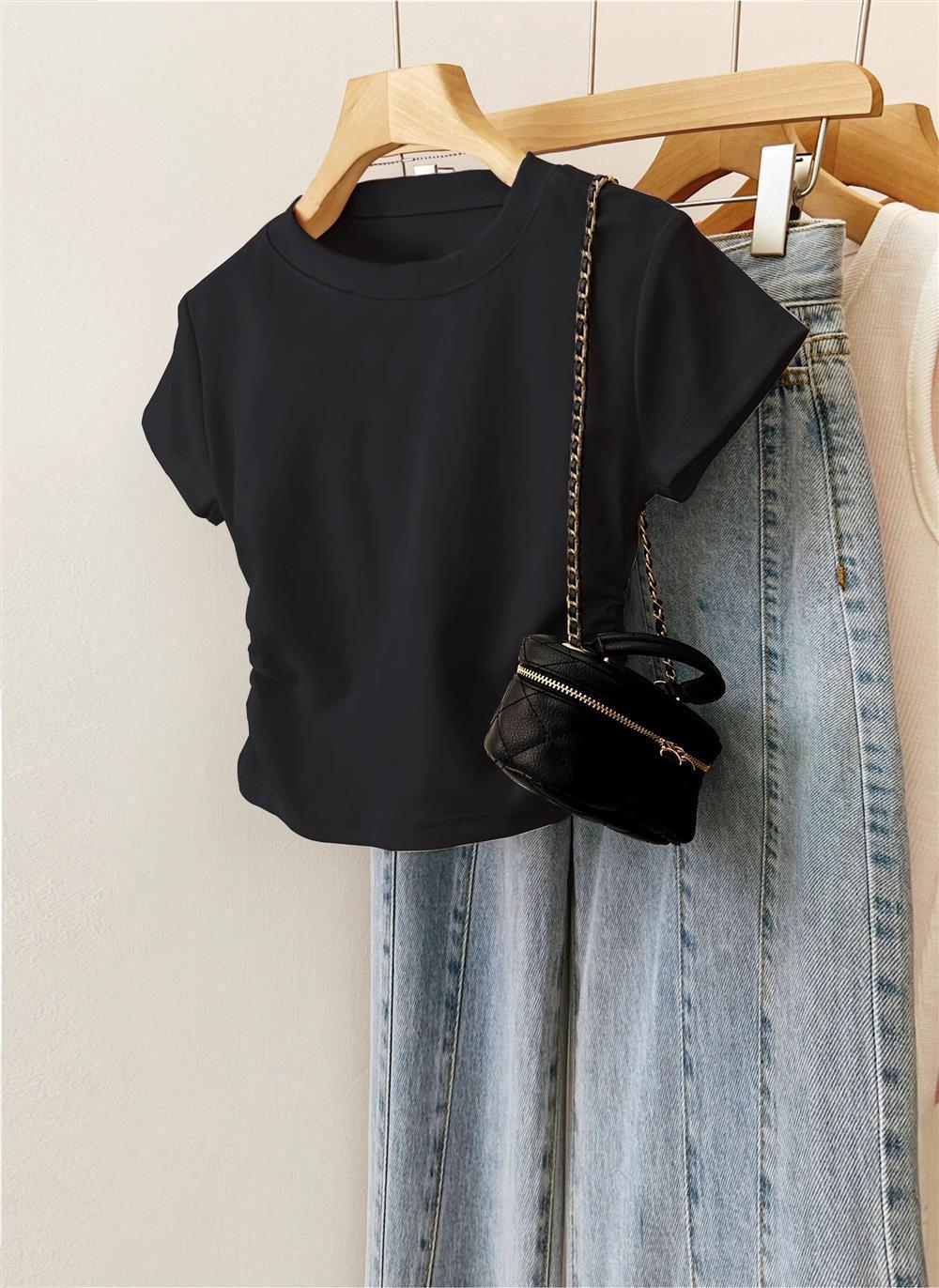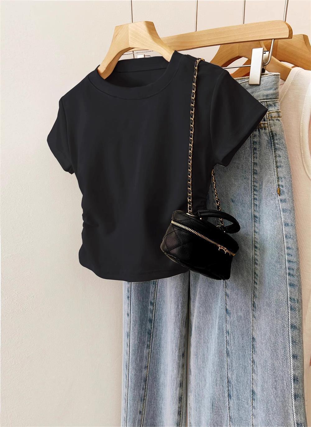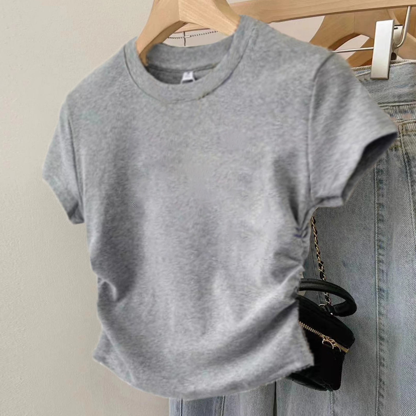 圆领正肩短袖T恤女夏季新款简约印花设计修身显瘦短款上衣ins