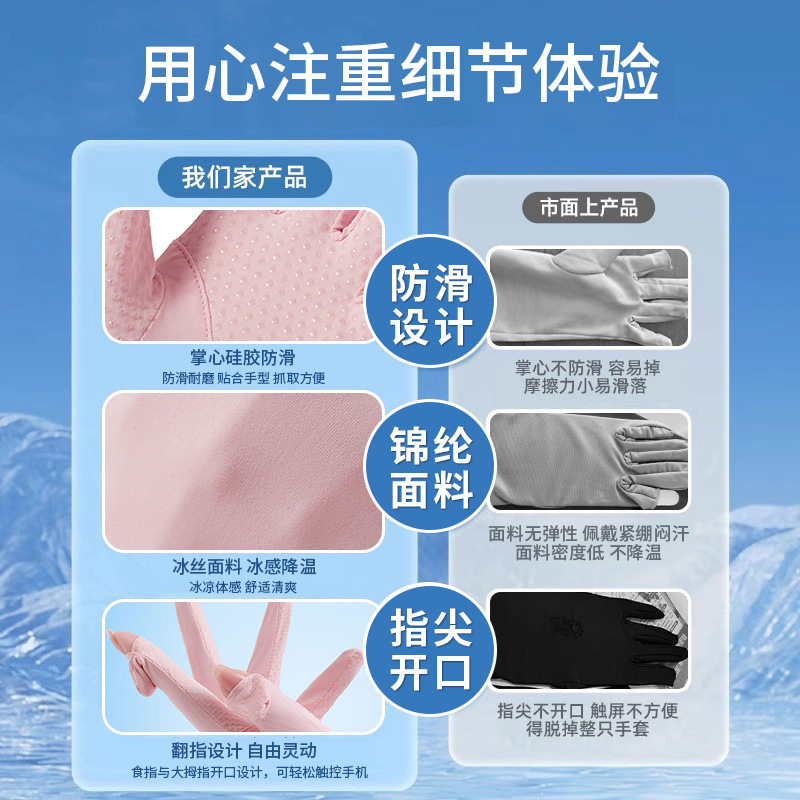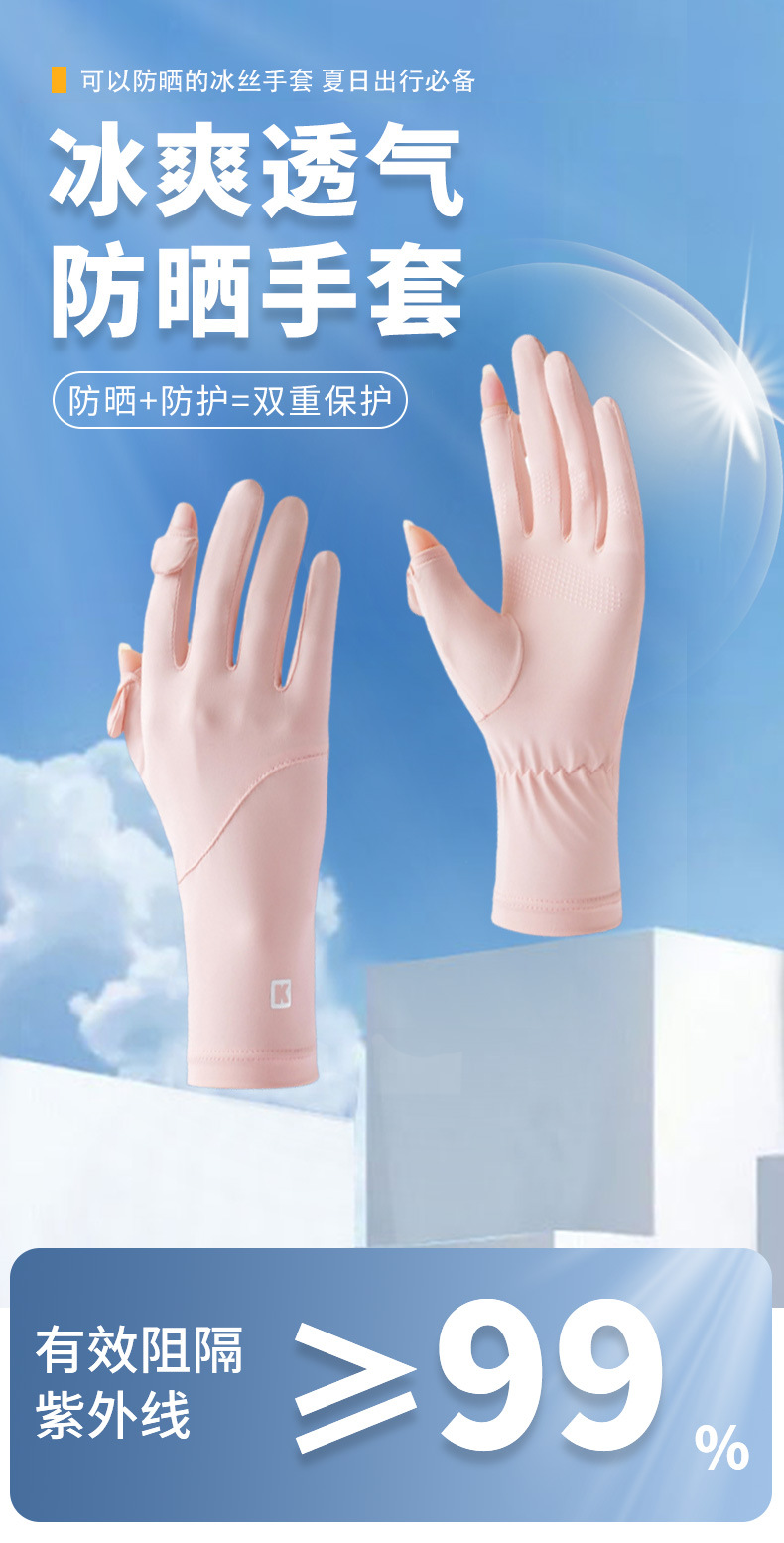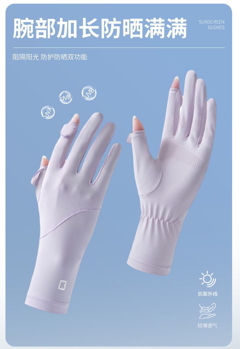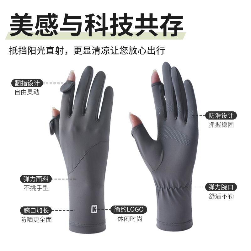 防晒手套女防紫外线薄款户外触屏夏季开车骑行加长款冰丝手套批发