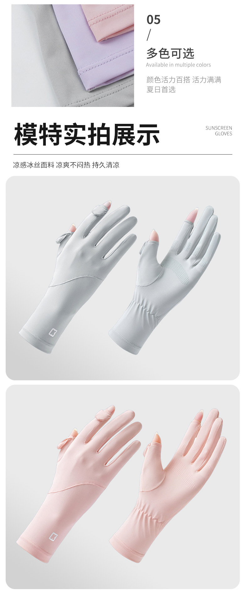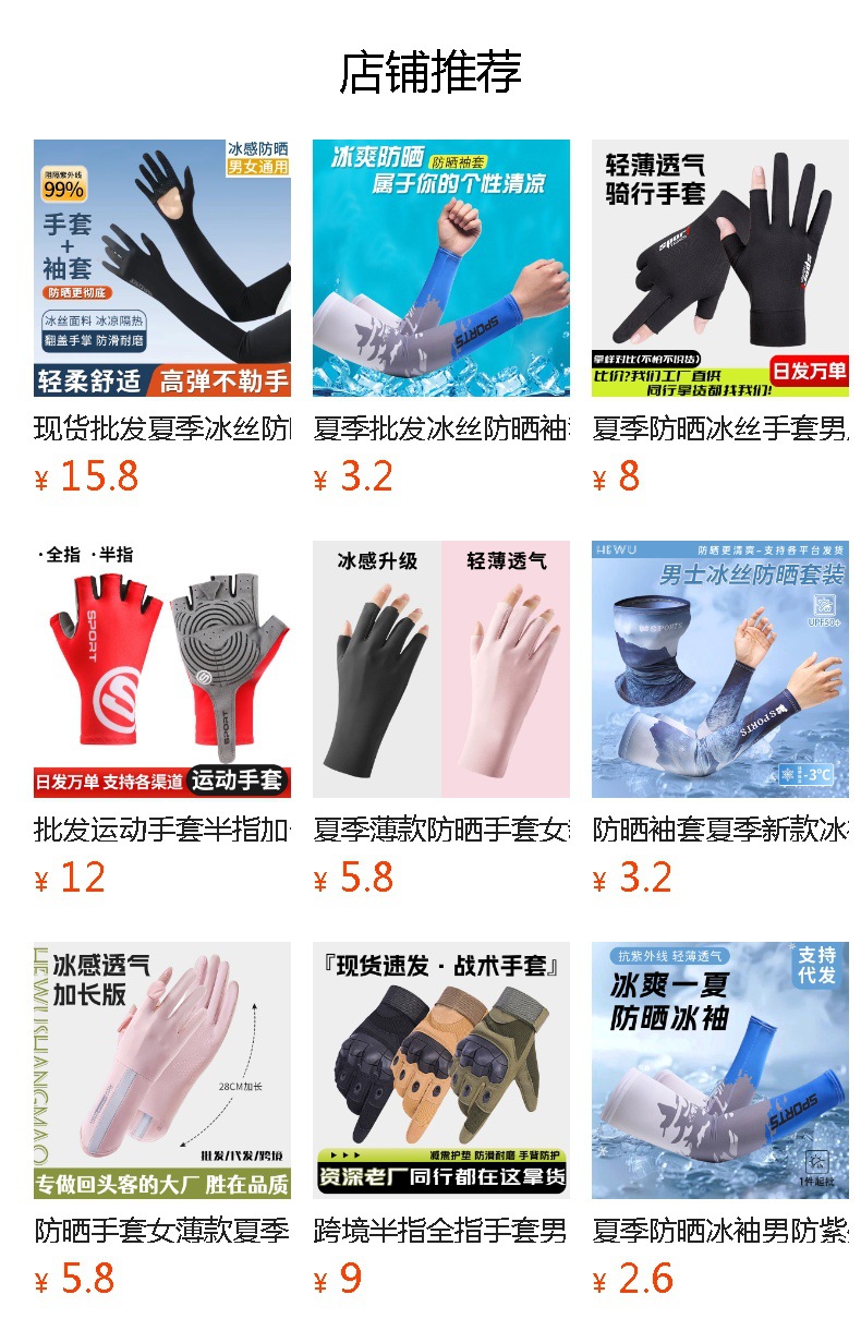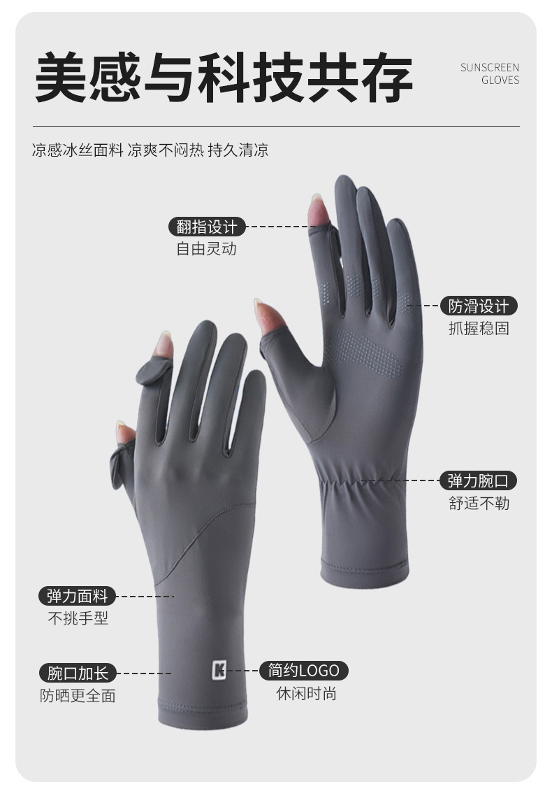 防晒手套女防紫外线薄款户外触屏夏季开车骑行加长款冰丝手套批发