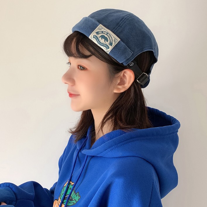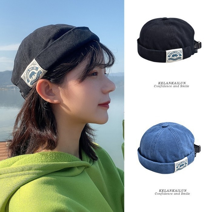 新款北极熊日系复古贴布瓜皮帽水手雅痞地主帽潮春夏百搭女帽
