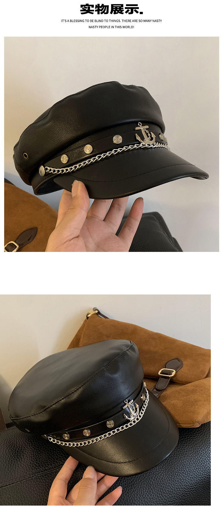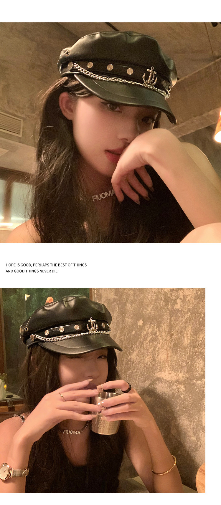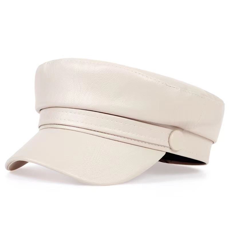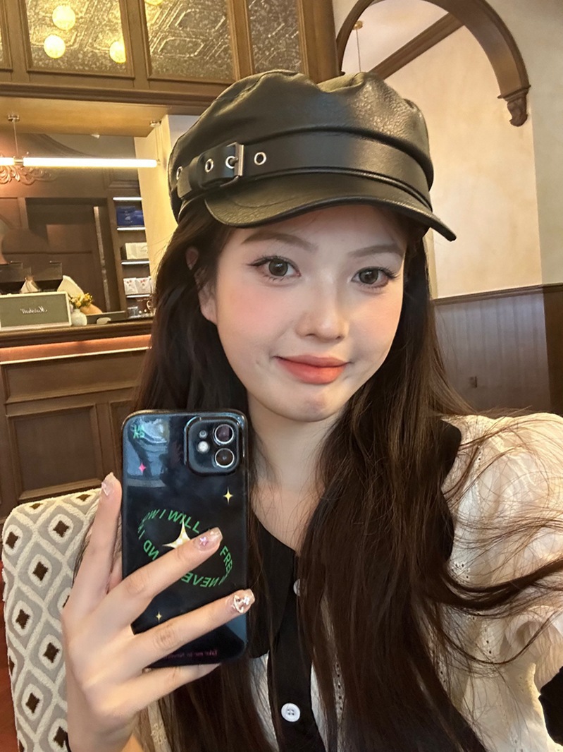 pu皮黑色八角帽复古秋冬鸭舌帽子女韩版休闲百搭日系报童帽潮软顶