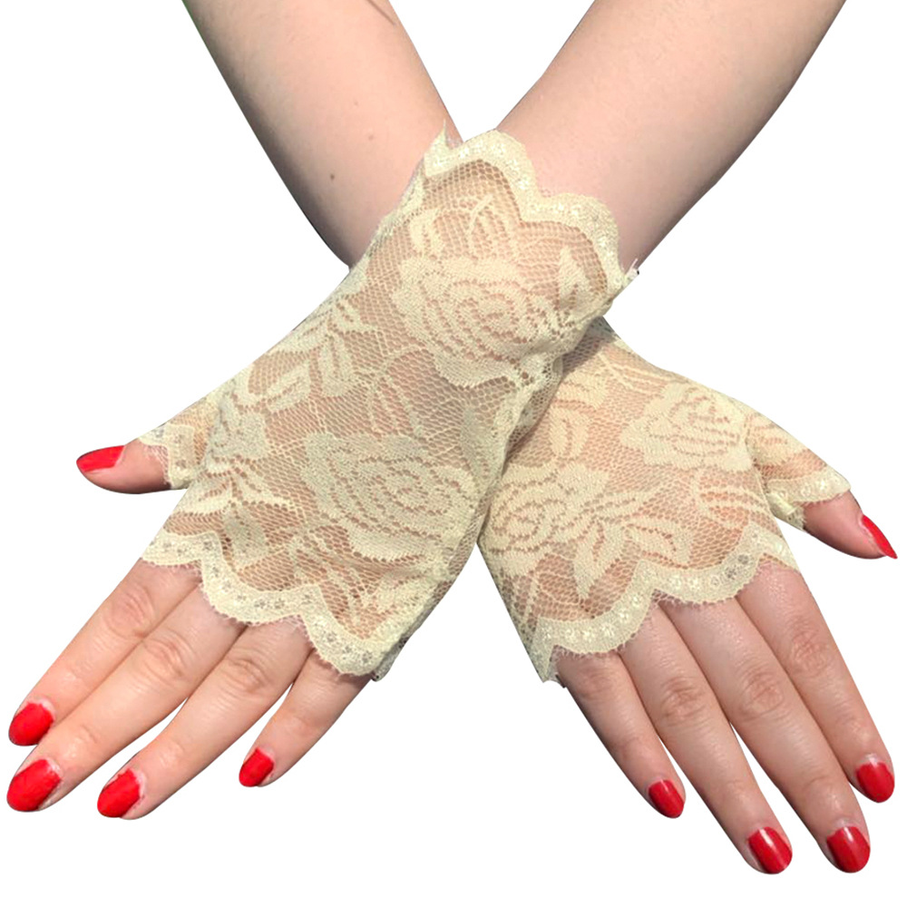 夏季女士开车防晒蕾丝手套 短款 半指遮疤痕手套 蕾丝无指手套