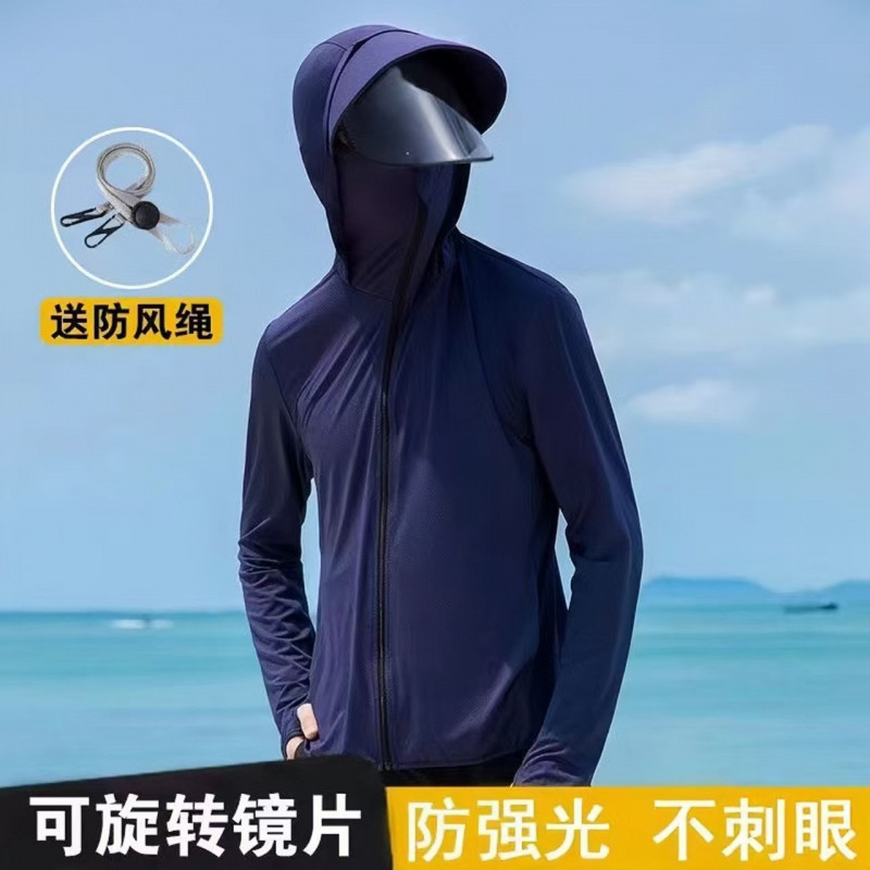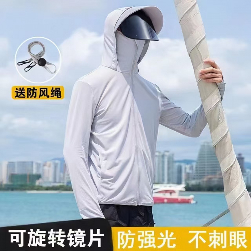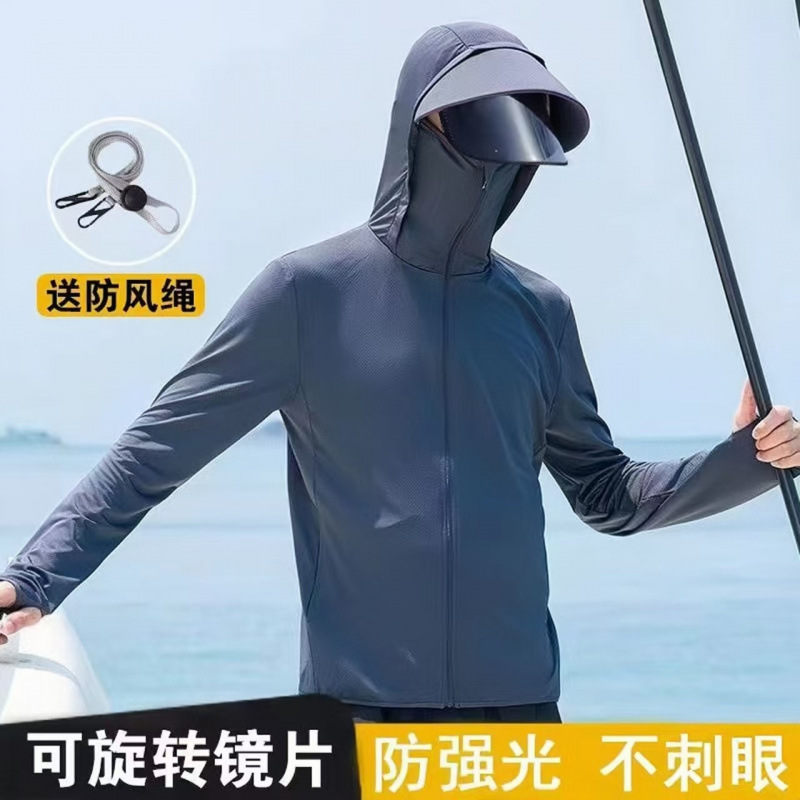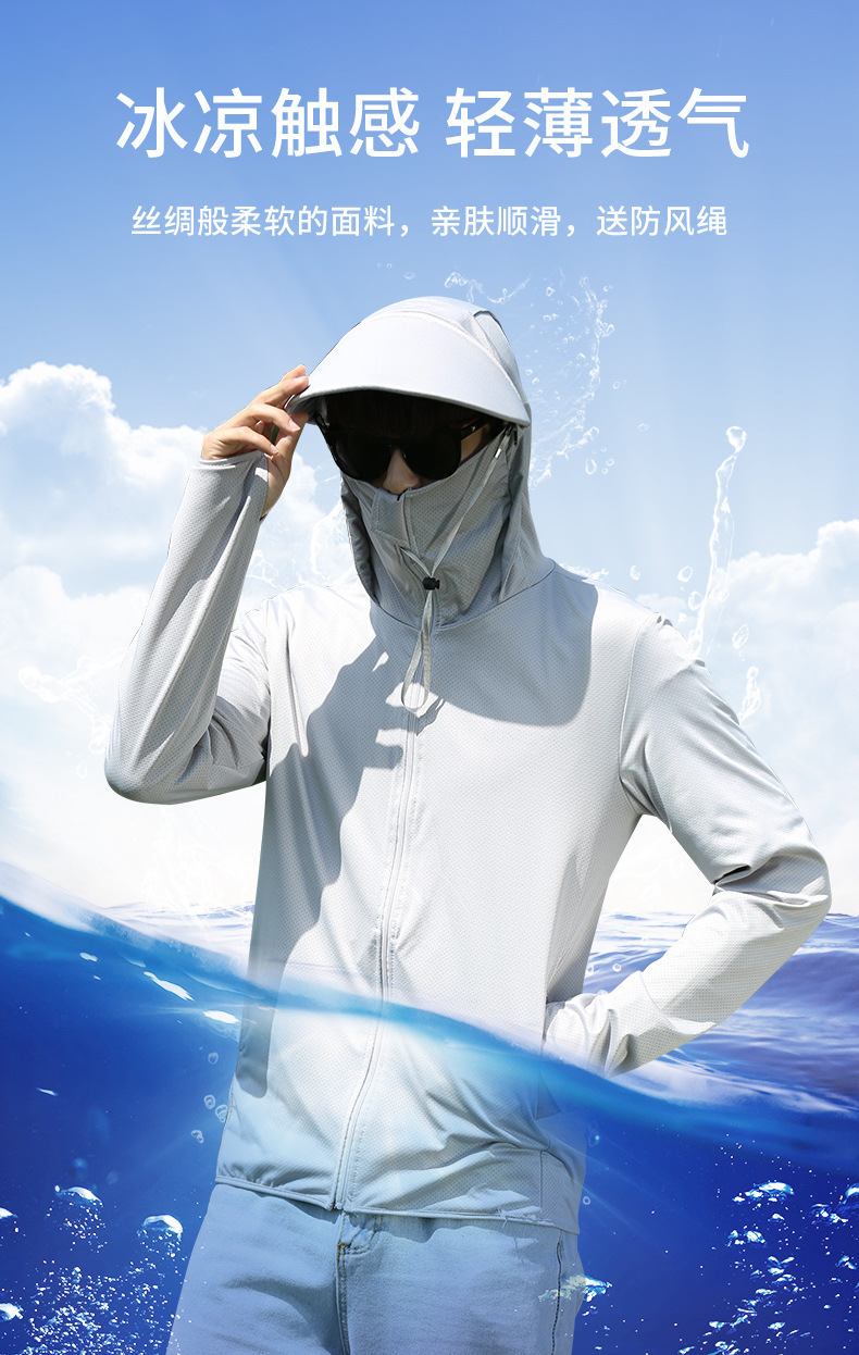 2025新款防晒衣男青少年冰丝凉感夏季薄款大码防紫外线透气钓鱼服