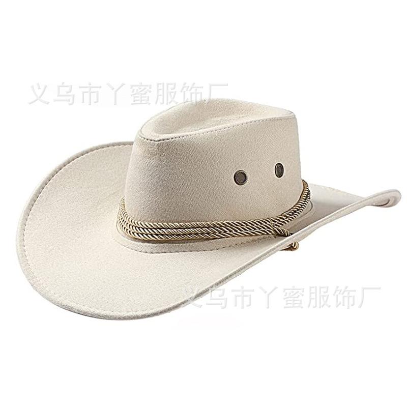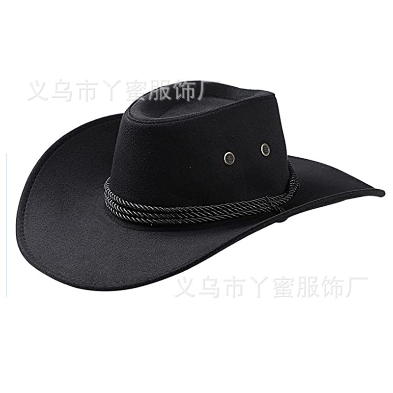 西部麂皮绒带绳牛仔帽 黑色斗牛士大帽檐帽 麂皮绒户外沙滩遮阳帽