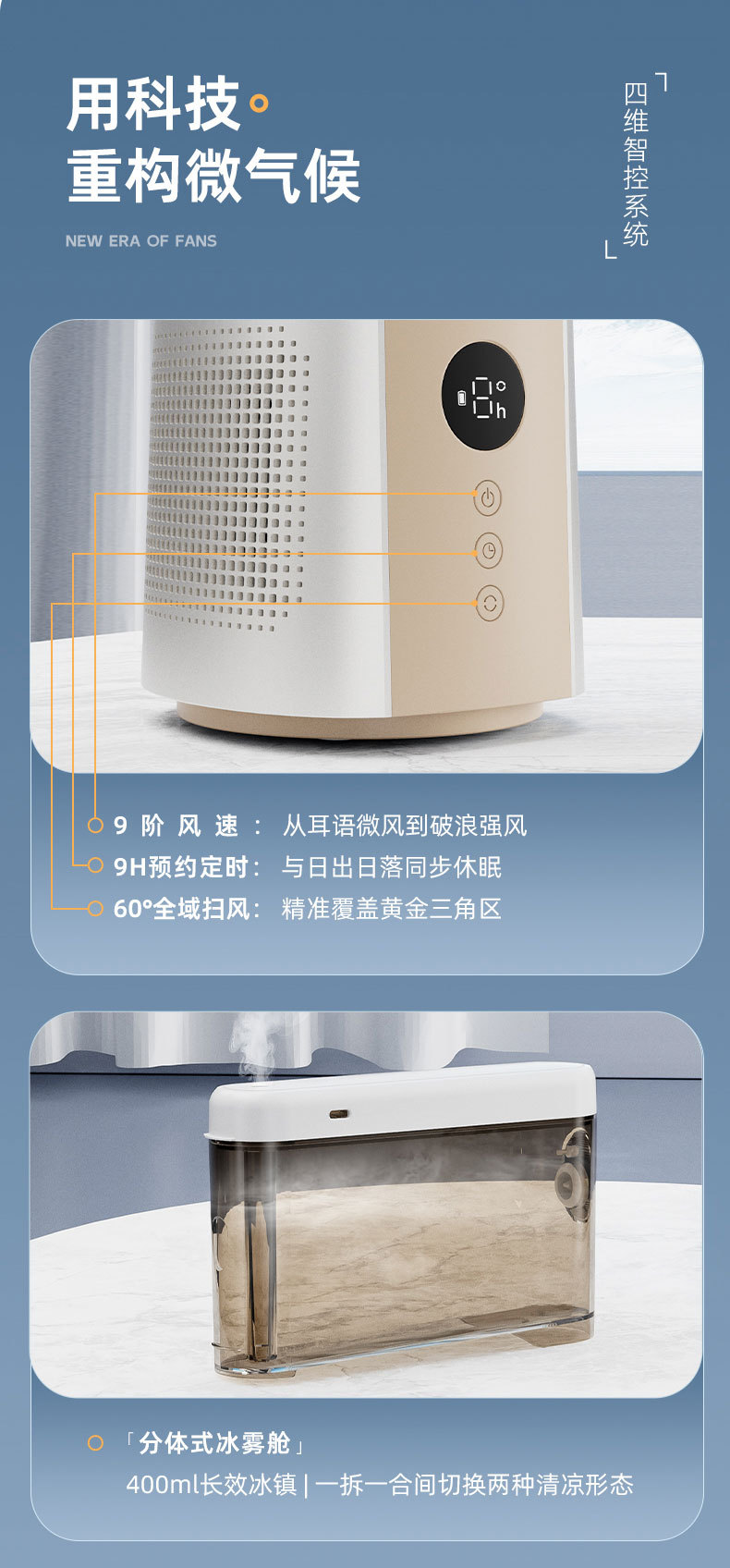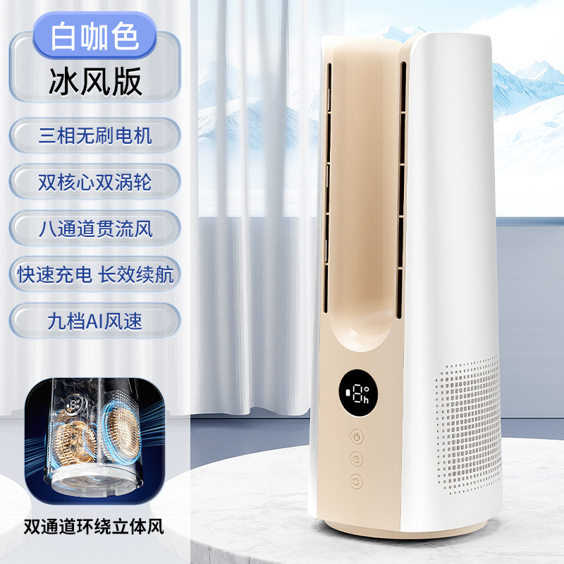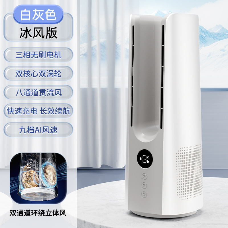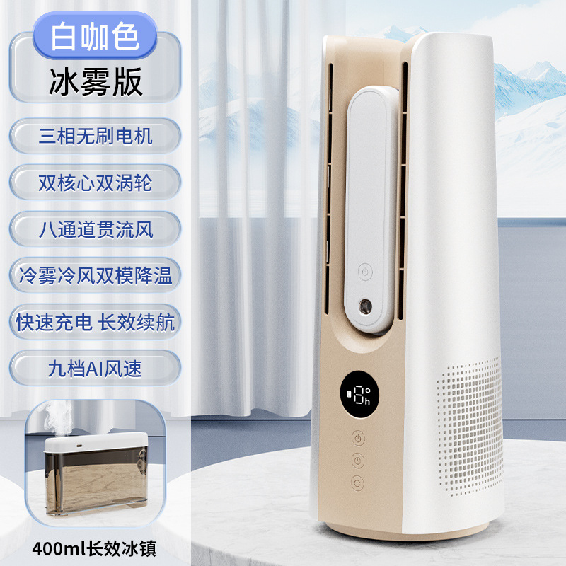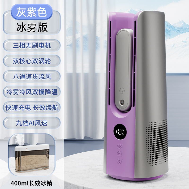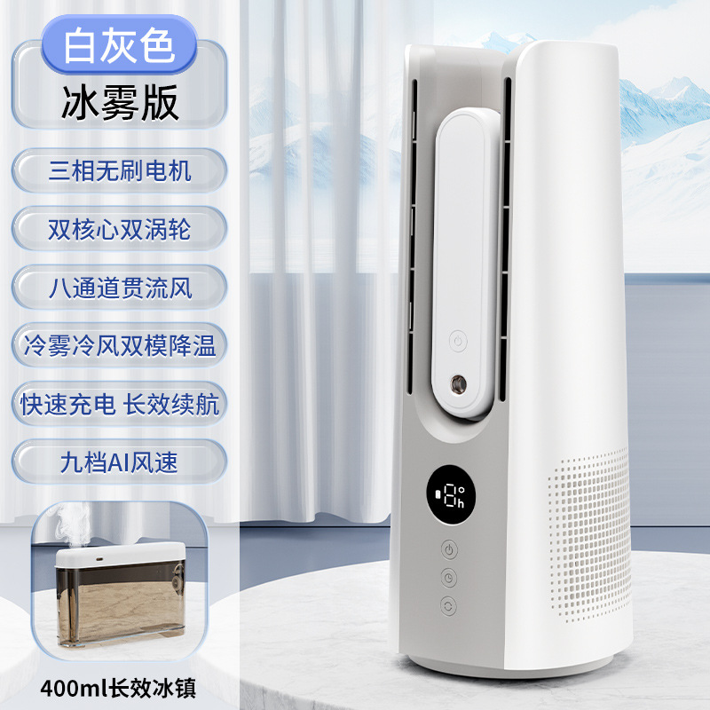 双涡轮喷雾无叶风扇加湿创意迷你大风冷风小双塔双核usb加湿喷雾