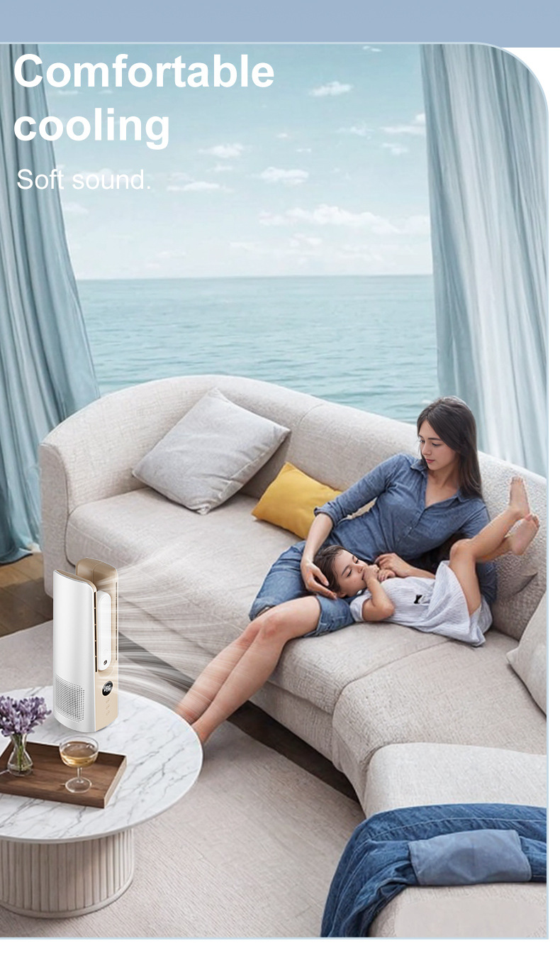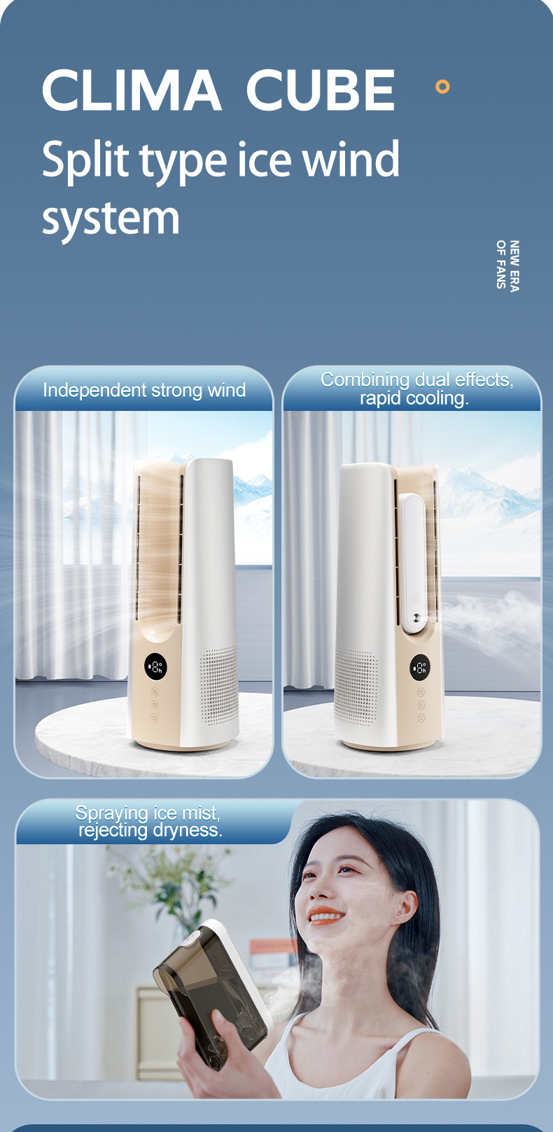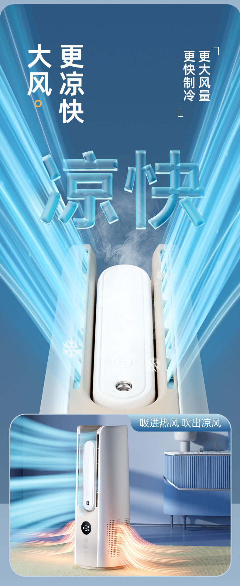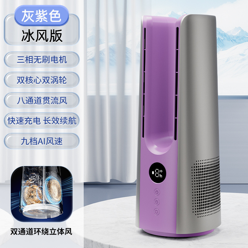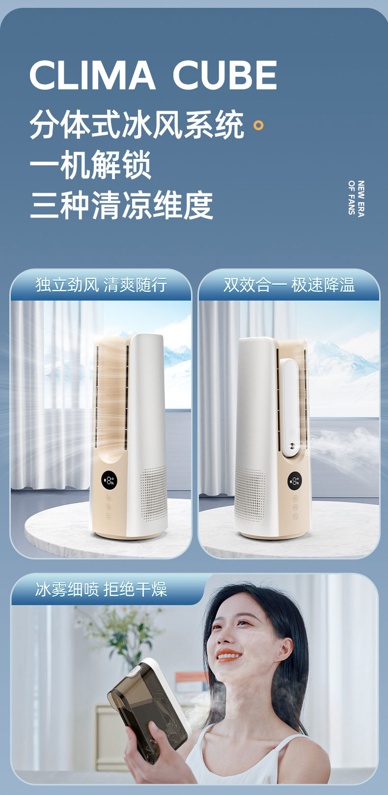 双涡轮喷雾无叶风扇加湿创意迷你大风冷风小双塔双核usb加湿喷雾