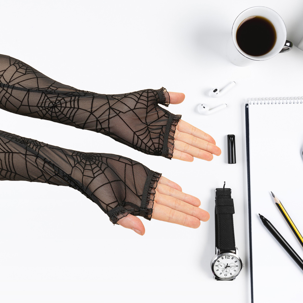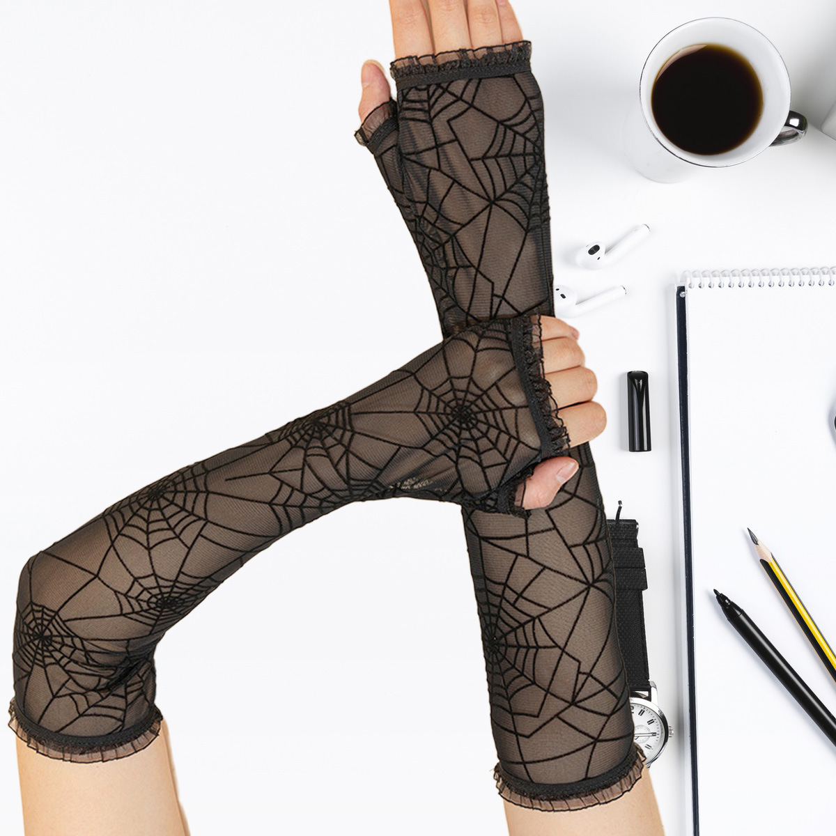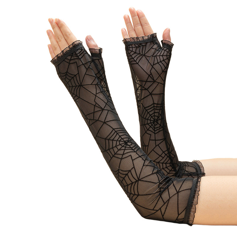跨境万圣节装饰蜘蛛网手套半指网纱手套cosplay派对舞会表演手套