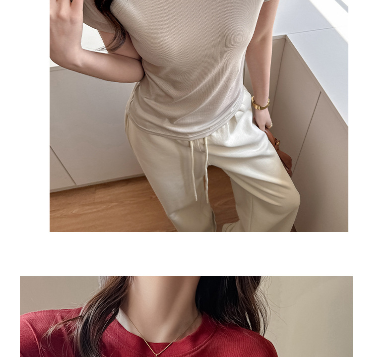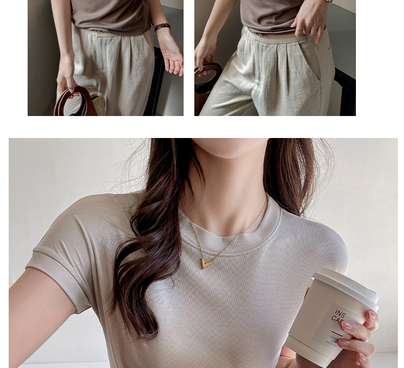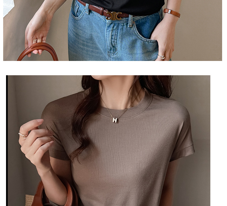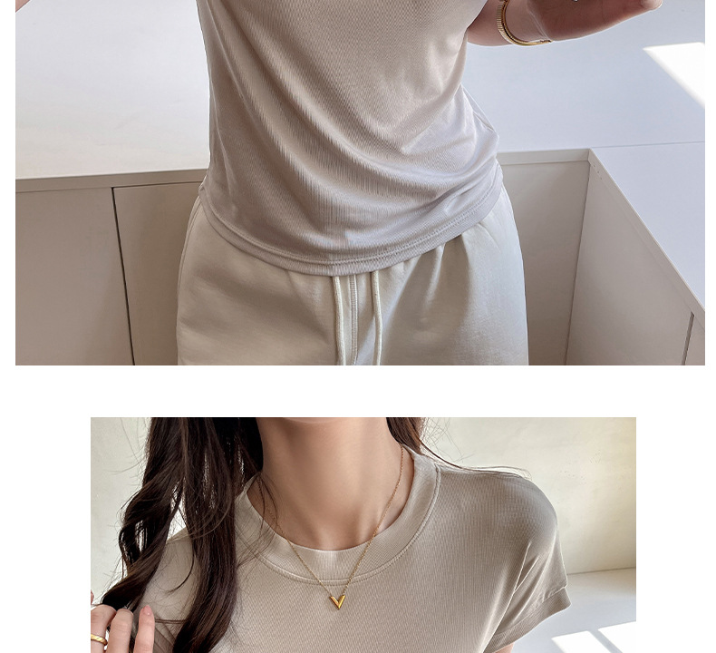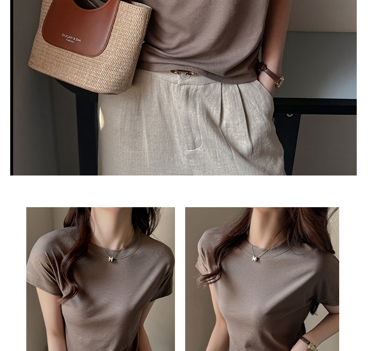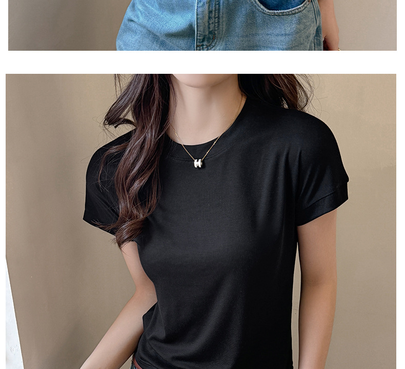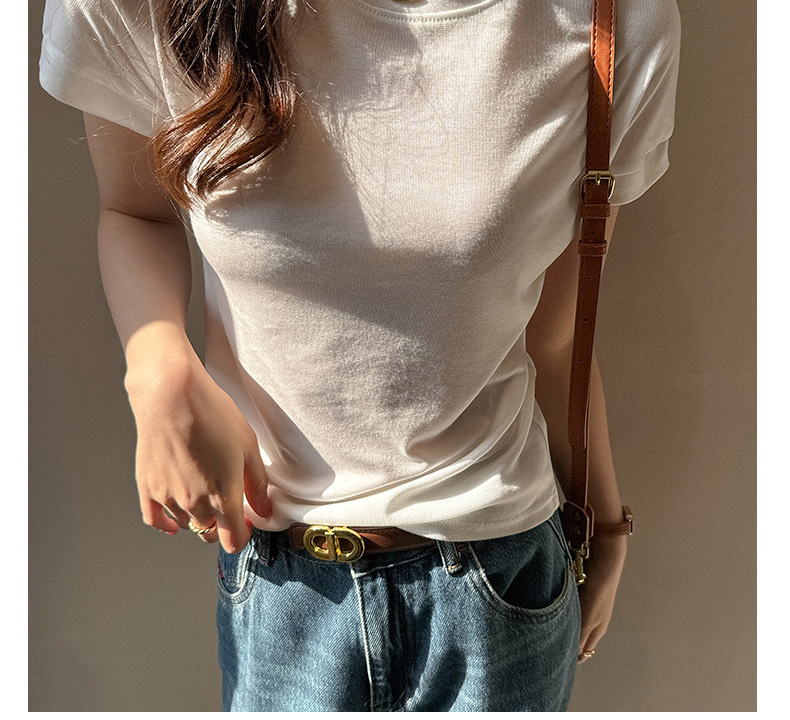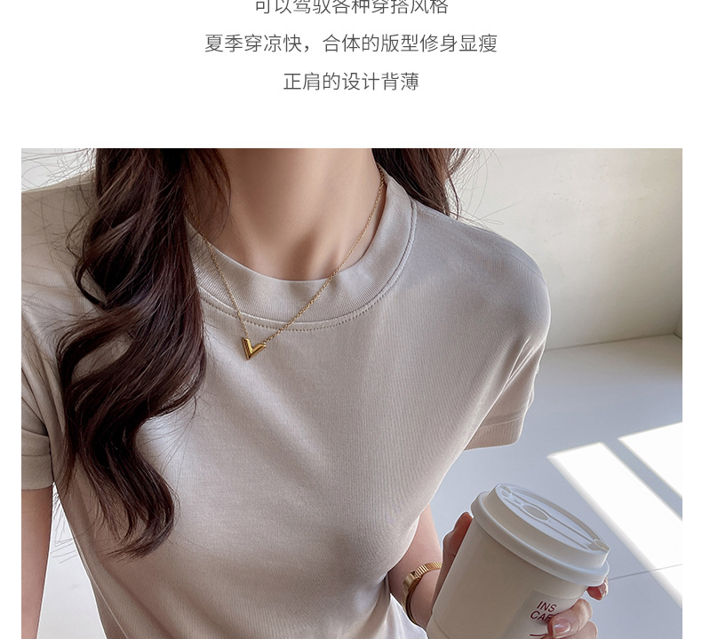 天丝莱赛尔夏季小圆领正肩短袖t恤女高级设计感连袖修身百搭上衣