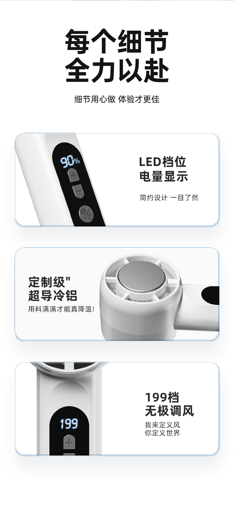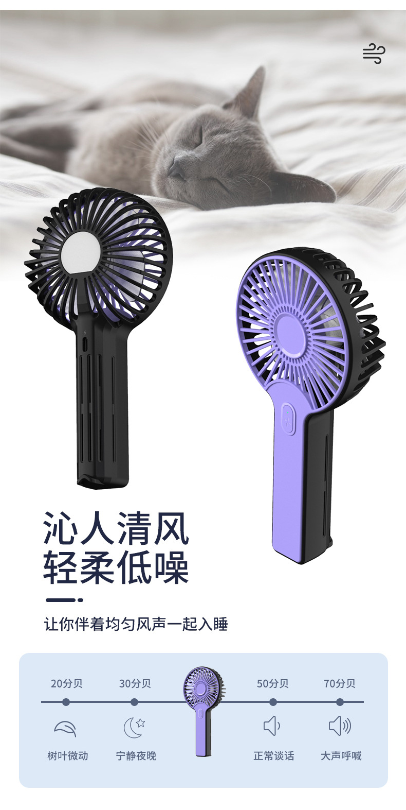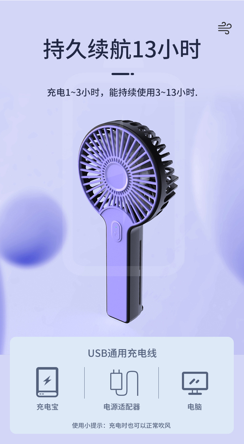 手持折叠小风扇户外便携式学生办公室超长续航制冷负离子小风扇