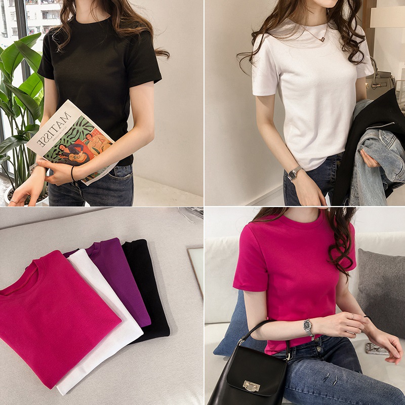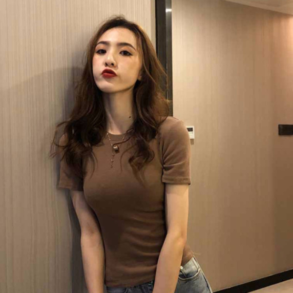 2025夏季新款纯色学生修身上衣时尚打底短袖韩版T恤宽松地摊女装