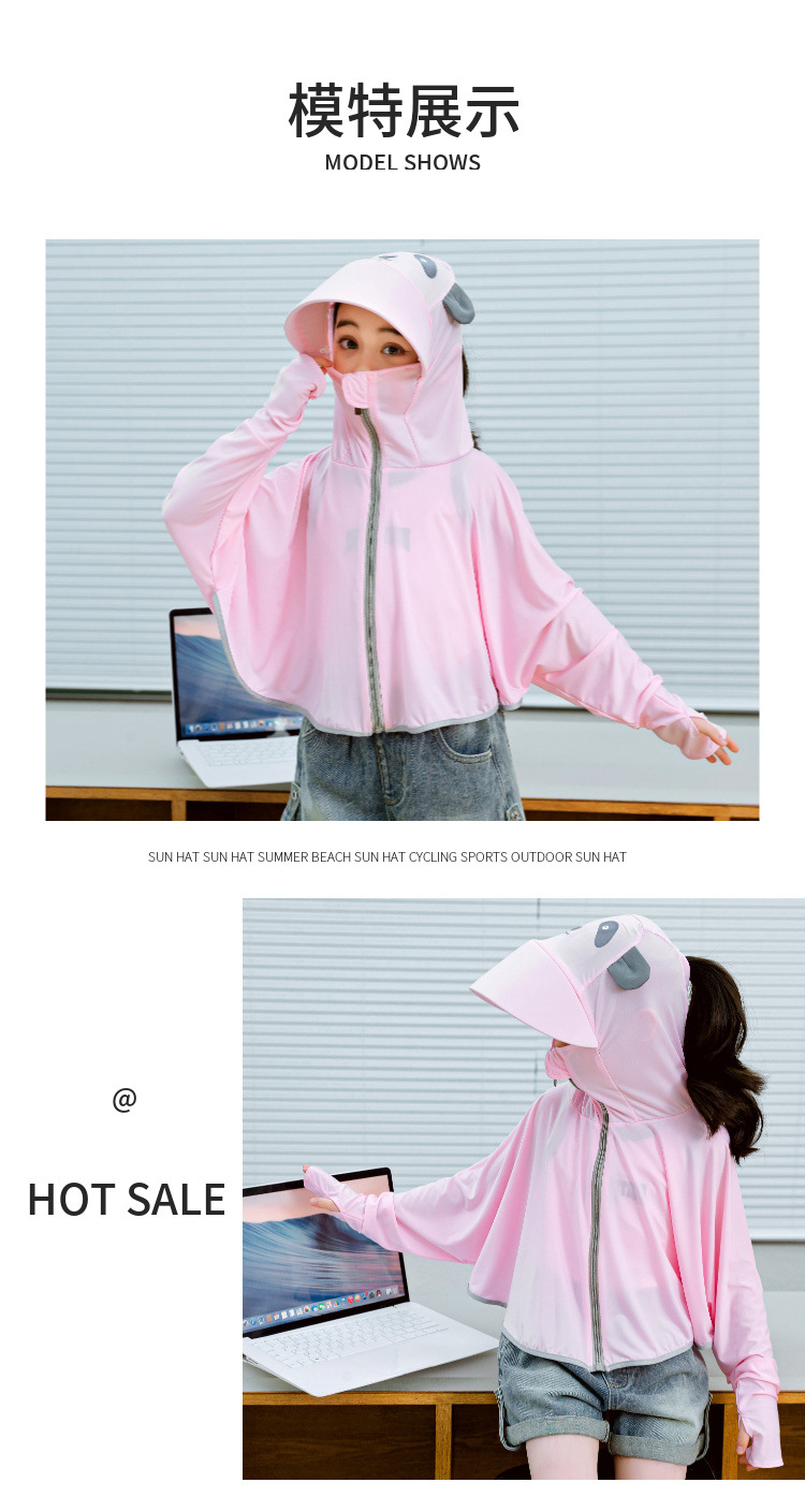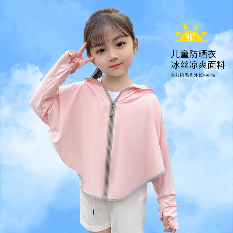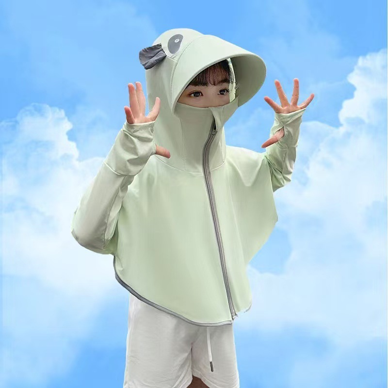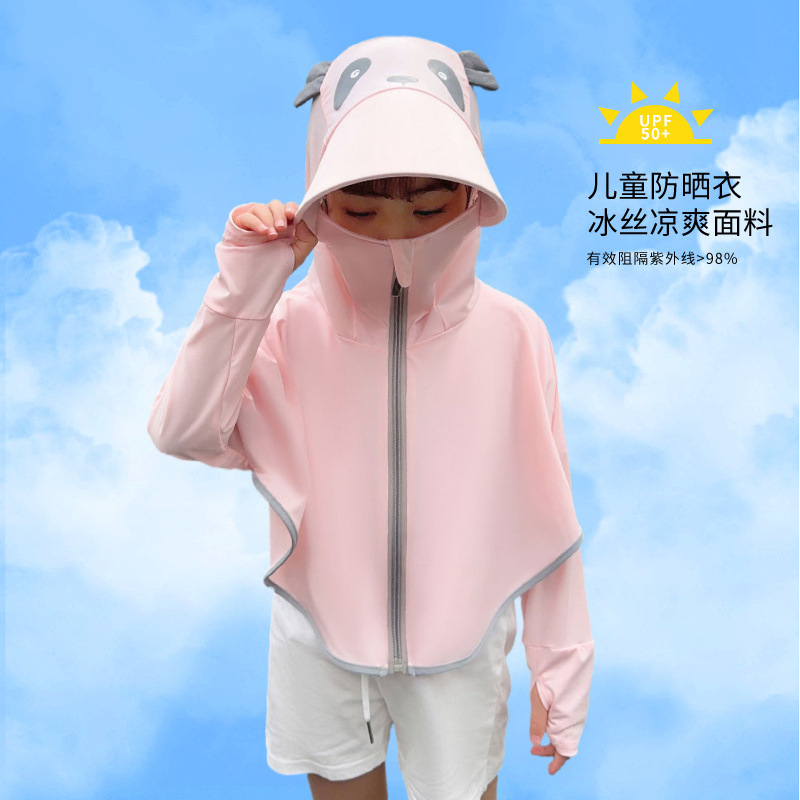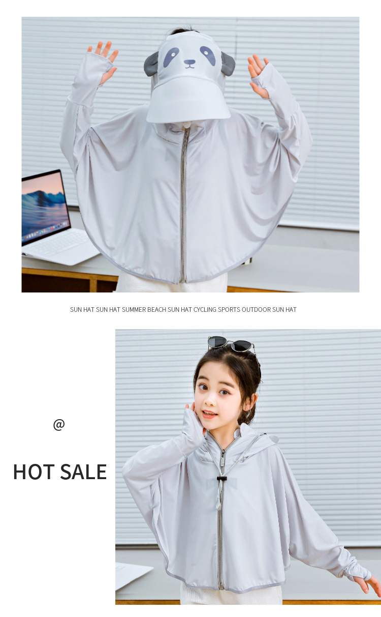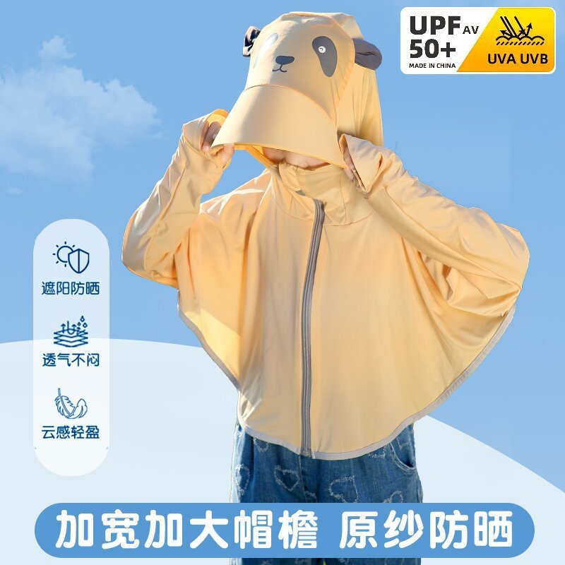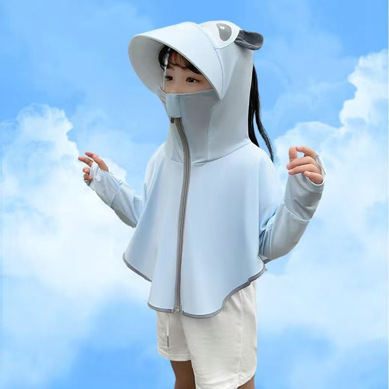 儿童防晒衣夏薄款冰丝凉感透气大帽檐遮阳帽男女童宝宝防晒服沙滩