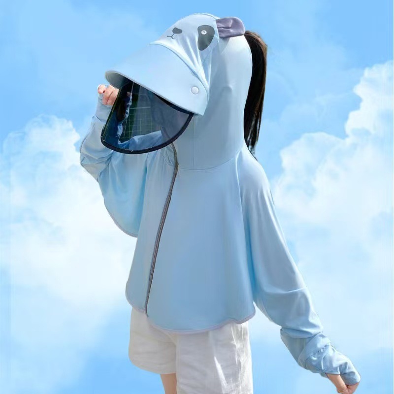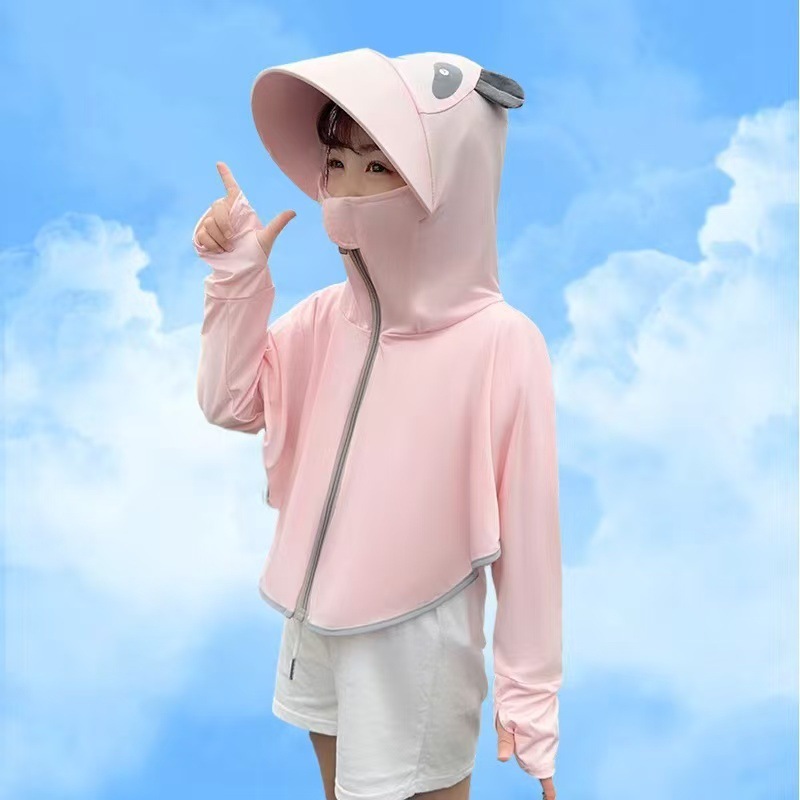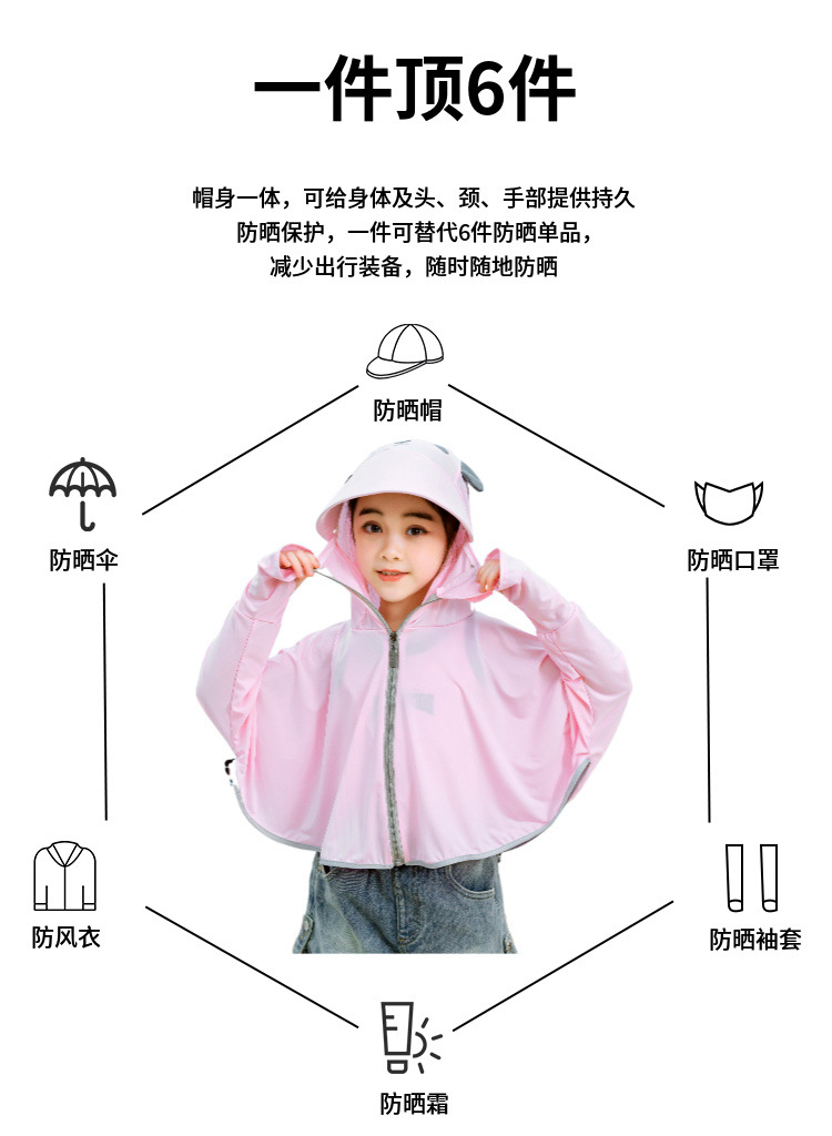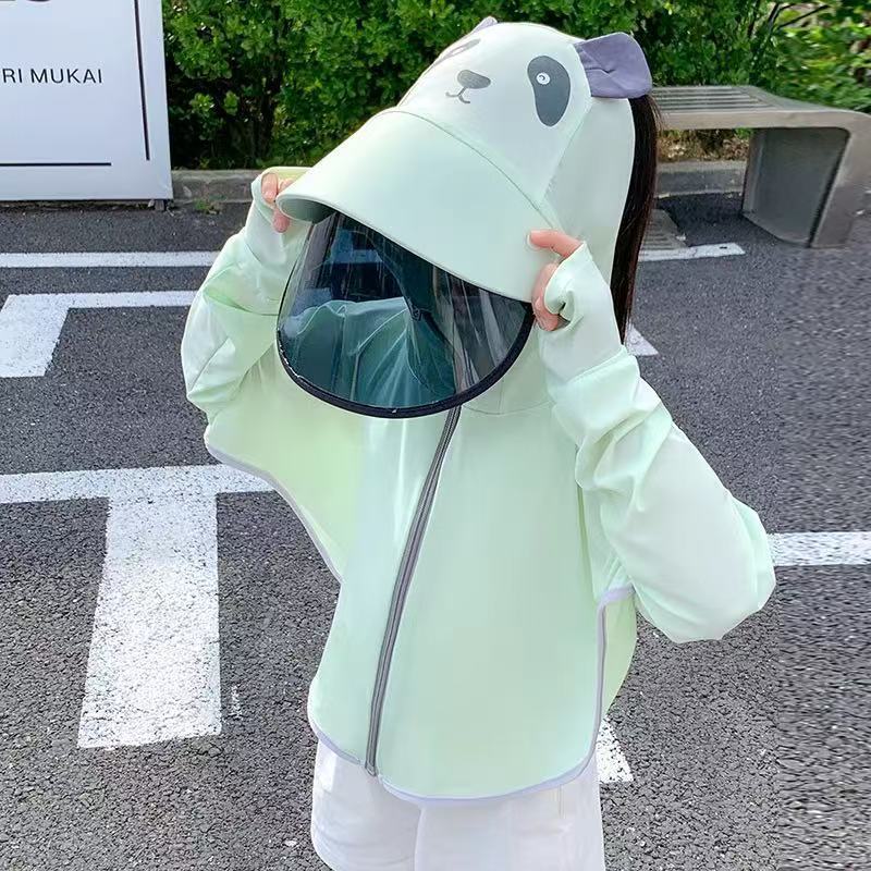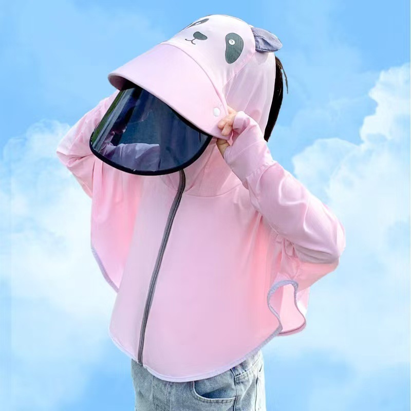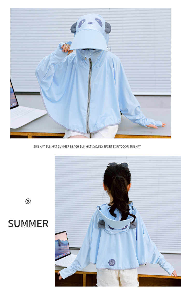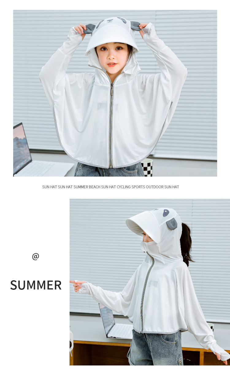 儿童防晒衣夏薄款冰丝凉感透气大帽檐遮阳帽男女童宝宝防晒服沙滩