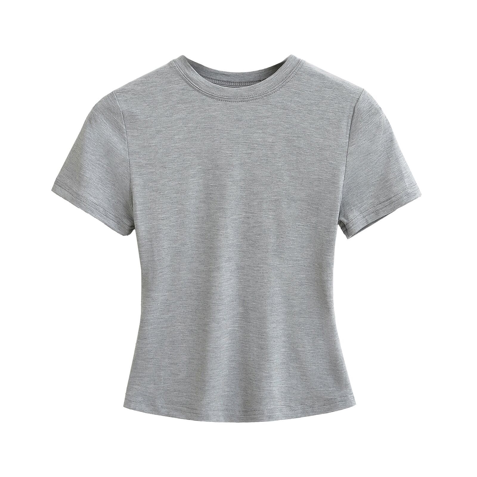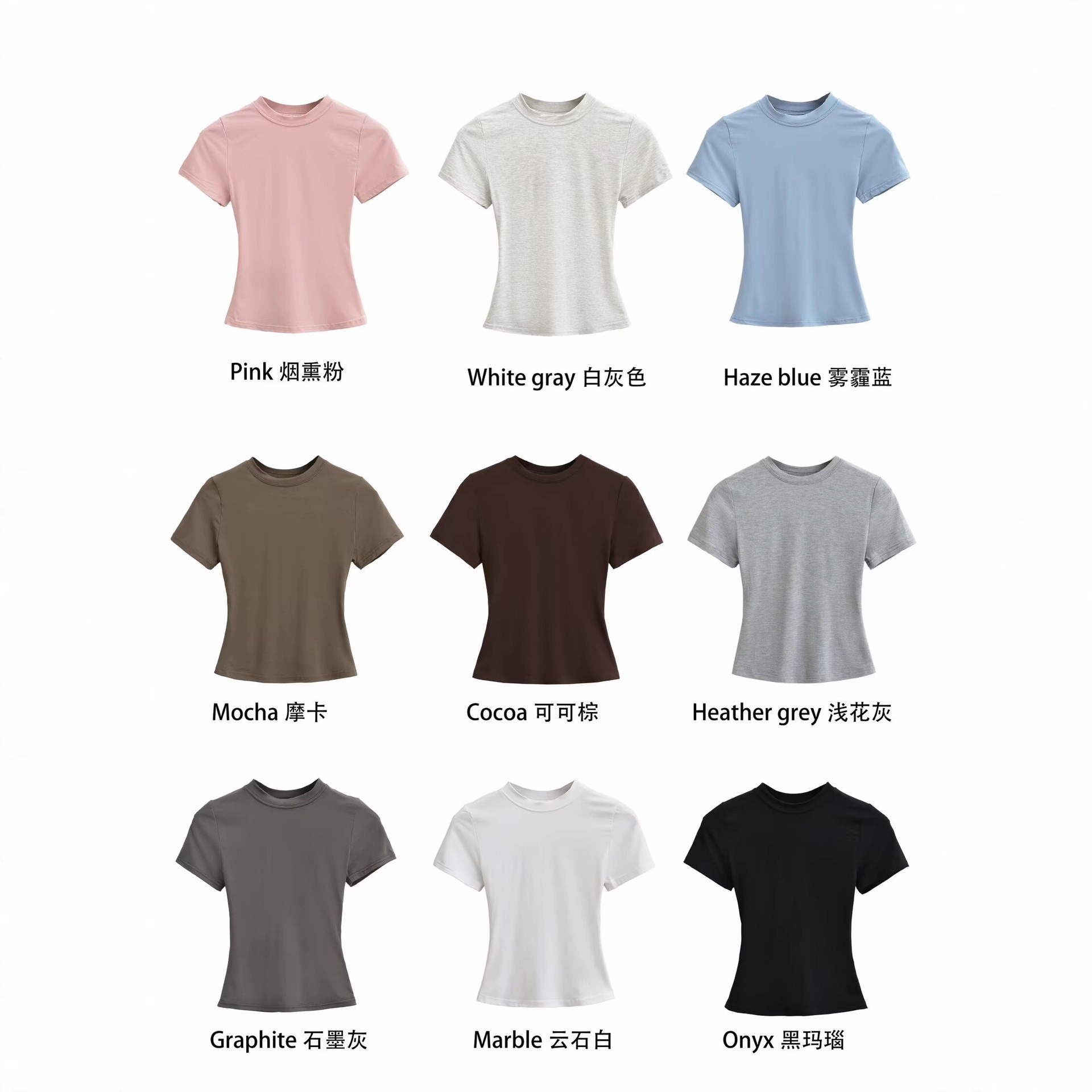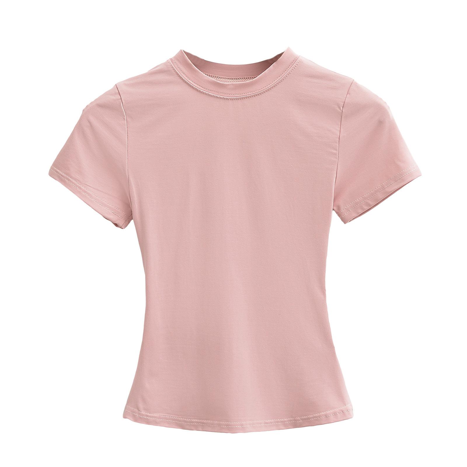 欧美基础款卡戴珊纯色小圆领弹力正肩短袖T恤女夏季薄款收腰上衣