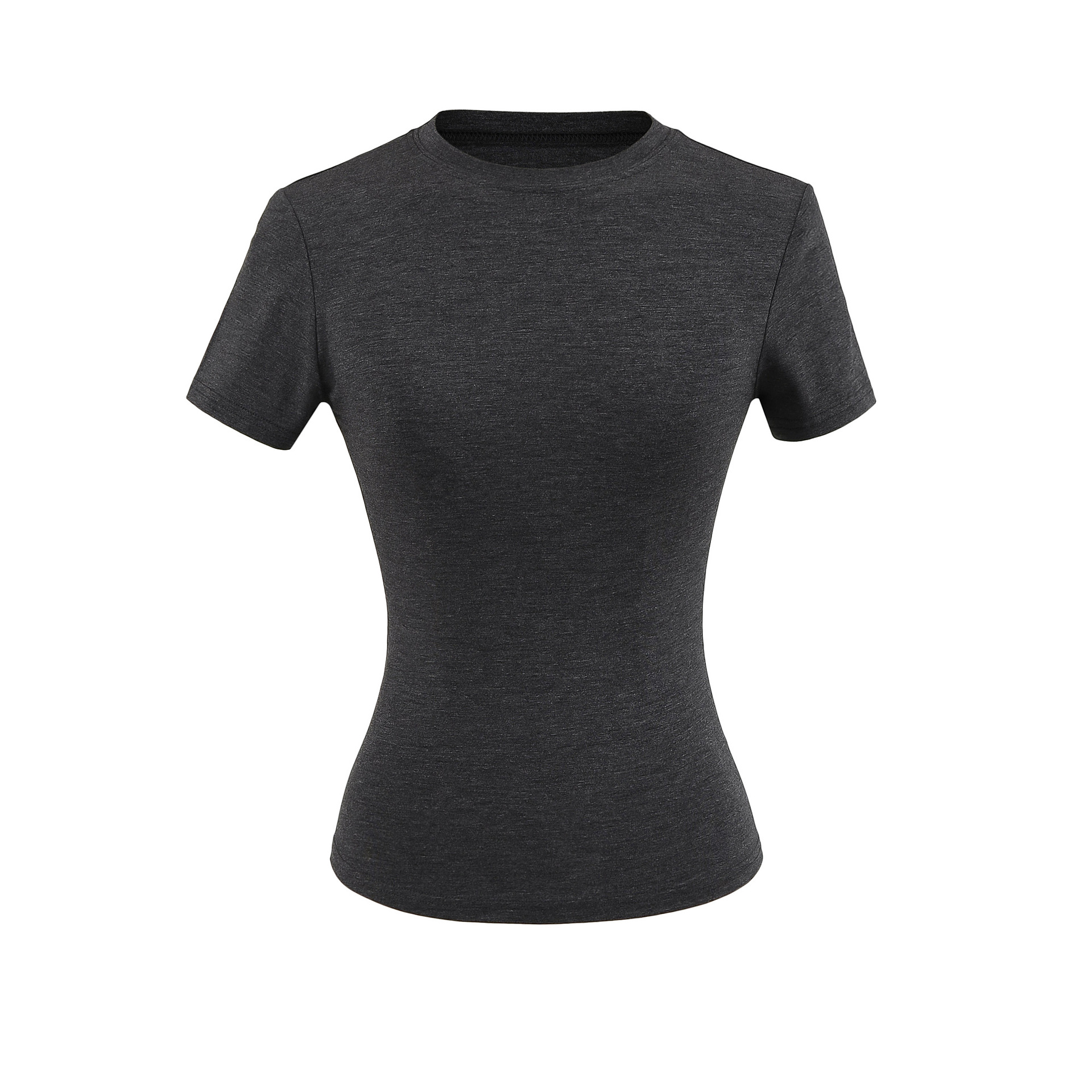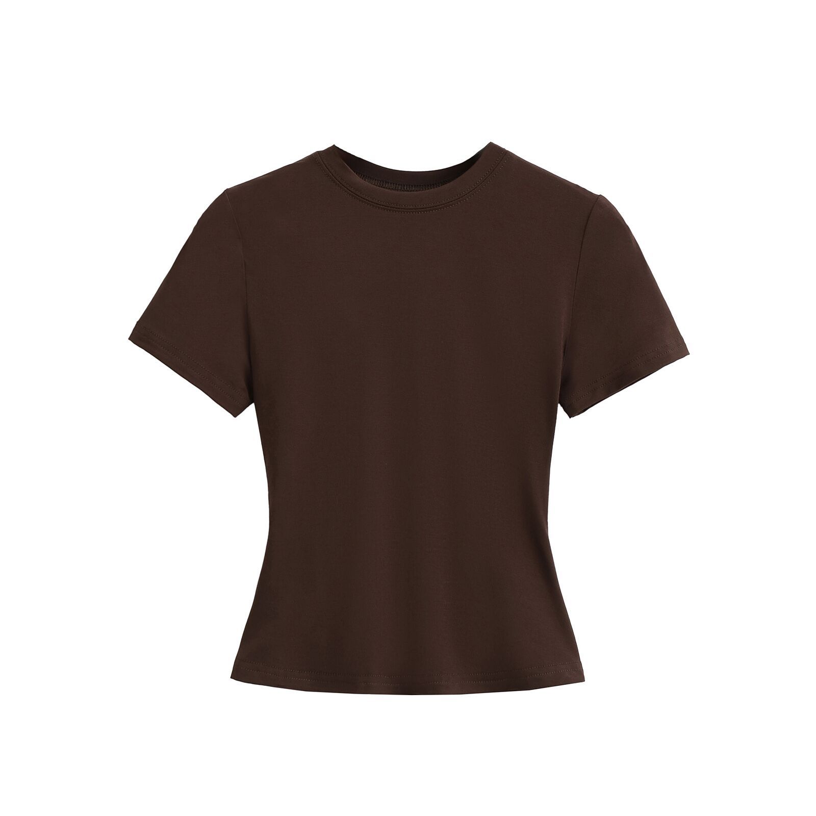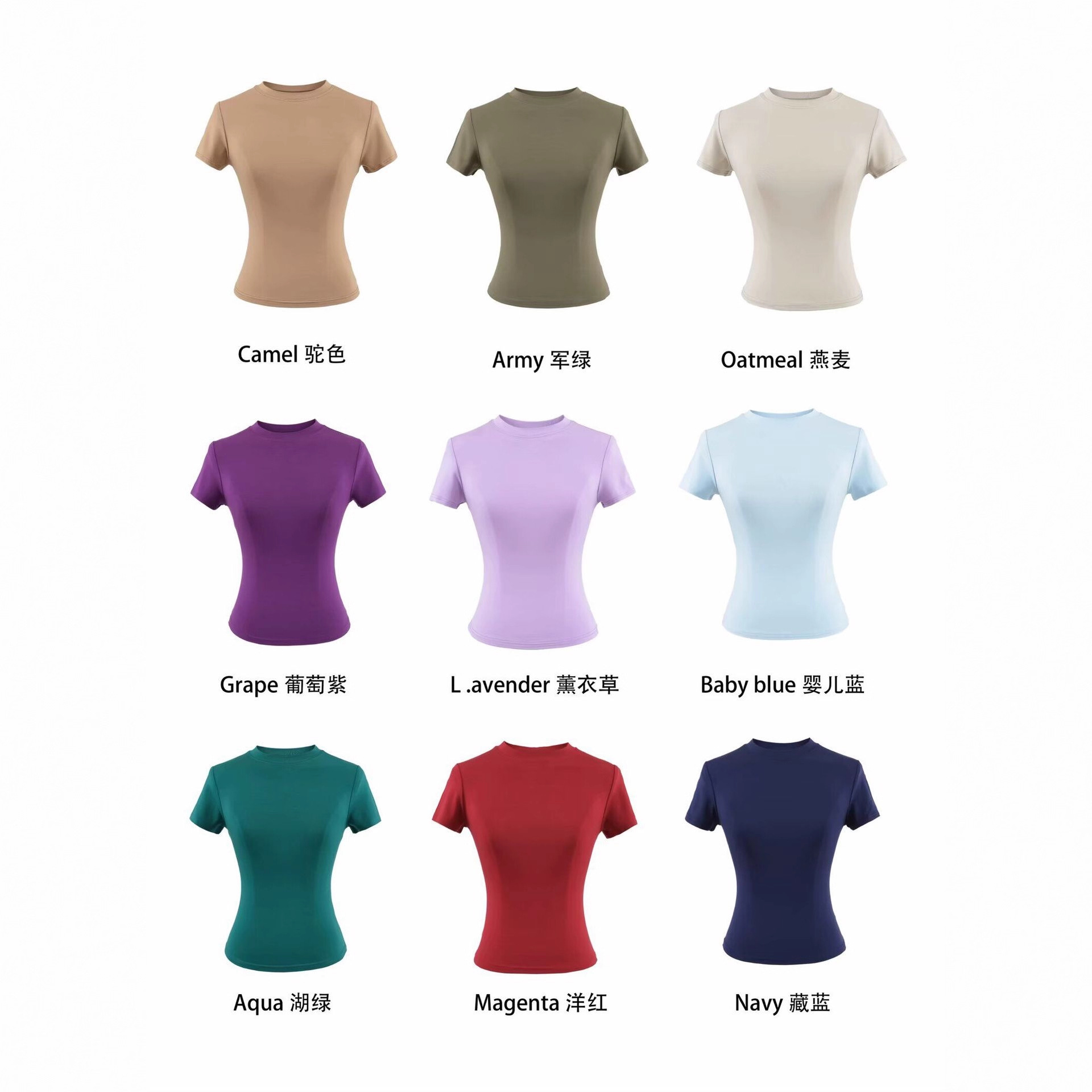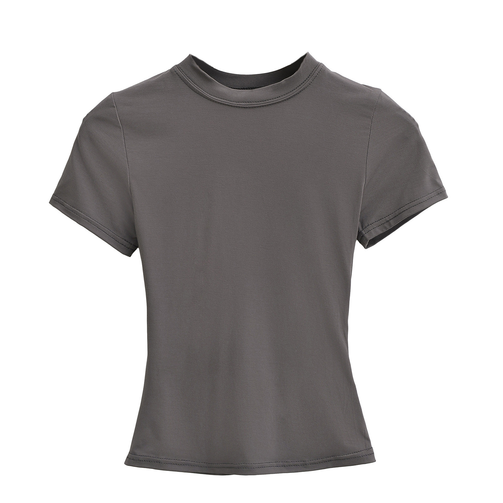 欧美基础款卡戴珊纯色小圆领弹力正肩短袖T恤女夏季薄款收腰上衣