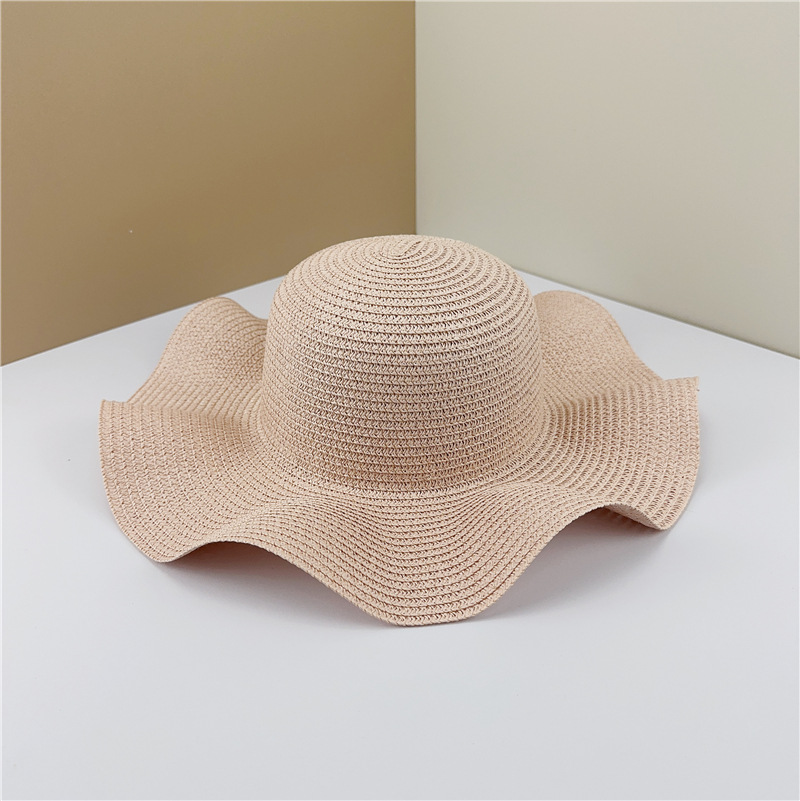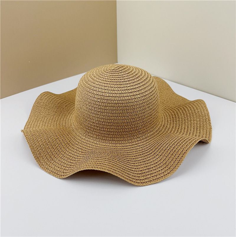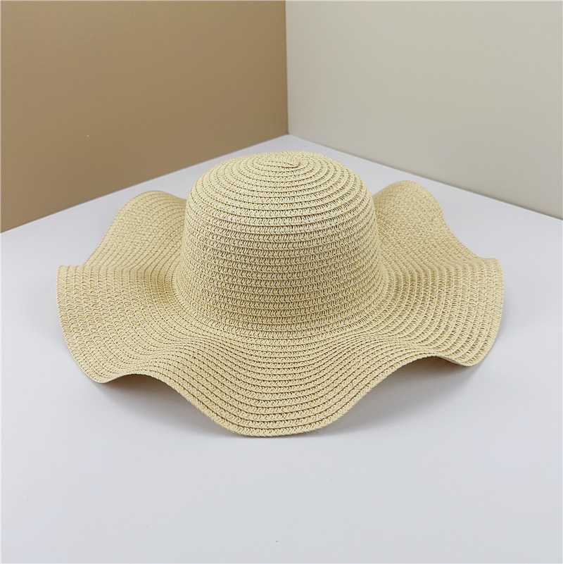 夏季光板波浪边草帽手工DIY遮阳帽沙滩帽可折叠太阳帽子