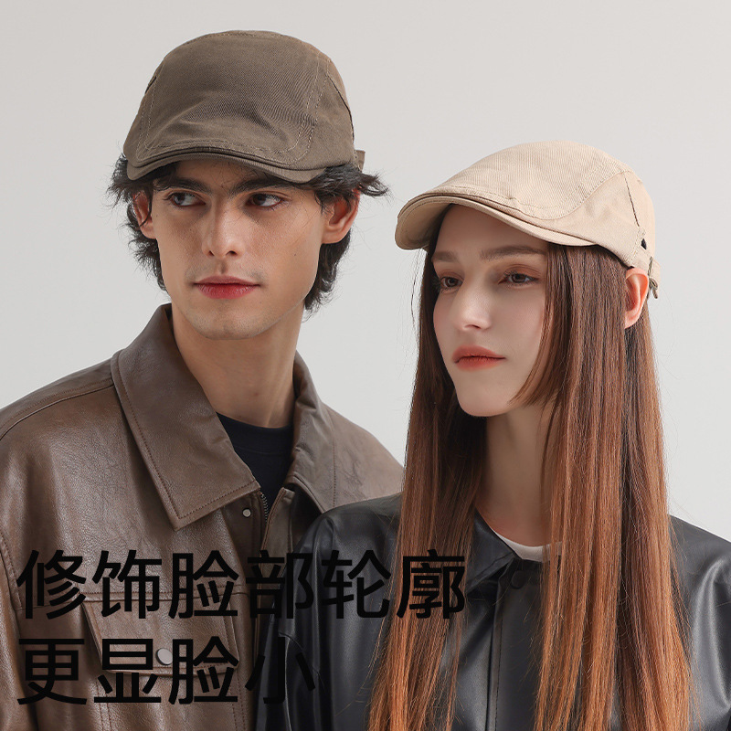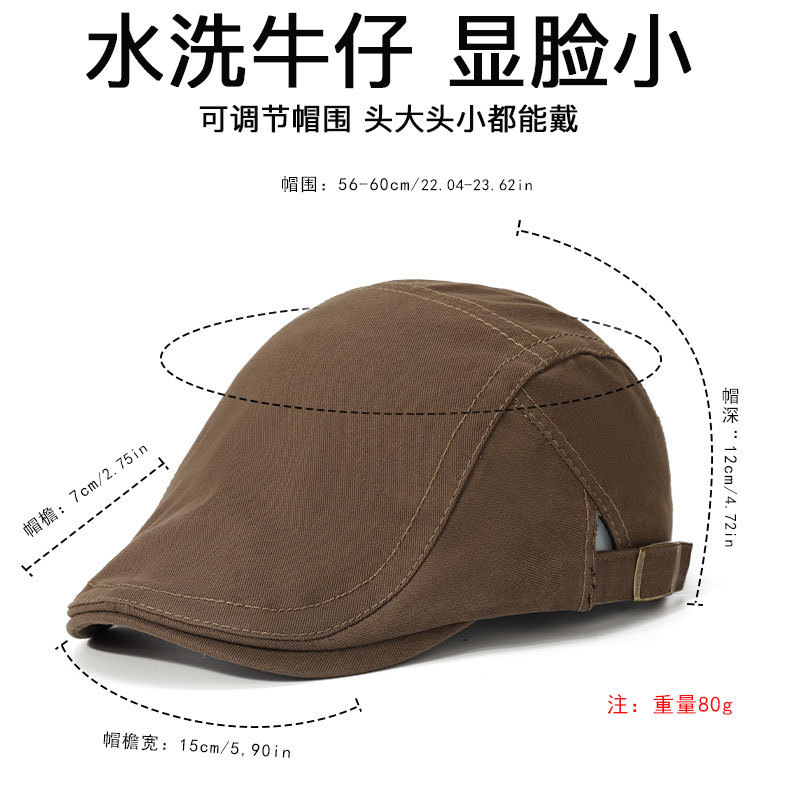 四季前进帽水洗棉光板鸭舌帽复古男女休闲时尚英伦贝雷帽直播跨境