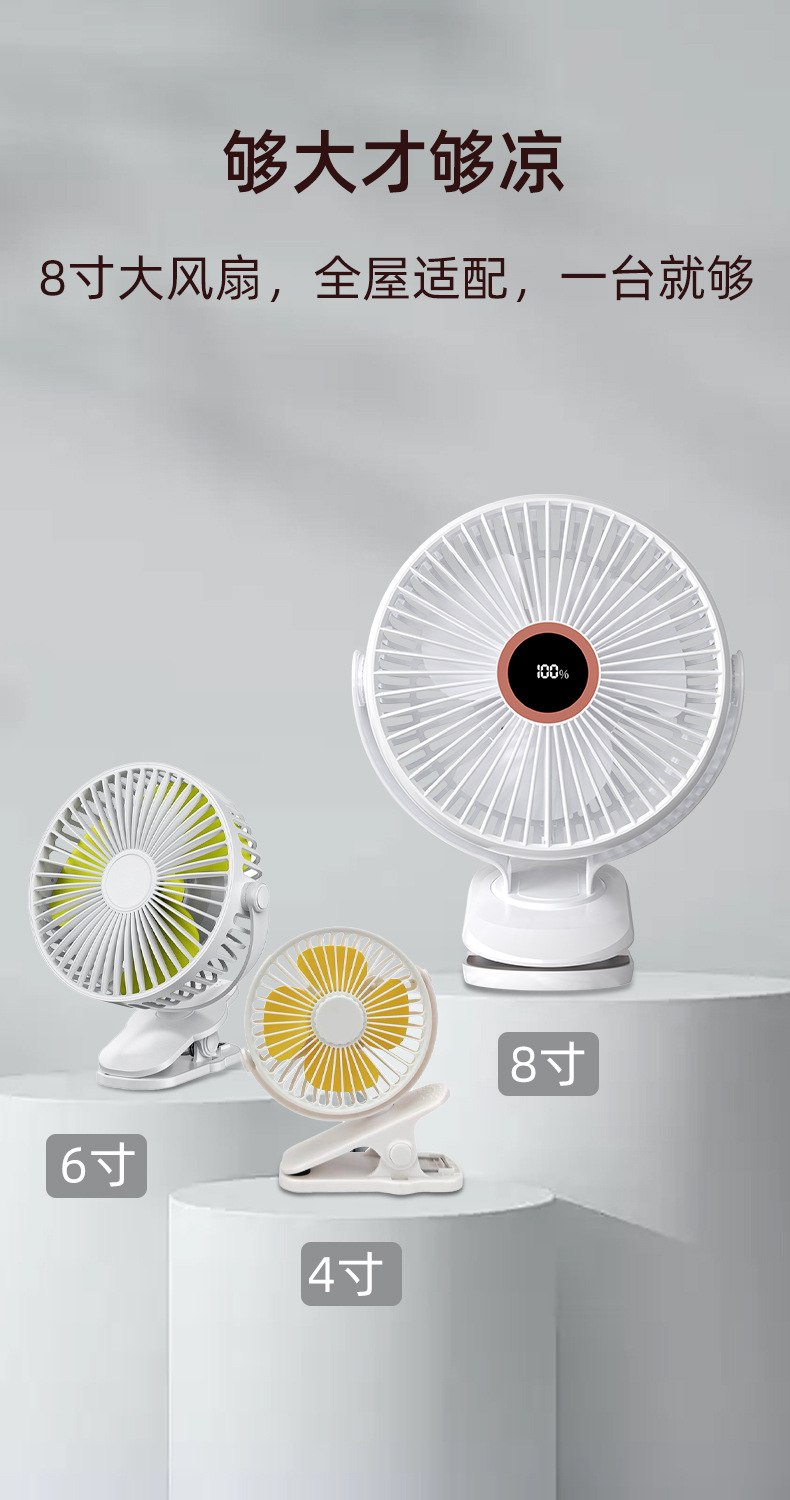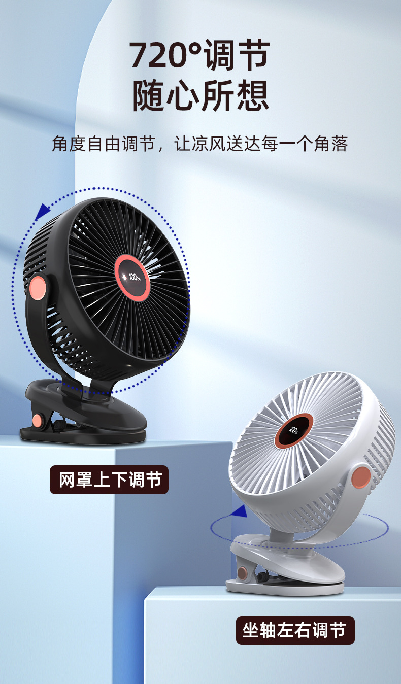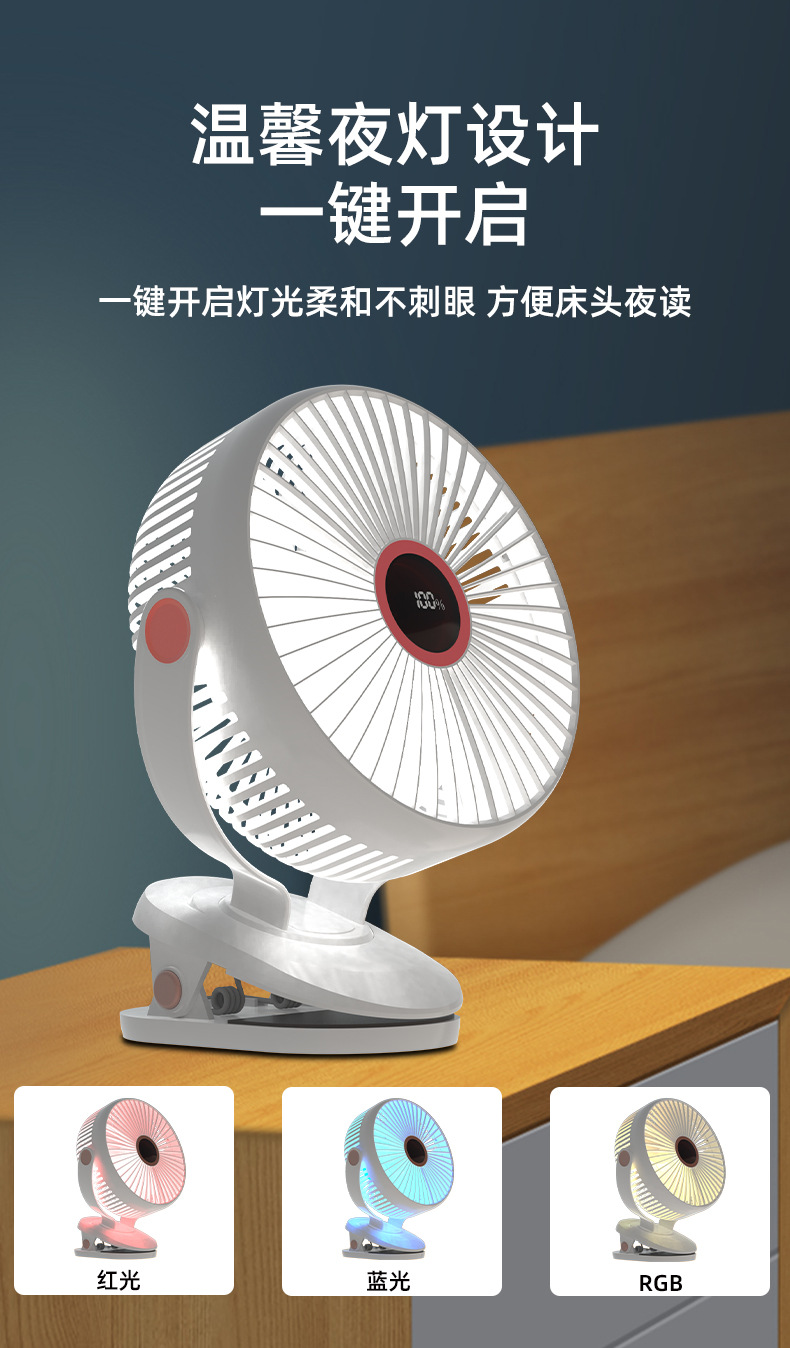 新款8寸氛围灯夹子风扇家用办公室大风力静音跨境usb桌面小电风扇